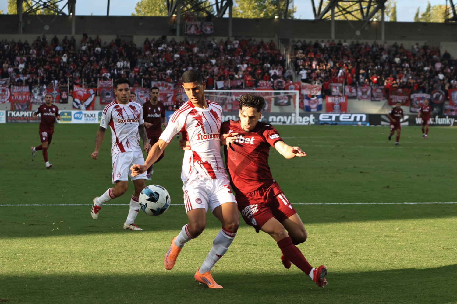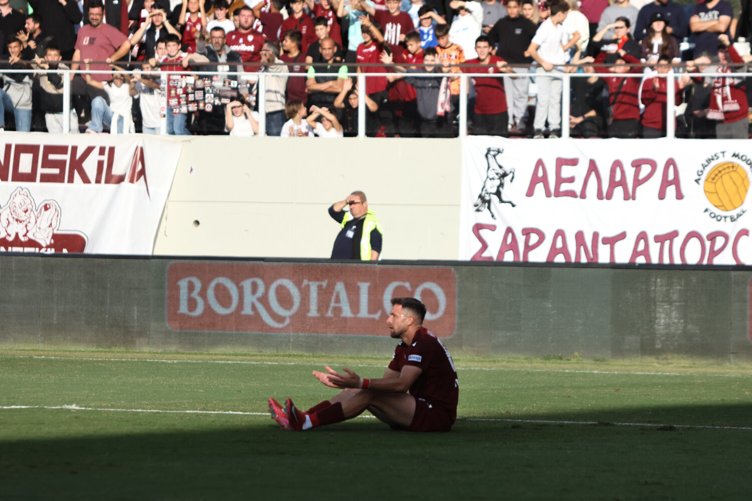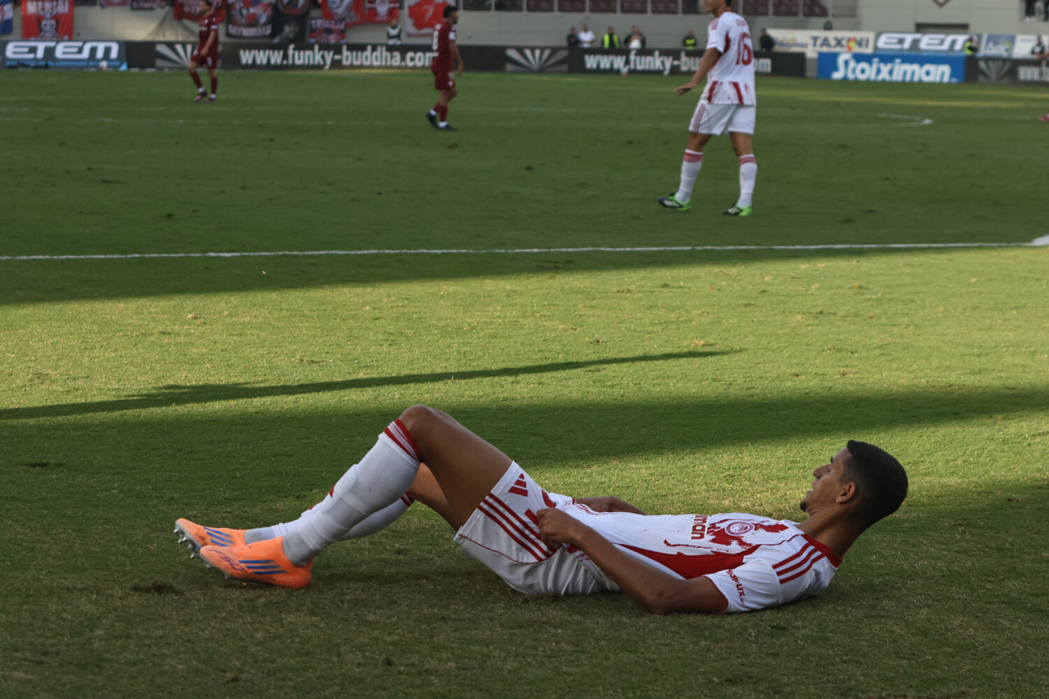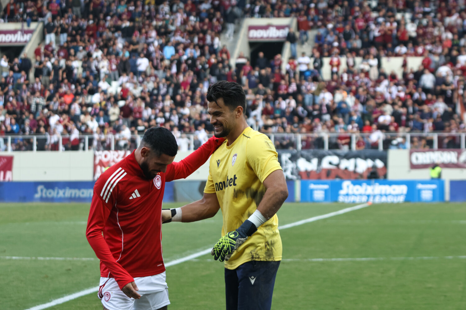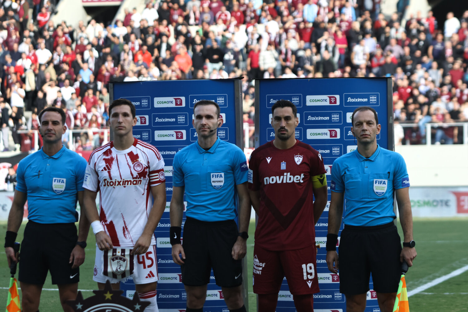 Στο γήπεδο παρόλα αυτά οι φίλαθλοι της ΑΕΛ ενθάρρυνα την ομάδα εδώ στο ένα πέταλο βρίσκονταν και φίλαθλοι του Ολυμπιακού.