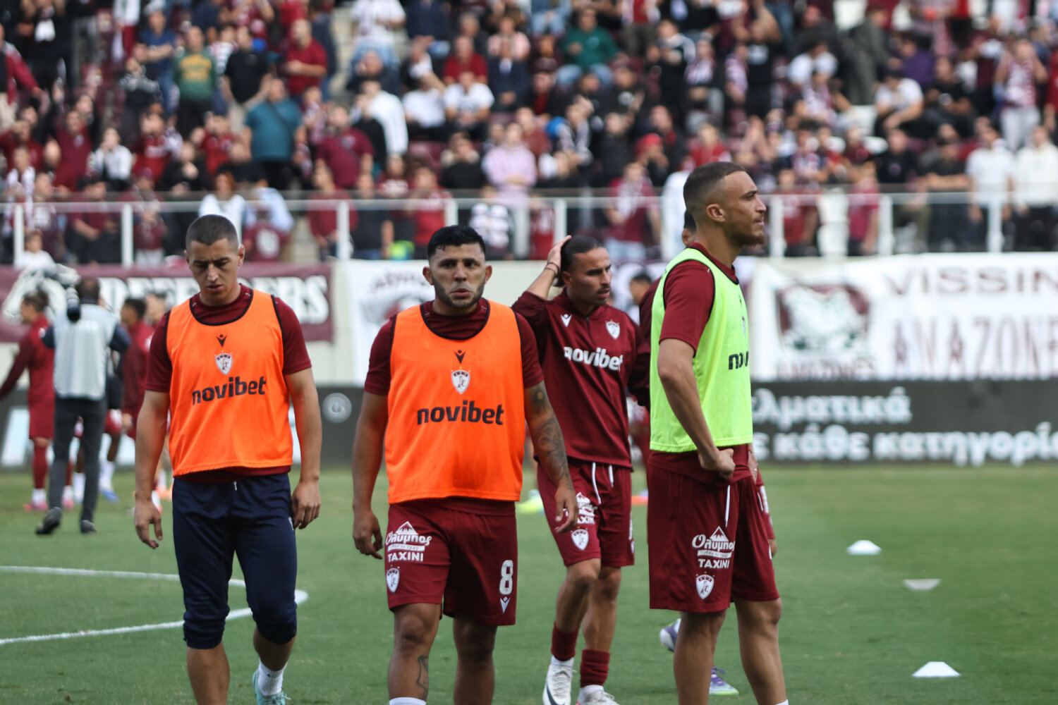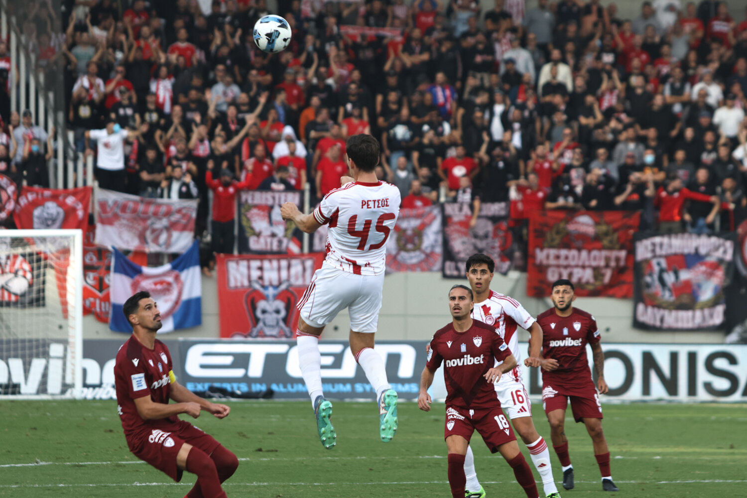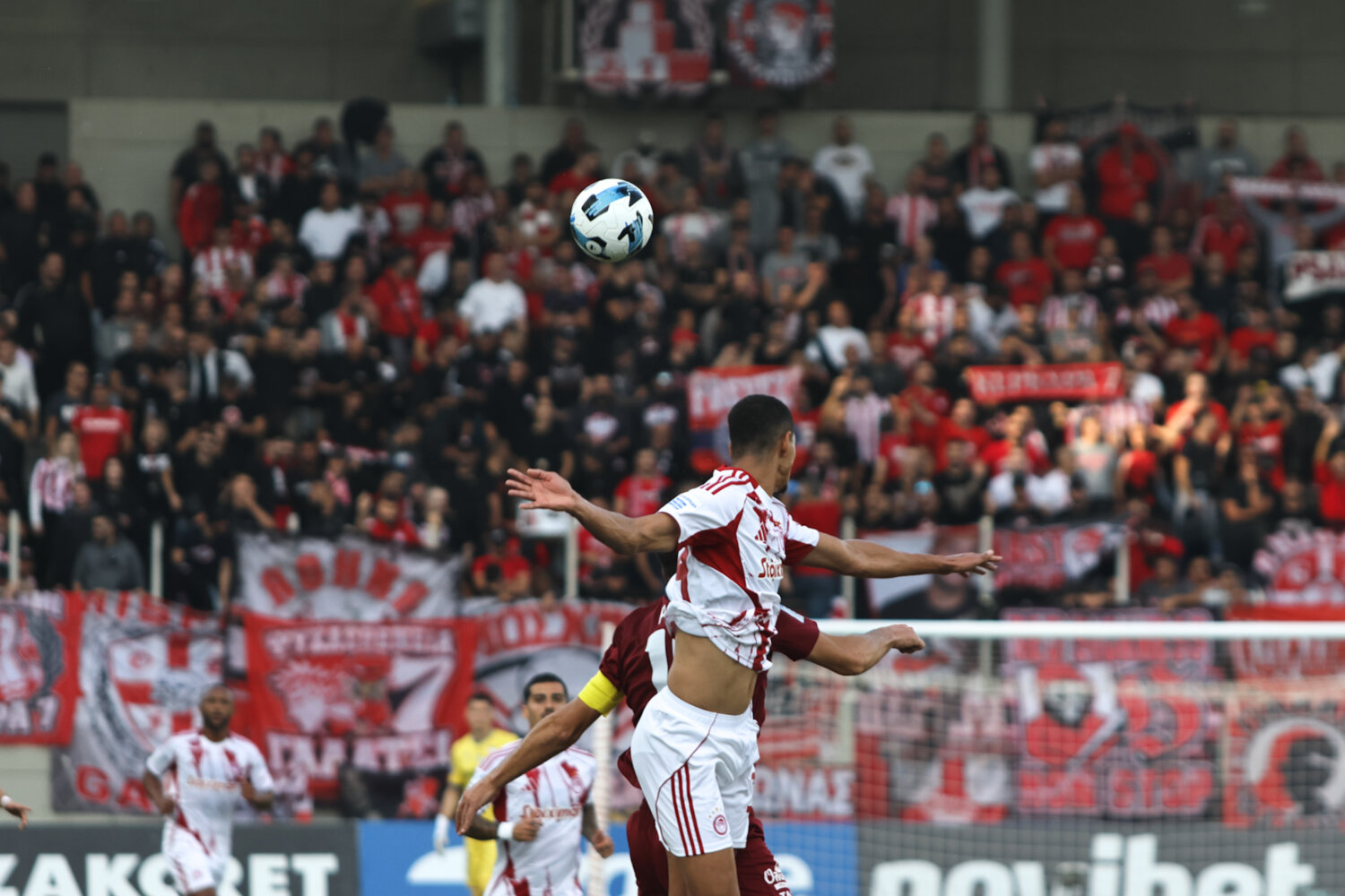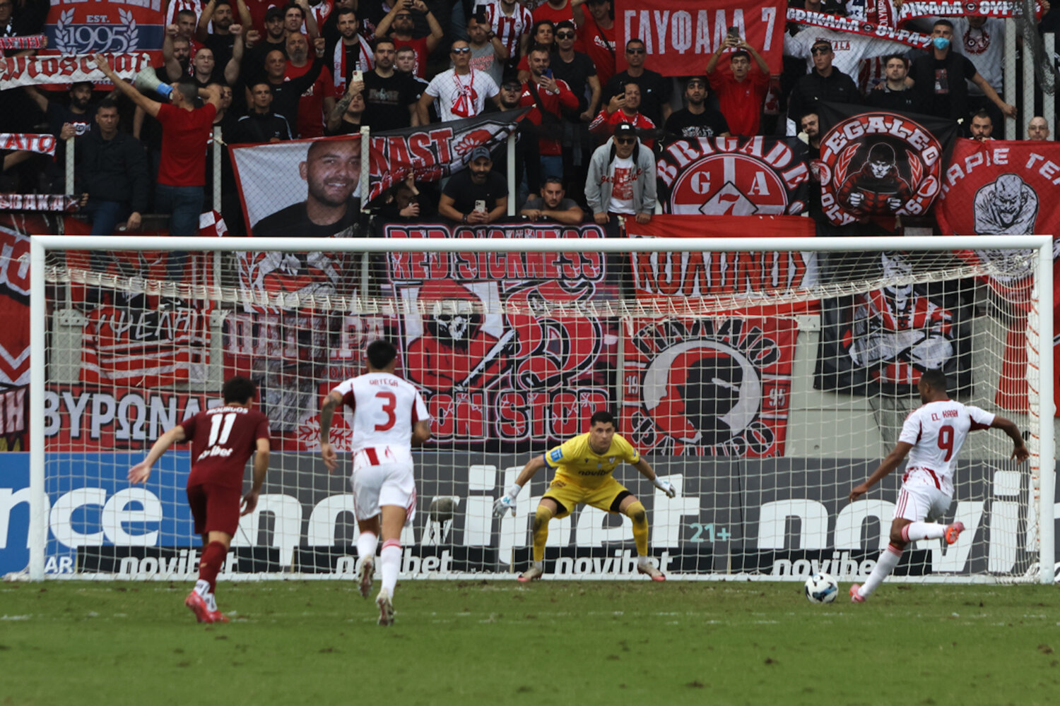 Στο γήπεδο παρόλα αυτά οι φίλαθλοι της ΑΕΛ ενθάρρυνα την ομάδα εδώ στο ένα πέταλο βρίσκονταν και φίλαθλοι του Ολυμπιακού.