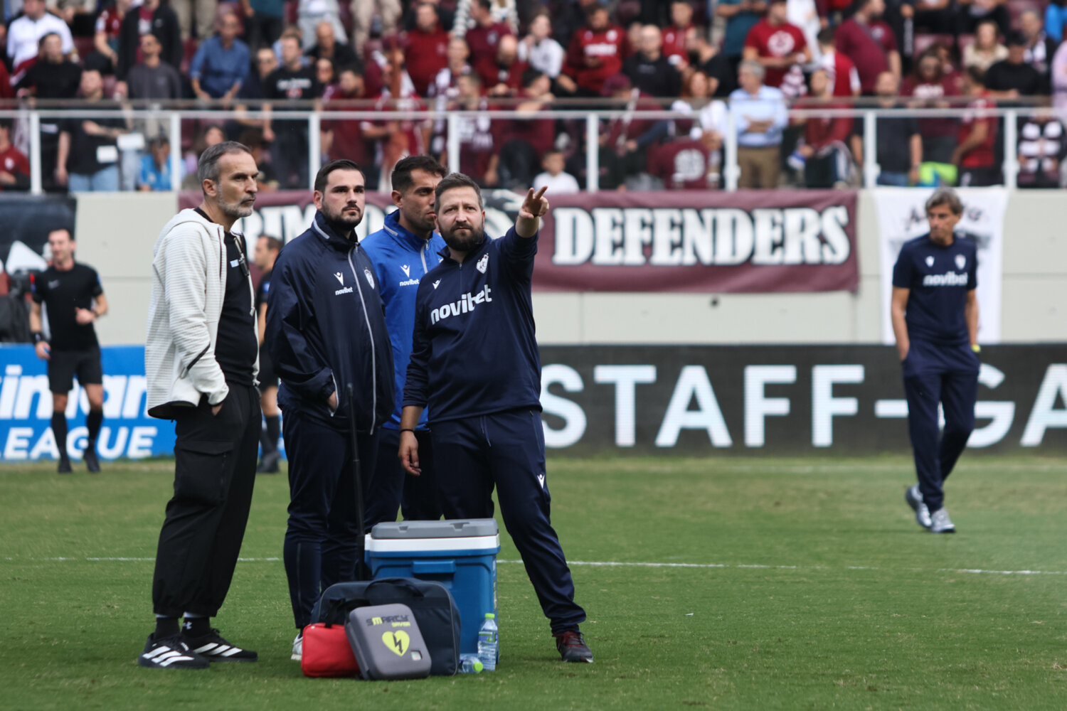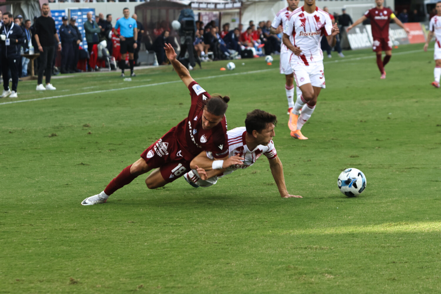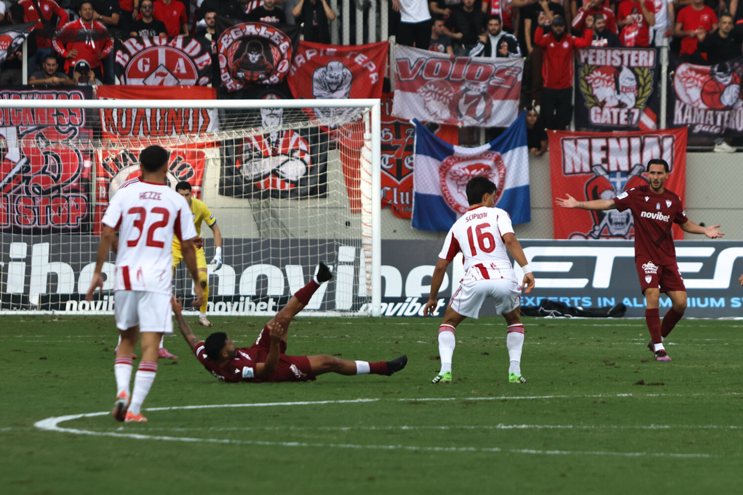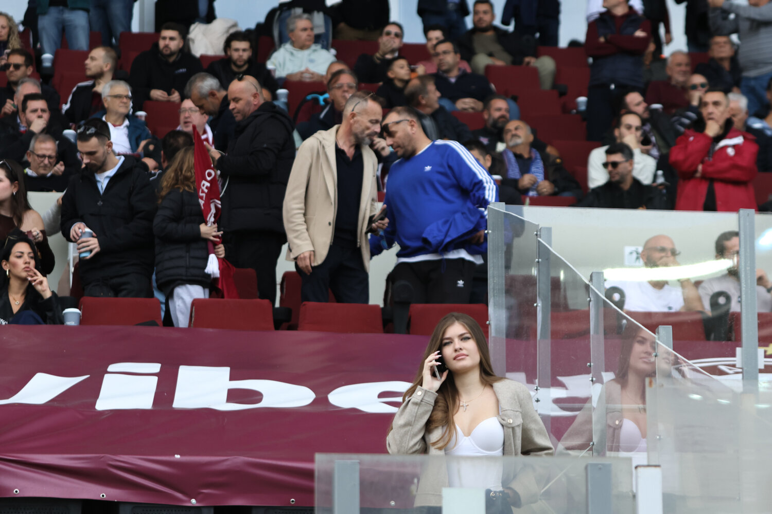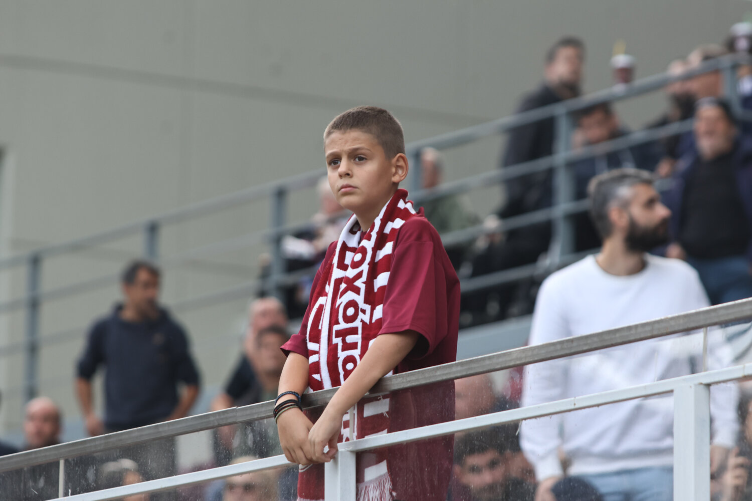 Στο γήπεδο παρόλα αυτά οι φίλαθλοι της ΑΕΛ ενθάρρυνα την ομάδα εδώ στο ένα πέταλο βρίσκονταν και φίλαθλοι του Ολυμπιακού.