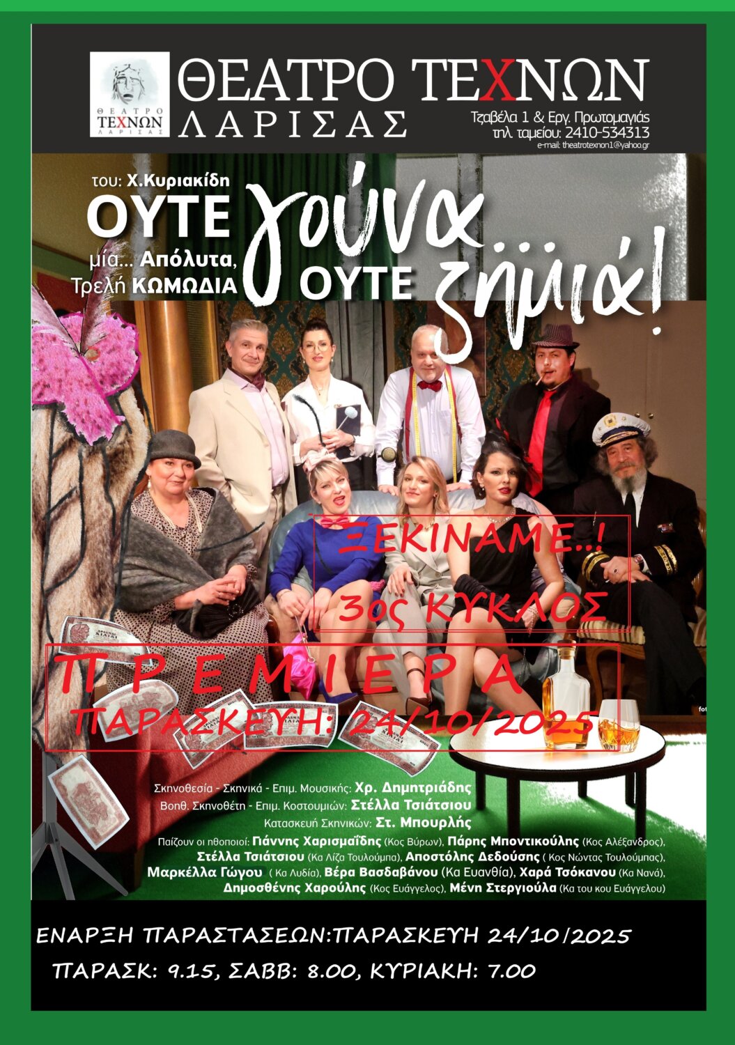 Η «Μεγάλη» αυτή ΚΩΜΩΔΙΑ, των συνεχών περσινών «Sold out» που σημείωσε την Άνοιξη, στη σκηνή του «Θεάτρου Τεχνών», περιμένουν να παρακολουθήσουν πολλοί Λαρισαίοι που δεν είχαν την ευκαιρία και είχαν ακούσει τις καλύτερες Κριτικές και σχόλια όλων όσων την είχαν δει.
