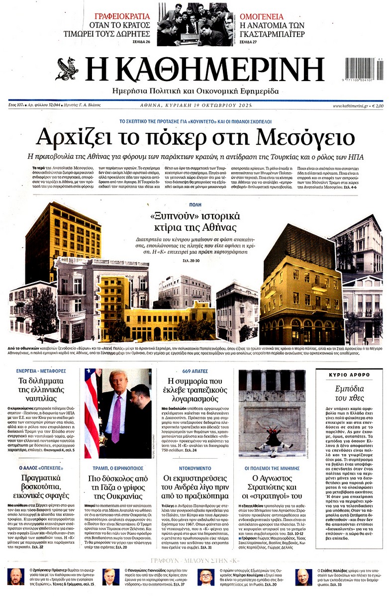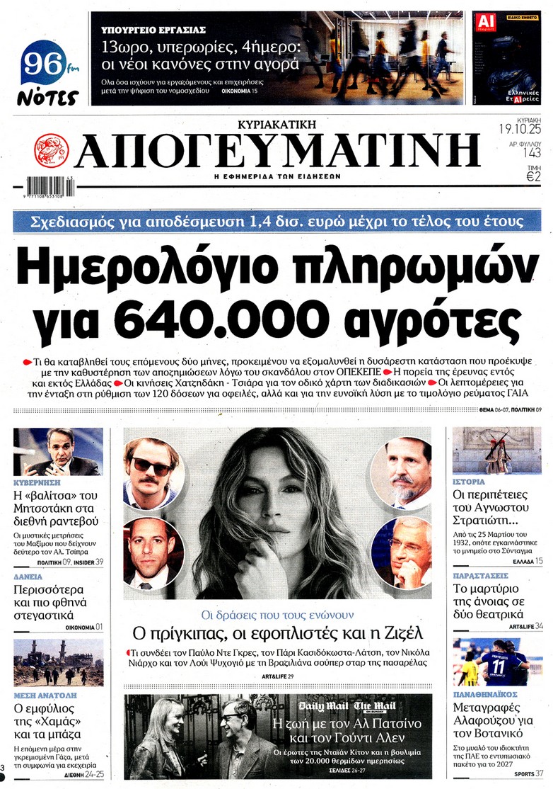 Διαβάστε τα πρωτοσέλιδα του κυριακάτικου Τύπου: