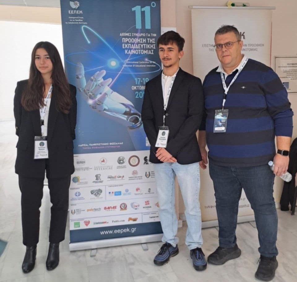 Οι μαθητές του Προτύπου ΓΕΛ Κουτσογιάννης Ευάγγελος, Αναστασία Μούστου, Αστέριος Γκανάς και Γρηγόριος Κολιός, υπό την καθοδήγηση της εκπαιδευτικού κλ. ΠΕ80 Οικονομίας Ουρανίας Βαϊρακτάρη, παρουσίασαν στο συνέδριο την εικονική επιχείρηση που δημιούργησαν, καθώς και το προϊόν που ανέπτυξαν στο πλαίσιο αυτής. Συγκεκριμένα παρουσίασαν την εργασία με τίτλο: «Η Μάθηση μέσω της Πράξης, ως Εκπαιδευτική Καινοτομία: Εμπειρίες από την Υλοποίηση του Προγράμματος “Εικονική Επιχείρηση” στη Δευτεροβάθμια Εκπαίδευση», κερδίζοντας τις εντυπώσεις των παρισταμένων συνέδρων.