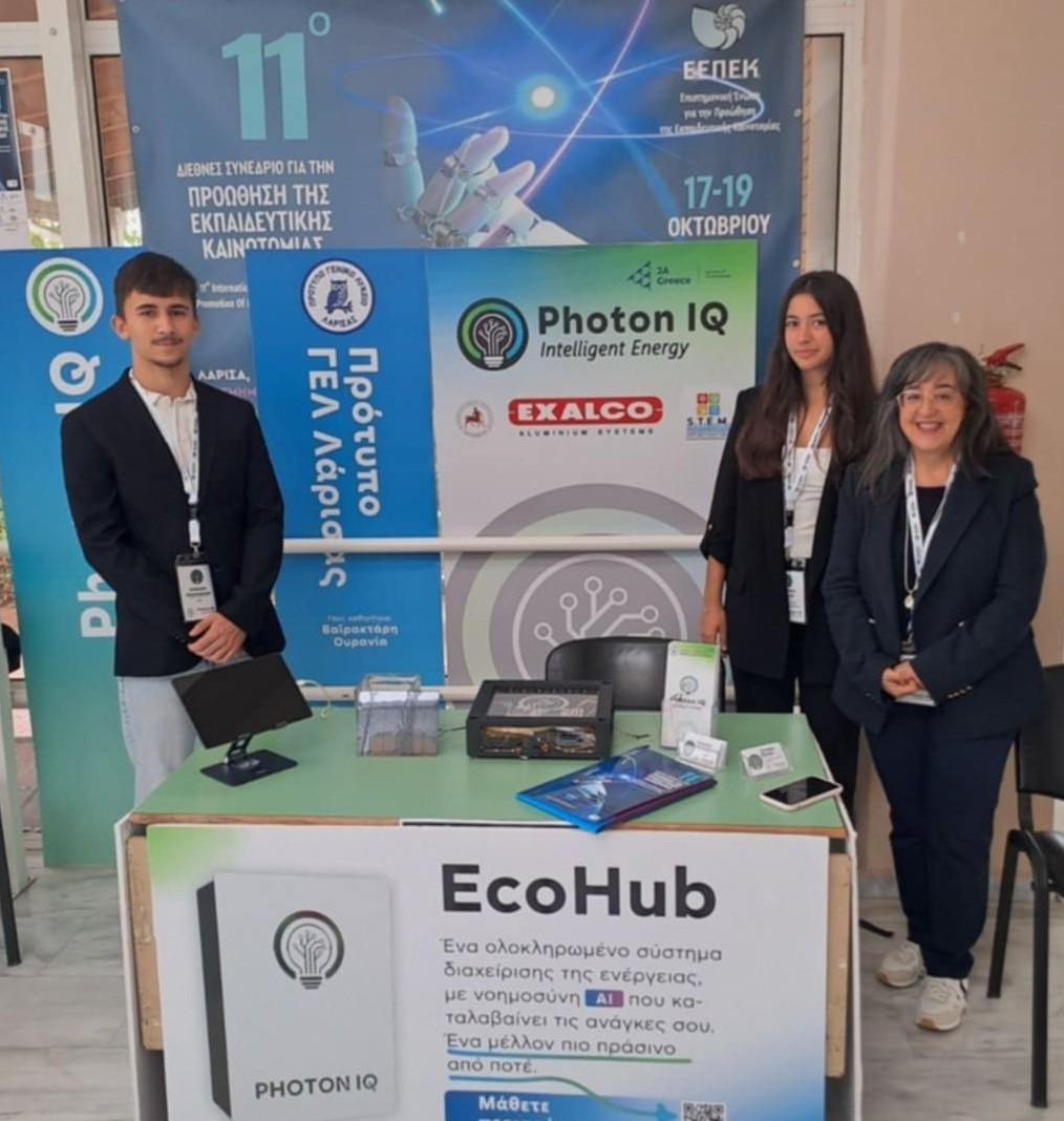 Το εξαιρετικής ποιότητας προϊόν που δημιούργησαν ως μέλη της νεοφυούς – «Start Up» – επιχείρησης διαχείρισης ενέργειας με την επωνυμία «Photon IQ» παρουσίασαν οι μαθητές του Προτύπου Γενικού Λυκείου Λάρισας, στο πλαίσιο της συμμετοχής τους στις εργασίες του 11ου Διεθνούς Συνεδρίου της Επιστημονικής Ένωσης για την Προώθηση της Εκπαιδευτικής Καινοτομίας (ΕΕΠΕΚ) που πραγματοποιήθηκε στη Λάρισα – στις εγκαταστάσεις του Παν/μίου Θεσσαλίας – από 17 έως 19 Οκτωβρίου.