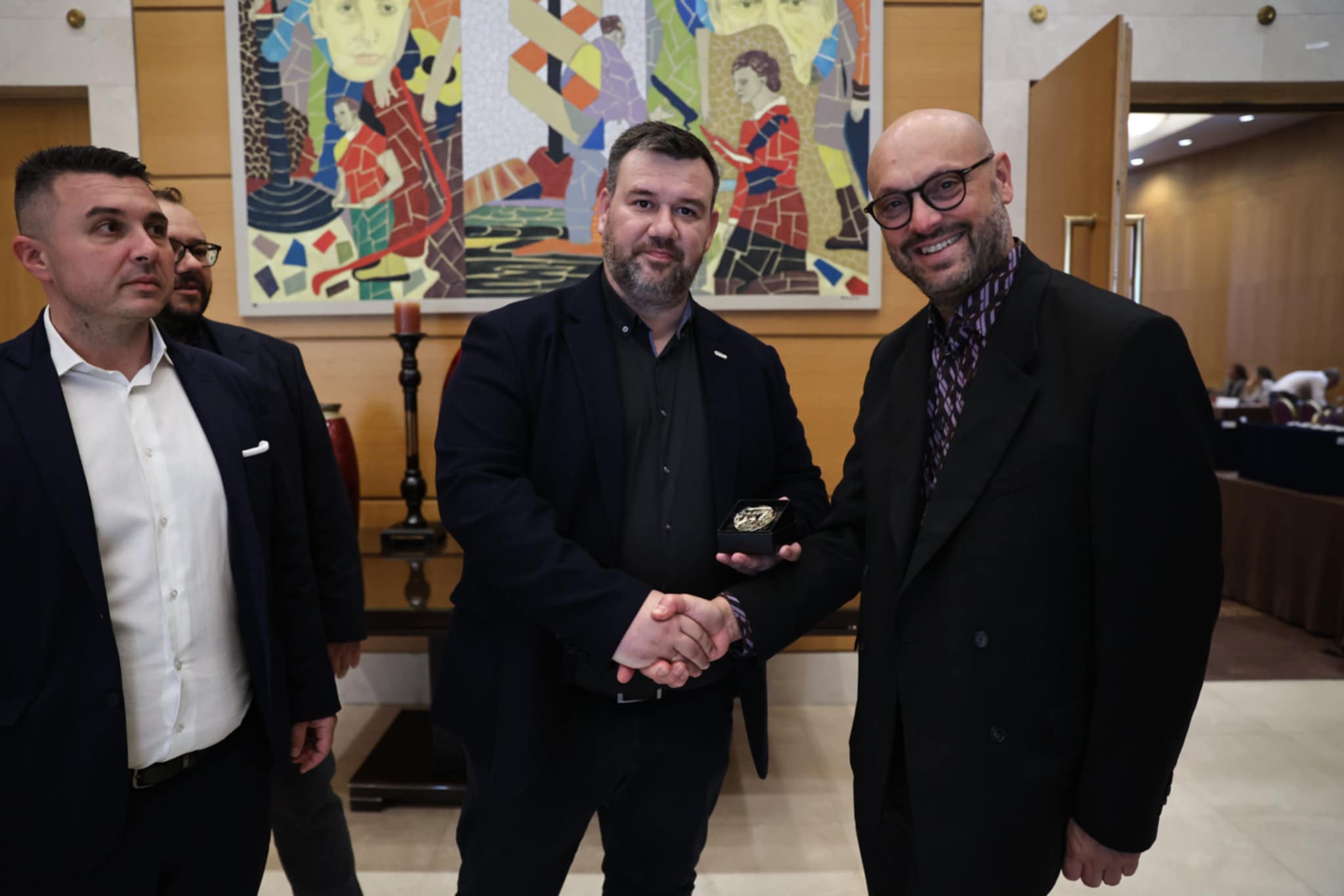 Από την πλευρά του ο πρόεδρος του Συλλόγου Αργυροχρυσοχόων της γειτονική χώρας, Μάουρο Μπενβενούτο, ευχαρίστησε το Επιμελητήριο Λάρισας και την πόλη για την υποδοχή που επιφύλαξαν στην αποστολή. «Είμαστε πολύ χαρούμενοι που βρισκόμαστε εδώ μαζί σας σήμερα», ανέφερε μεταξύ άλλων.