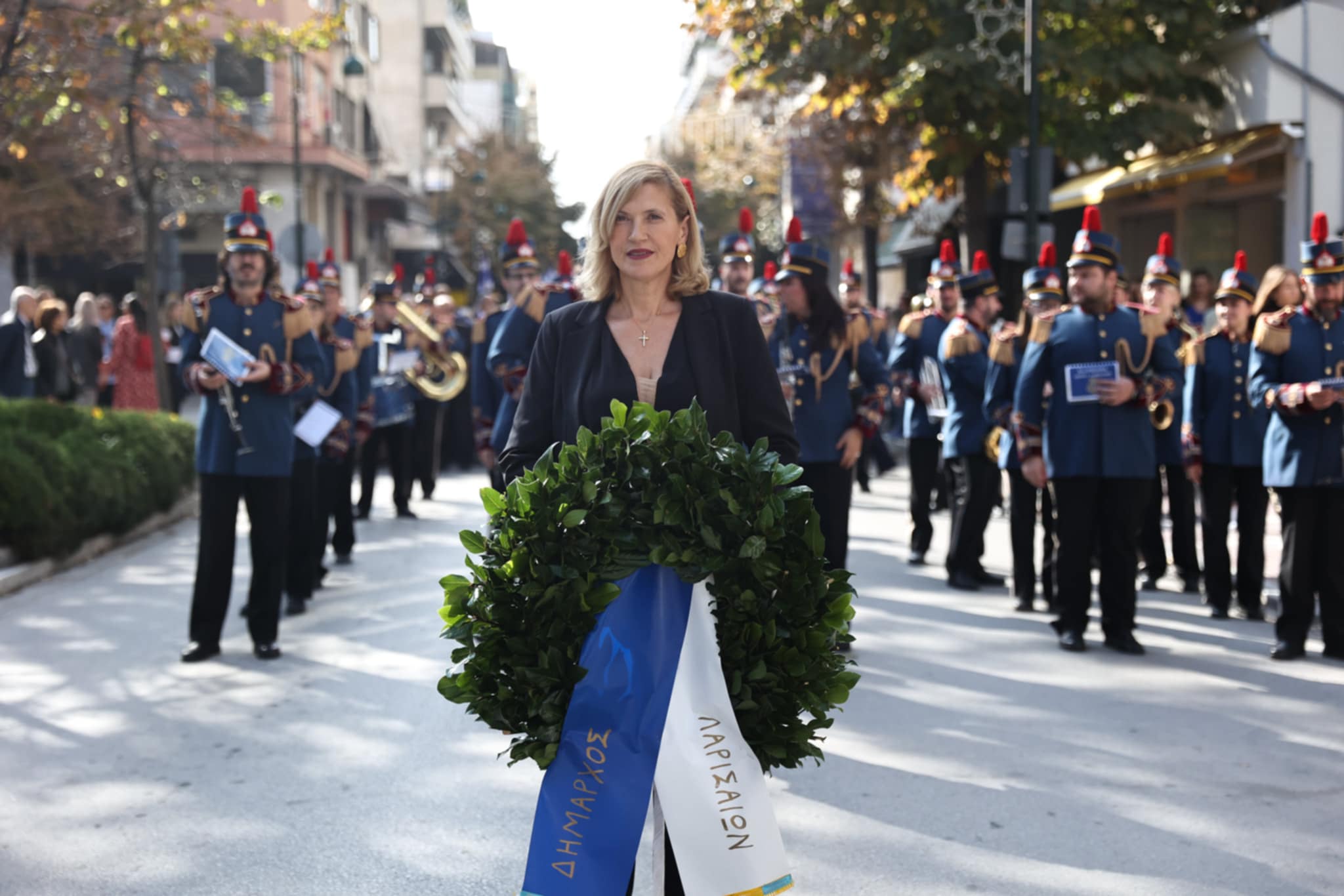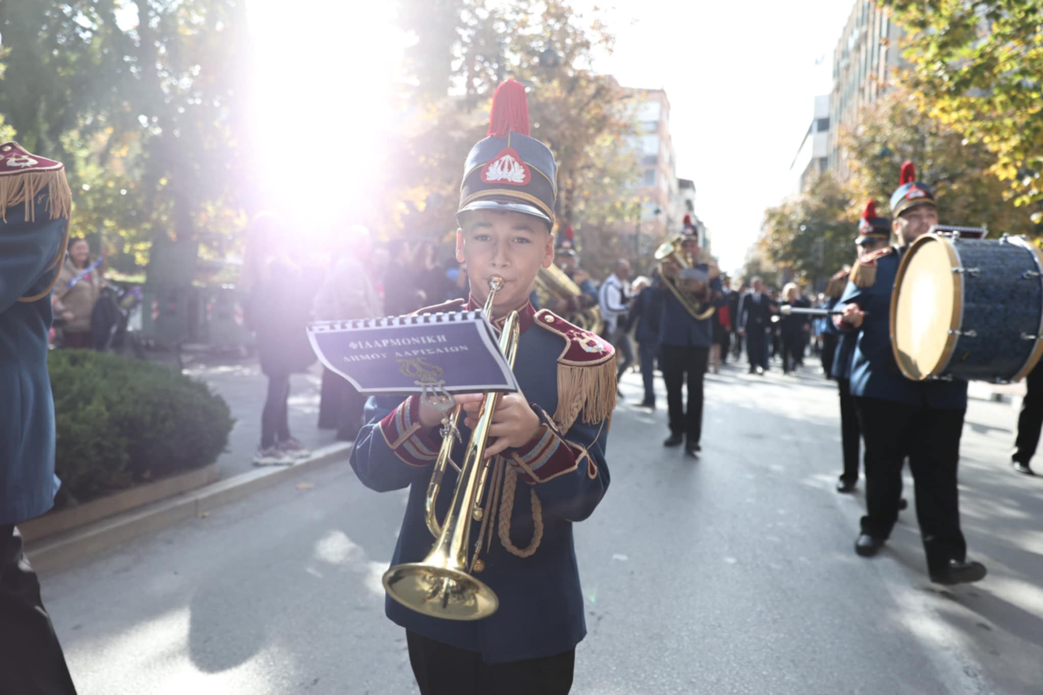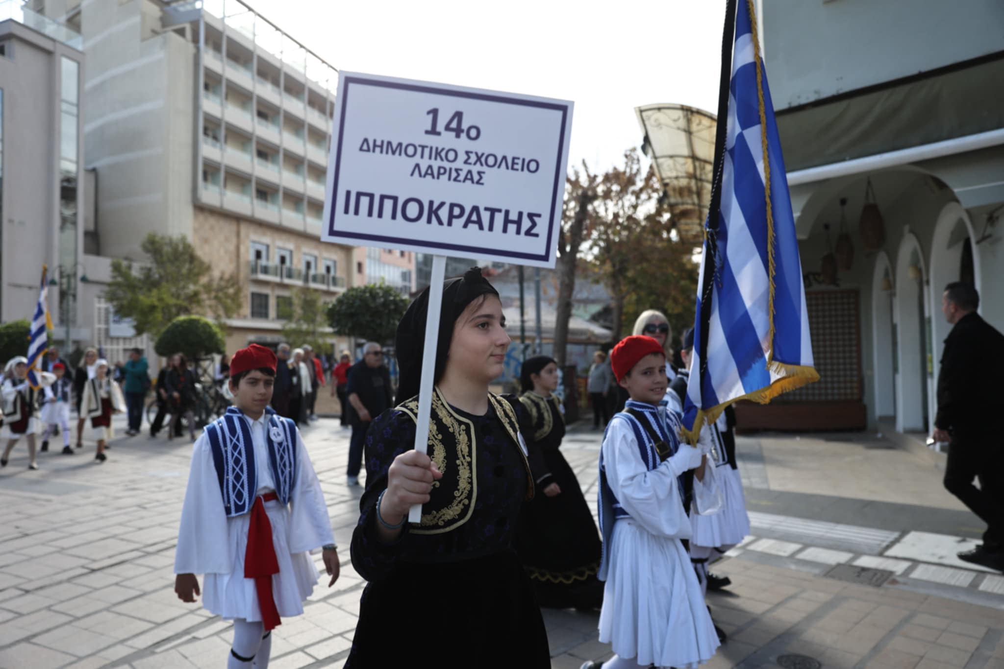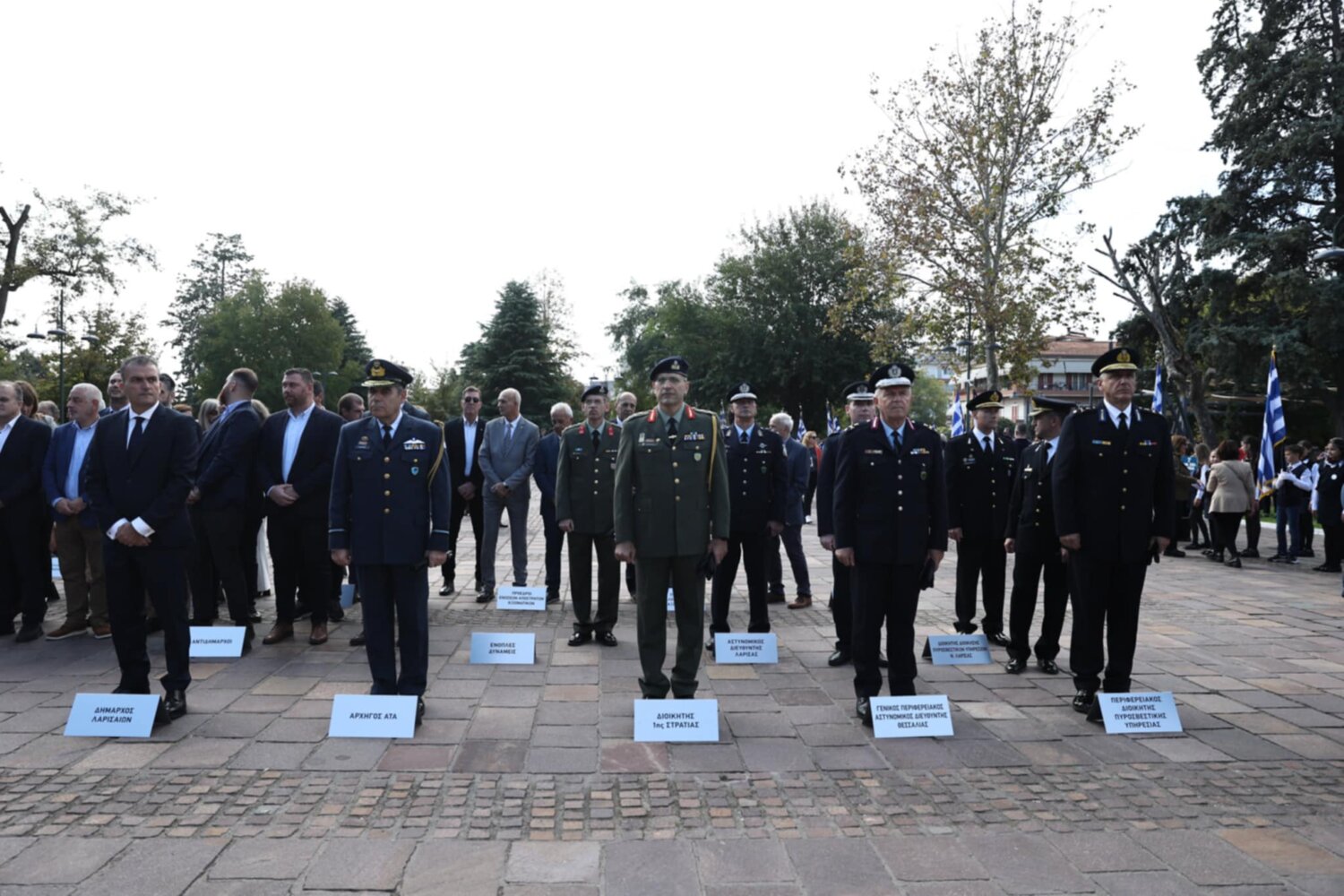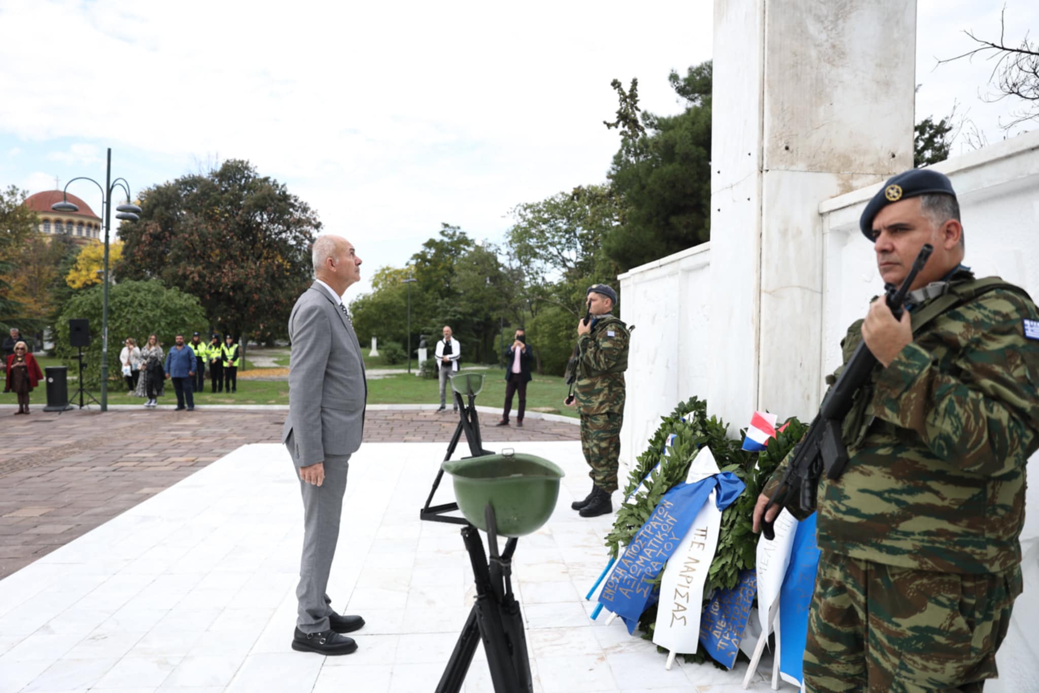Λίγο μετά τις 11 το πρωί μαθητές εκπρόσωποι αρχών και φορέων, καθώς και πολίτες, συγκεντρώθηκαν μπροστά από το Δημαρχείο της Λάρισας και με τη Φιλαρμονική του Δήμου να προηγείται, μετακινήθηκανπρος το Ηρώο της πόλης. Εκεί, ακολούθησε η τέλεση Επιμνημόσυνης δέησης, η ομιλία της Προέδρου του Δημοτικού Συμβουλίου, Γαρυφαλλιάς Καρυστιανού-Γκολφινοπούλου και ολοκληρώθηκαν με την κατάθεση στεφάνων.