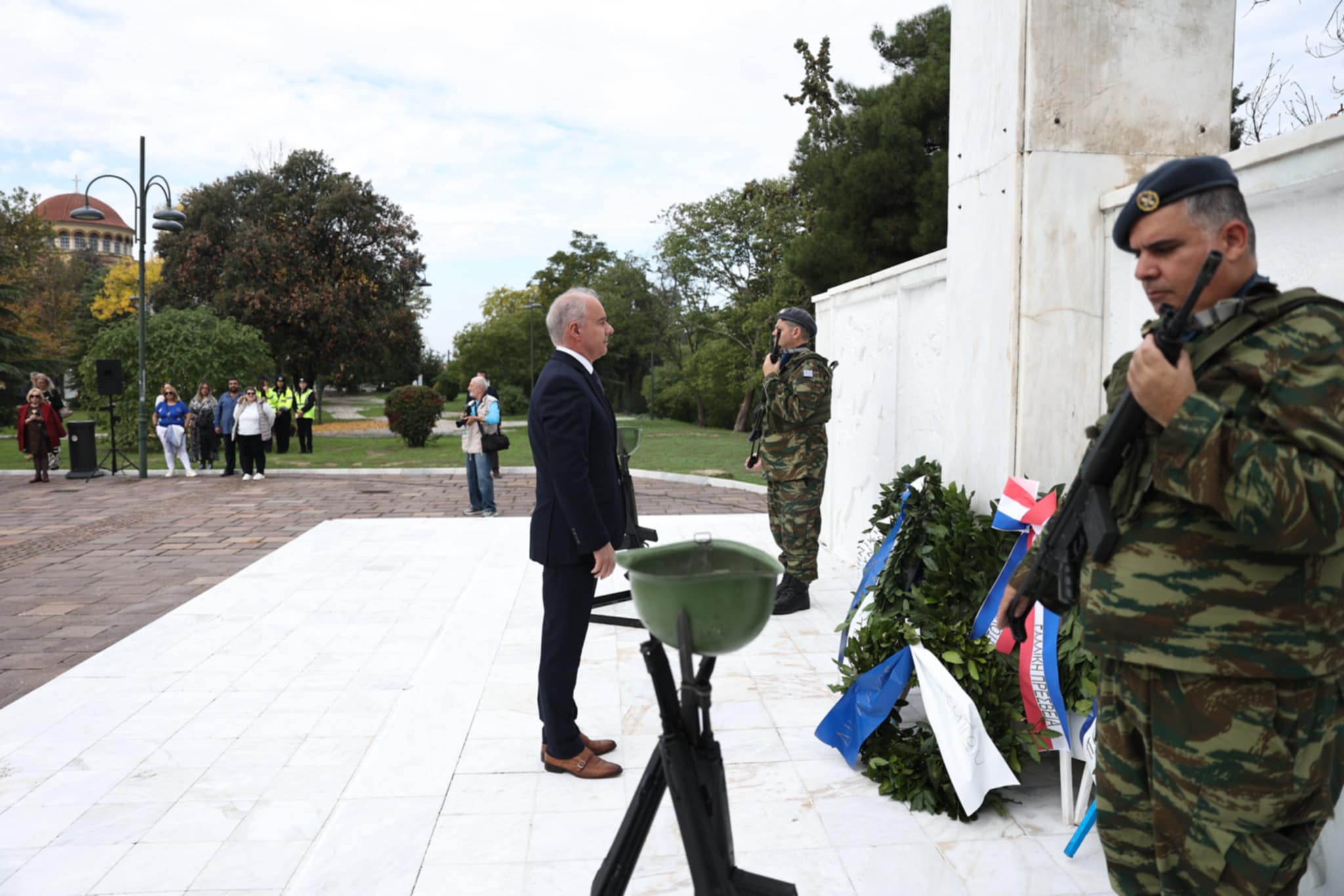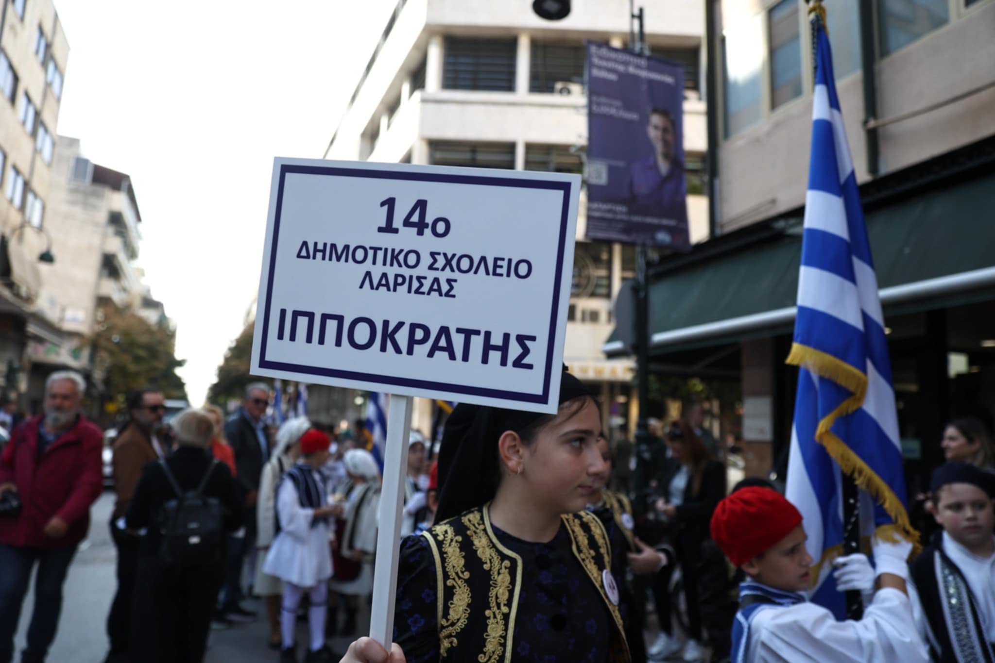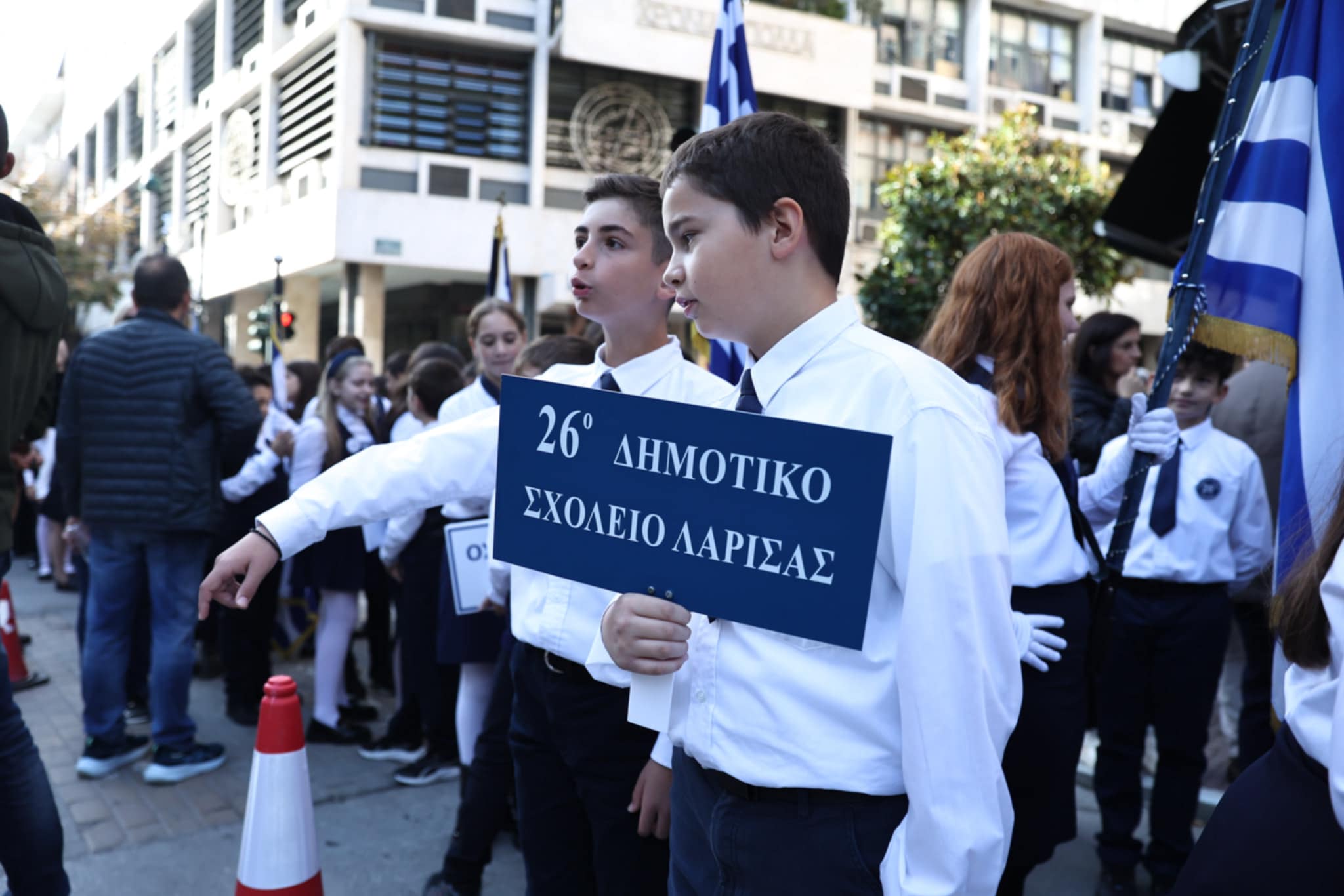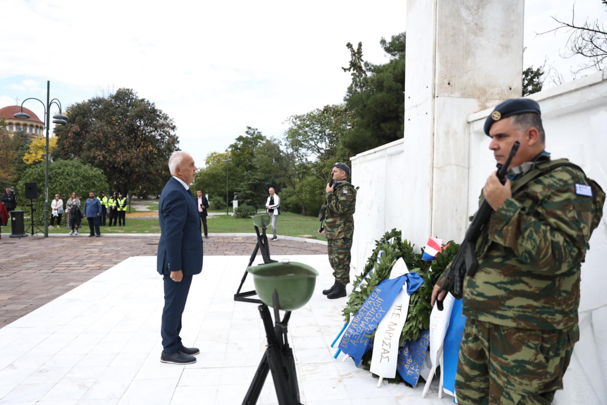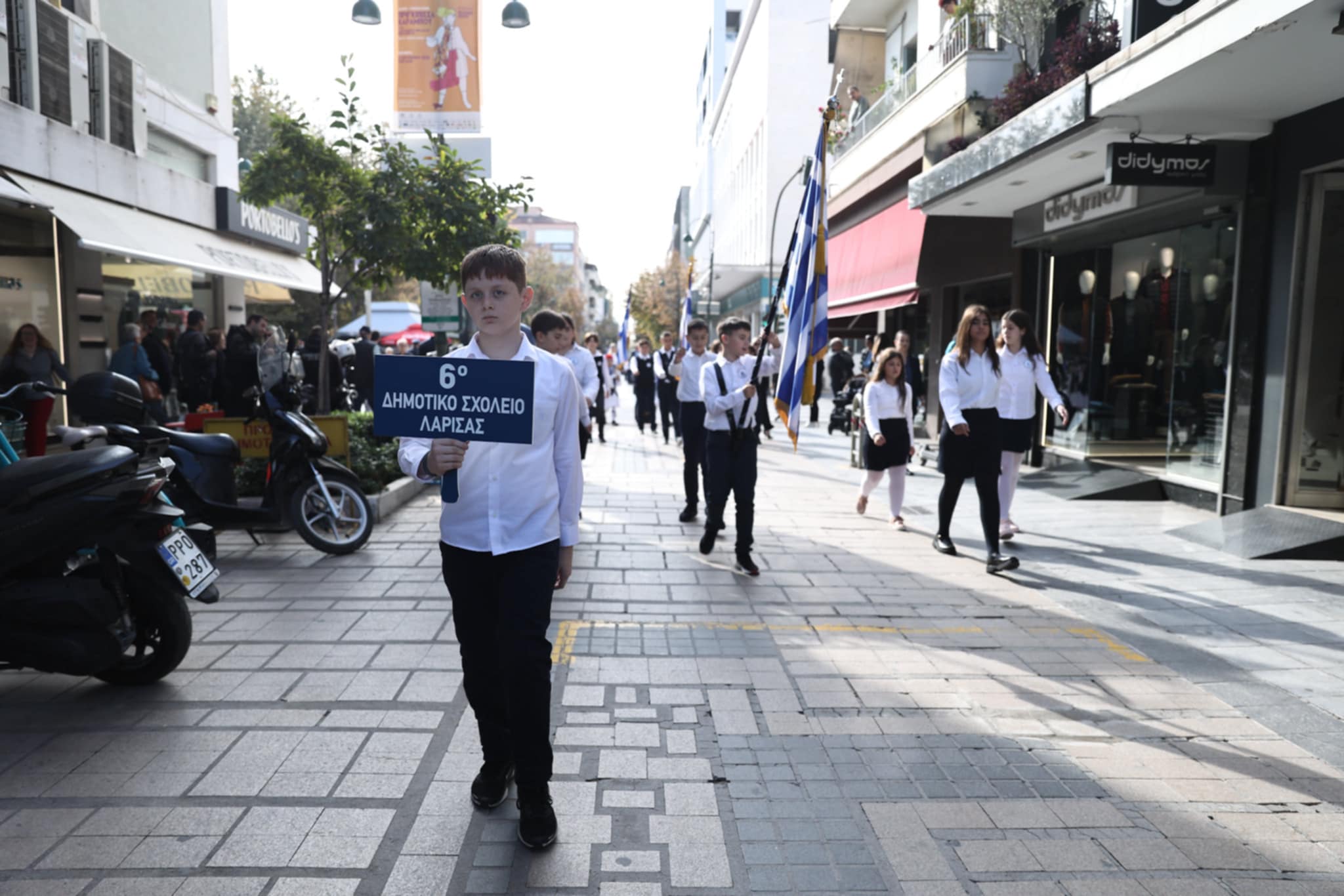 Λίγο μετά τις 11 το πρωί μαθητές εκπρόσωποι αρχών και φορέων, καθώς και πολίτες, συγκεντρώθηκαν μπροστά από το Δημαρχείο της Λάρισας και με τη Φιλαρμονική του Δήμου να προηγείται, μετακινήθηκανπρος το Ηρώο της πόλης. Εκεί, ακολούθησε η τέλεση Επιμνημόσυνης δέησης, η ομιλία της Προέδρου του Δημοτικού Συμβουλίου, Γαρυφαλλιάς Καρυστιανού-Γκολφινοπούλου και ολοκληρώθηκαν με την κατάθεση στεφάνων.