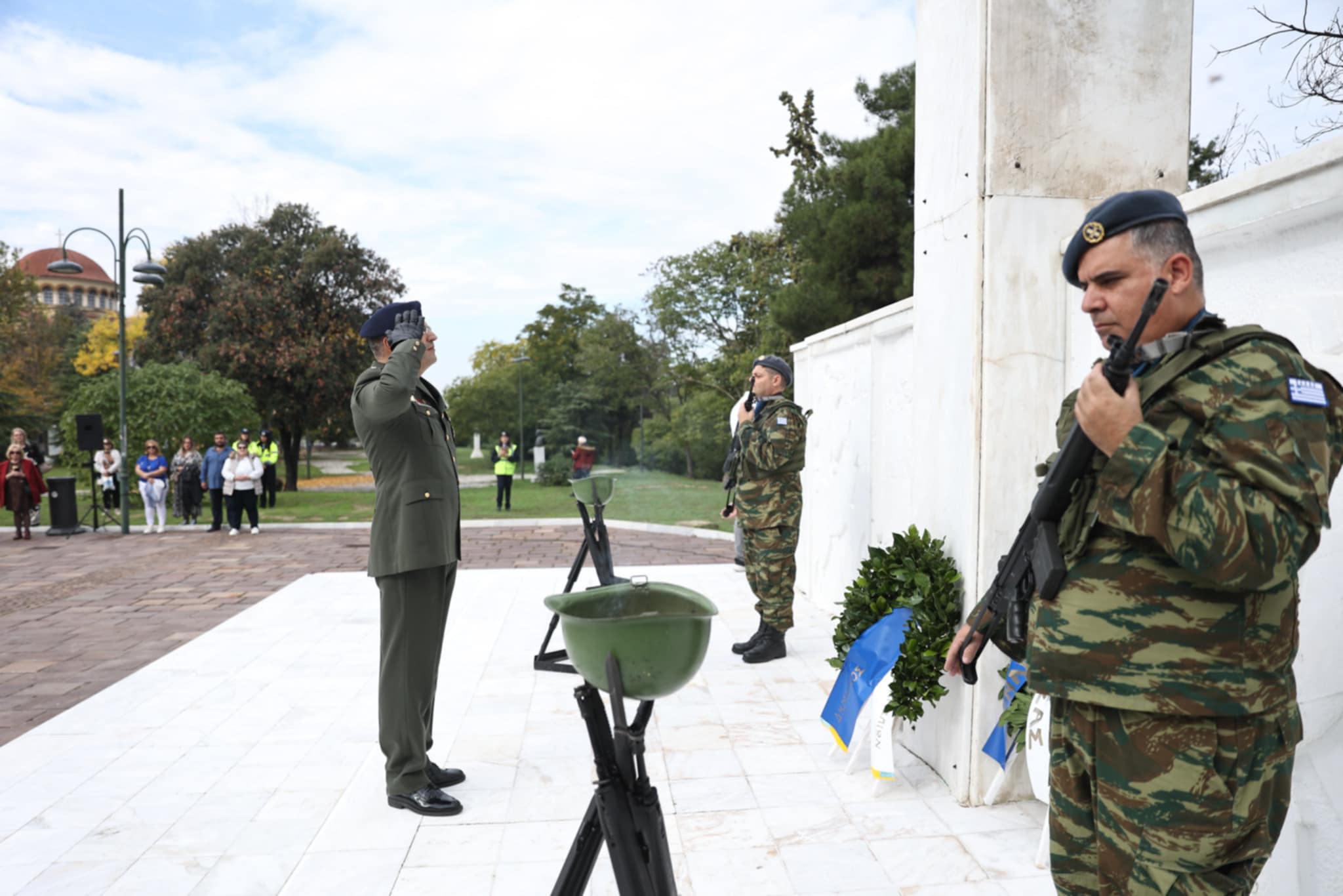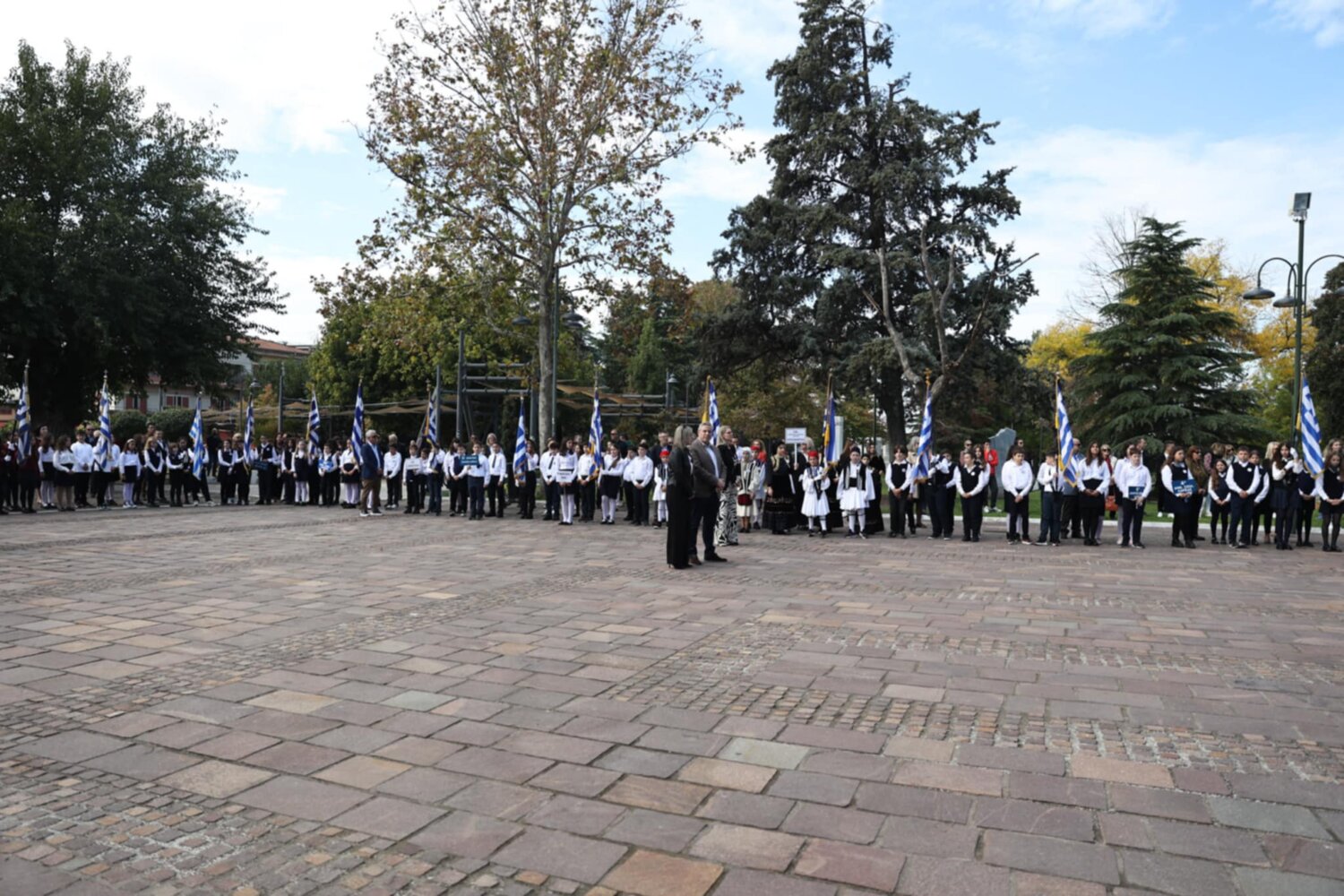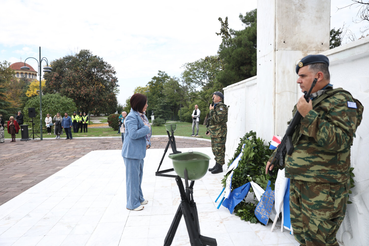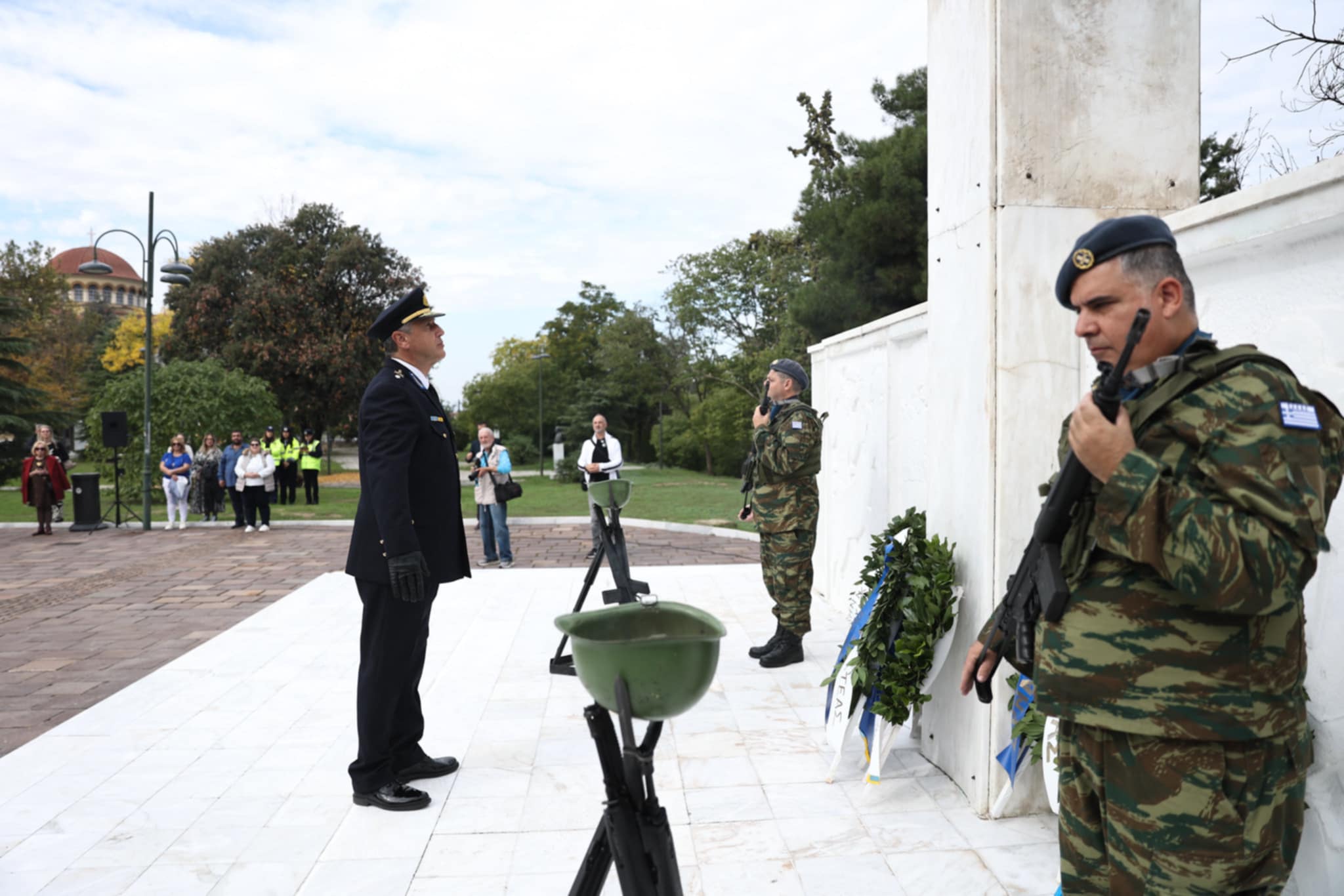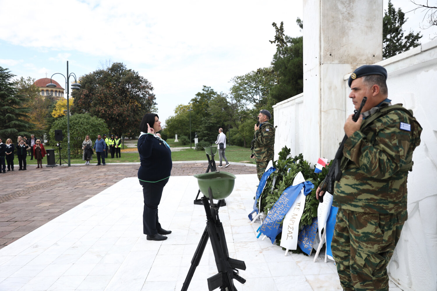 Λίγο μετά τις 11 το πρωί μαθητές εκπρόσωποι αρχών και φορέων, καθώς και πολίτες, συγκεντρώθηκαν μπροστά από το Δημαρχείο της Λάρισας και με τη Φιλαρμονική του Δήμου να προηγείται, μετακινήθηκανπρος το Ηρώο της πόλης. Εκεί, ακολούθησε η τέλεση Επιμνημόσυνης δέησης, η ομιλία της Προέδρου του Δημοτικού Συμβουλίου, Γαρυφαλλιάς Καρυστιανού-Γκολφινοπούλου και ολοκληρώθηκαν με την κατάθεση στεφάνων.
