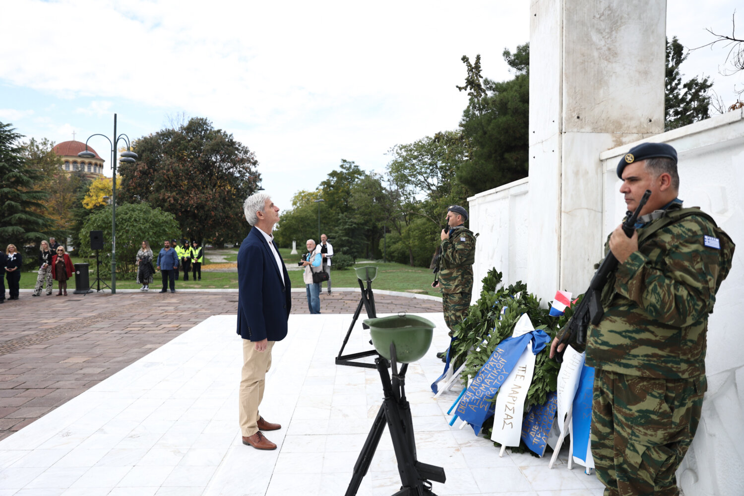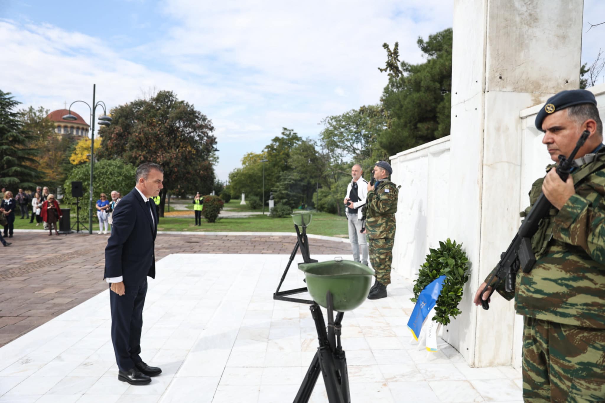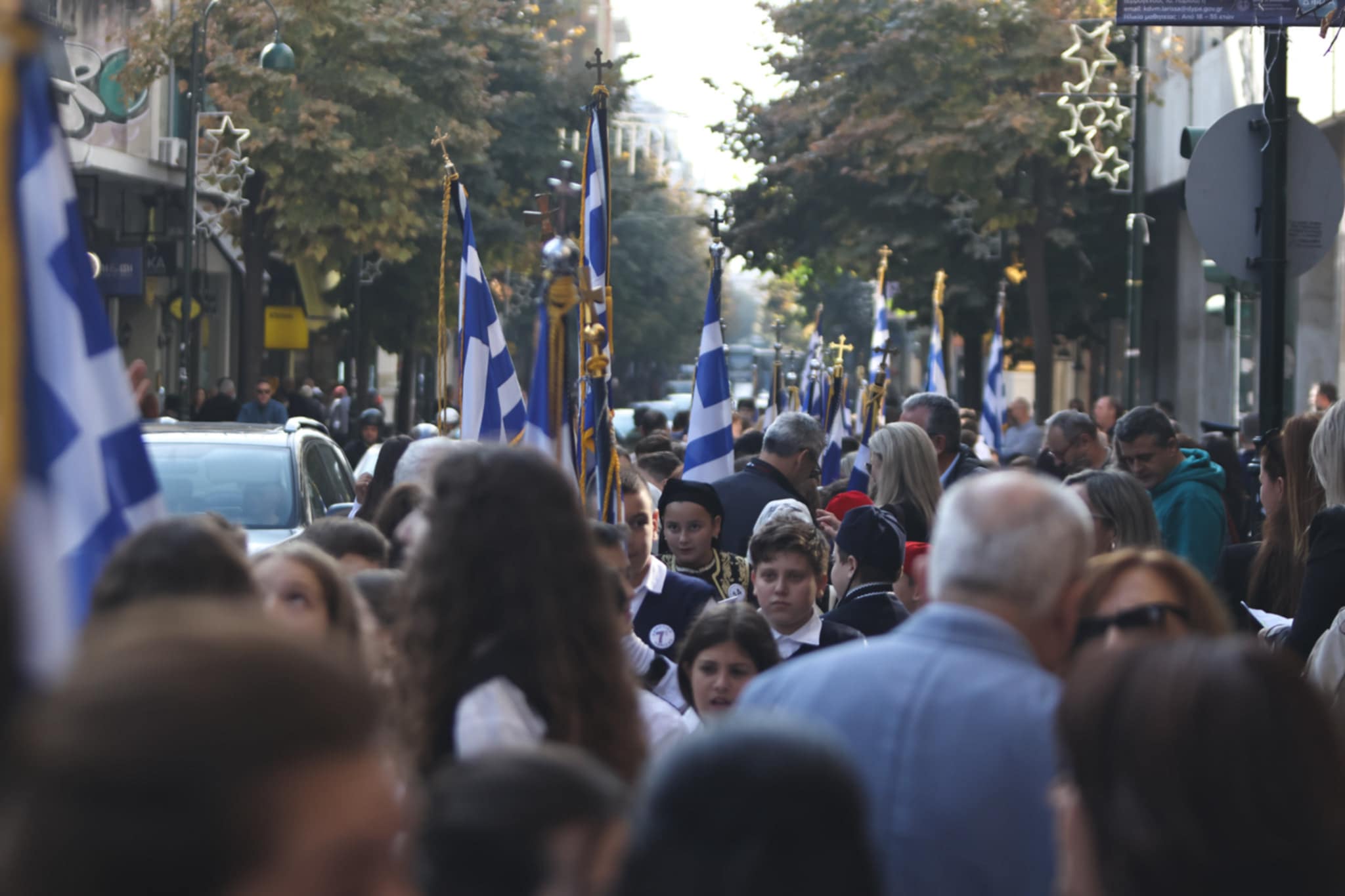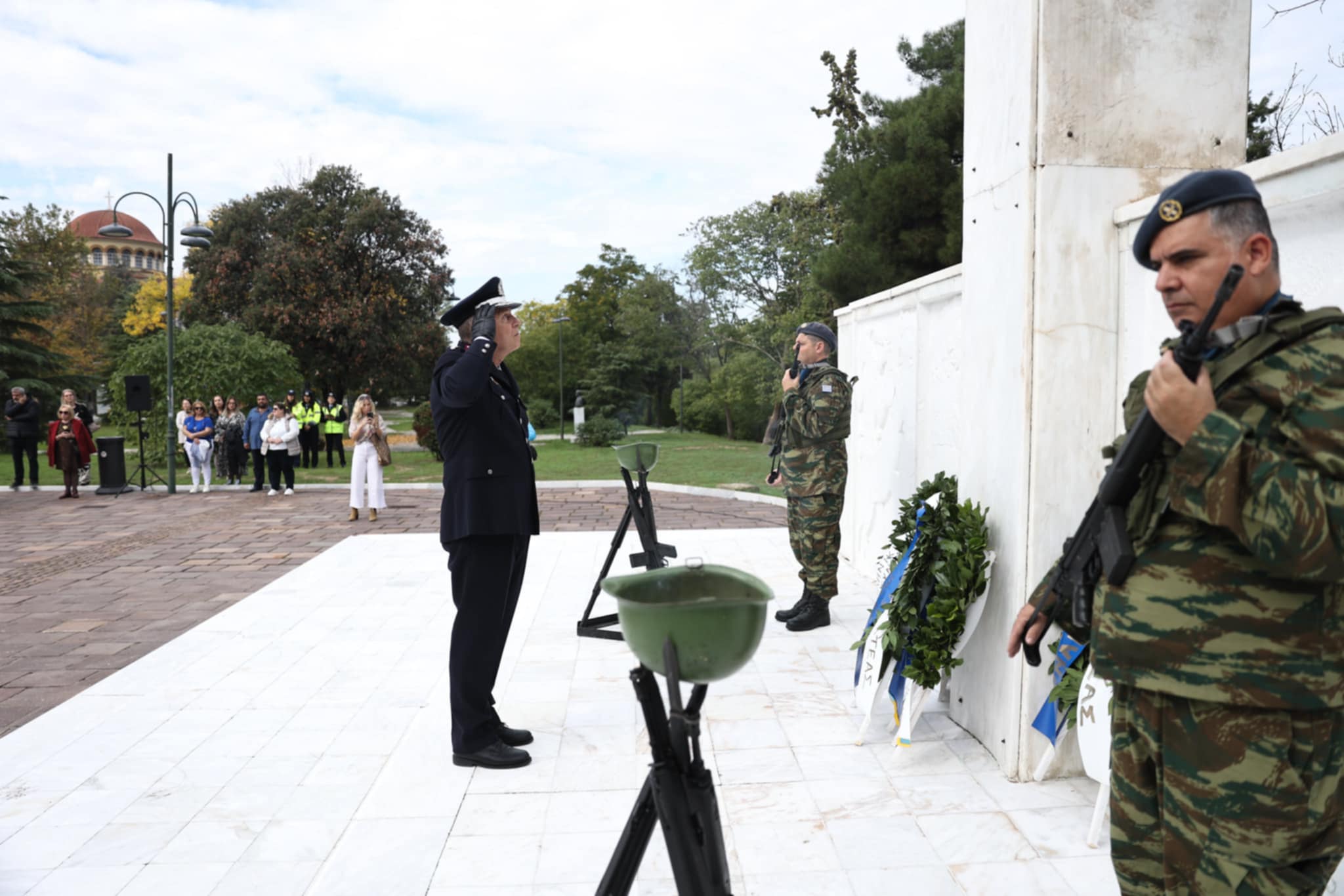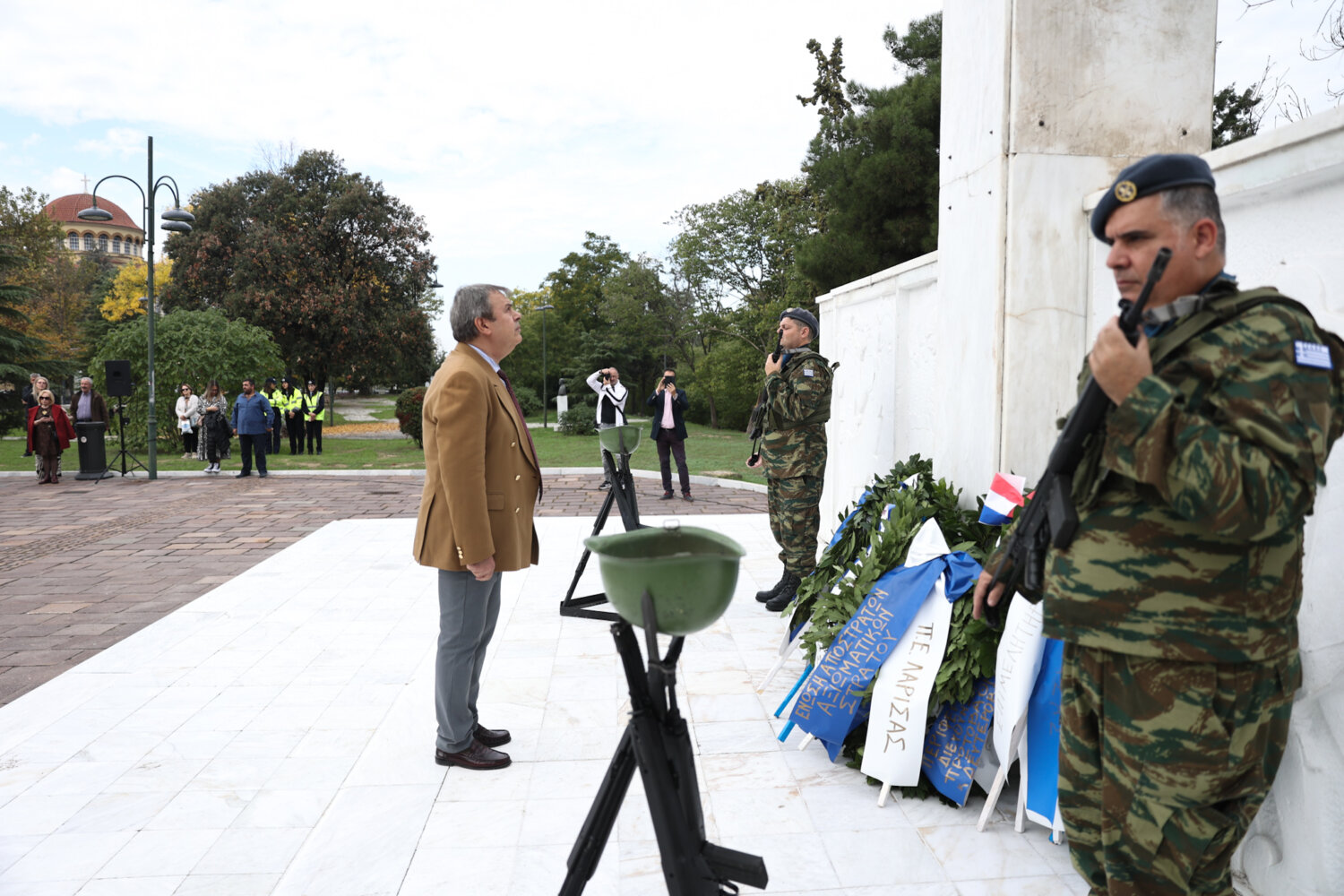 Λίγο μετά τις 11 το πρωί μαθητές εκπρόσωποι αρχών και φορέων, καθώς και πολίτες, συγκεντρώθηκαν μπροστά από το Δημαρχείο της Λάρισας και με τη Φιλαρμονική του Δήμου να προηγείται, μετακινήθηκανπρος το Ηρώο της πόλης. Εκεί, ακολούθησε η τέλεση Επιμνημόσυνης δέησης, η ομιλία της Προέδρου του Δημοτικού Συμβουλίου, Γαρυφαλλιάς Καρυστιανού-Γκολφινοπούλου και ολοκληρώθηκαν με την κατάθεση στεφάνων.