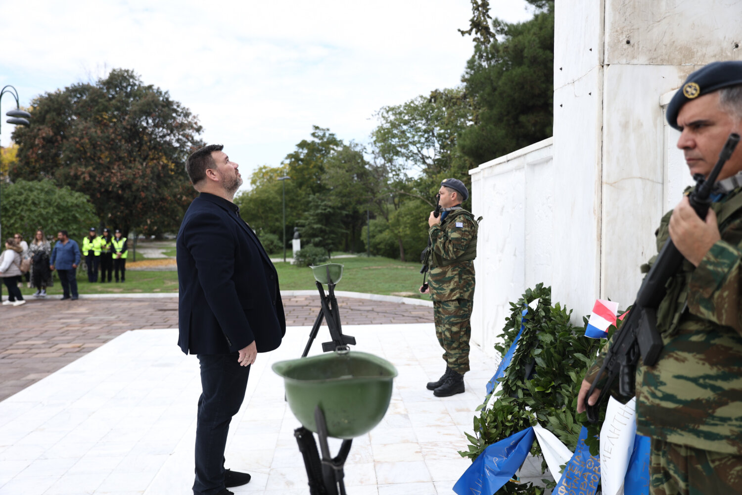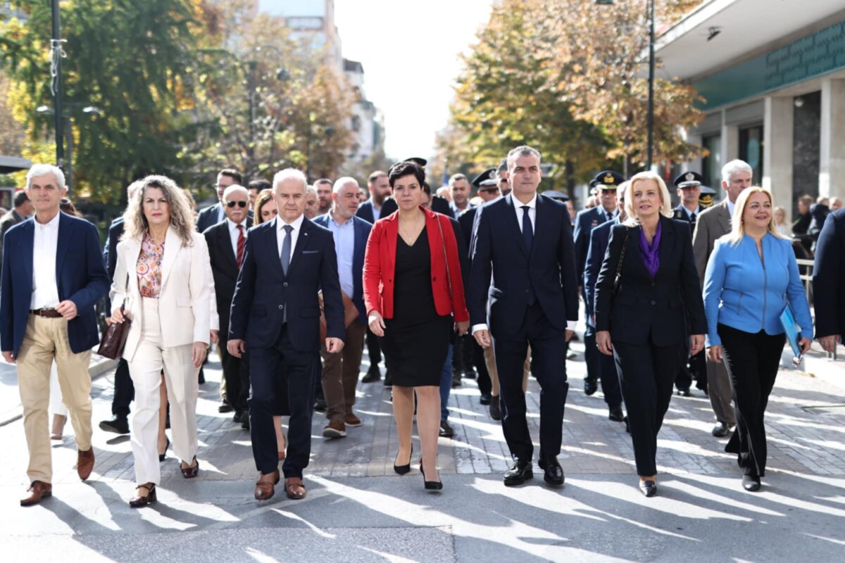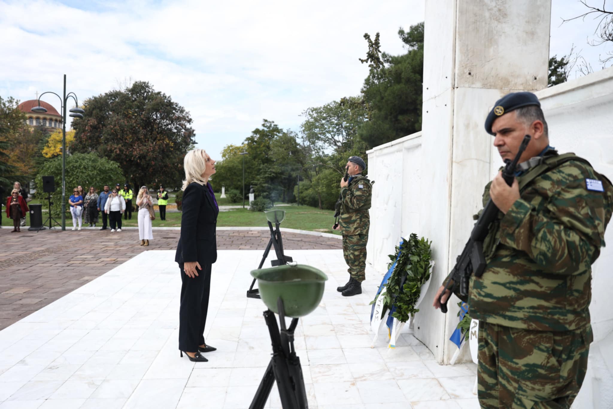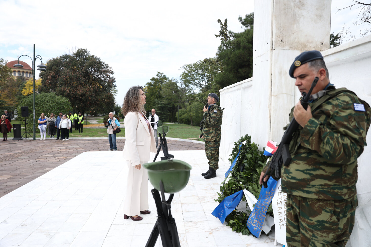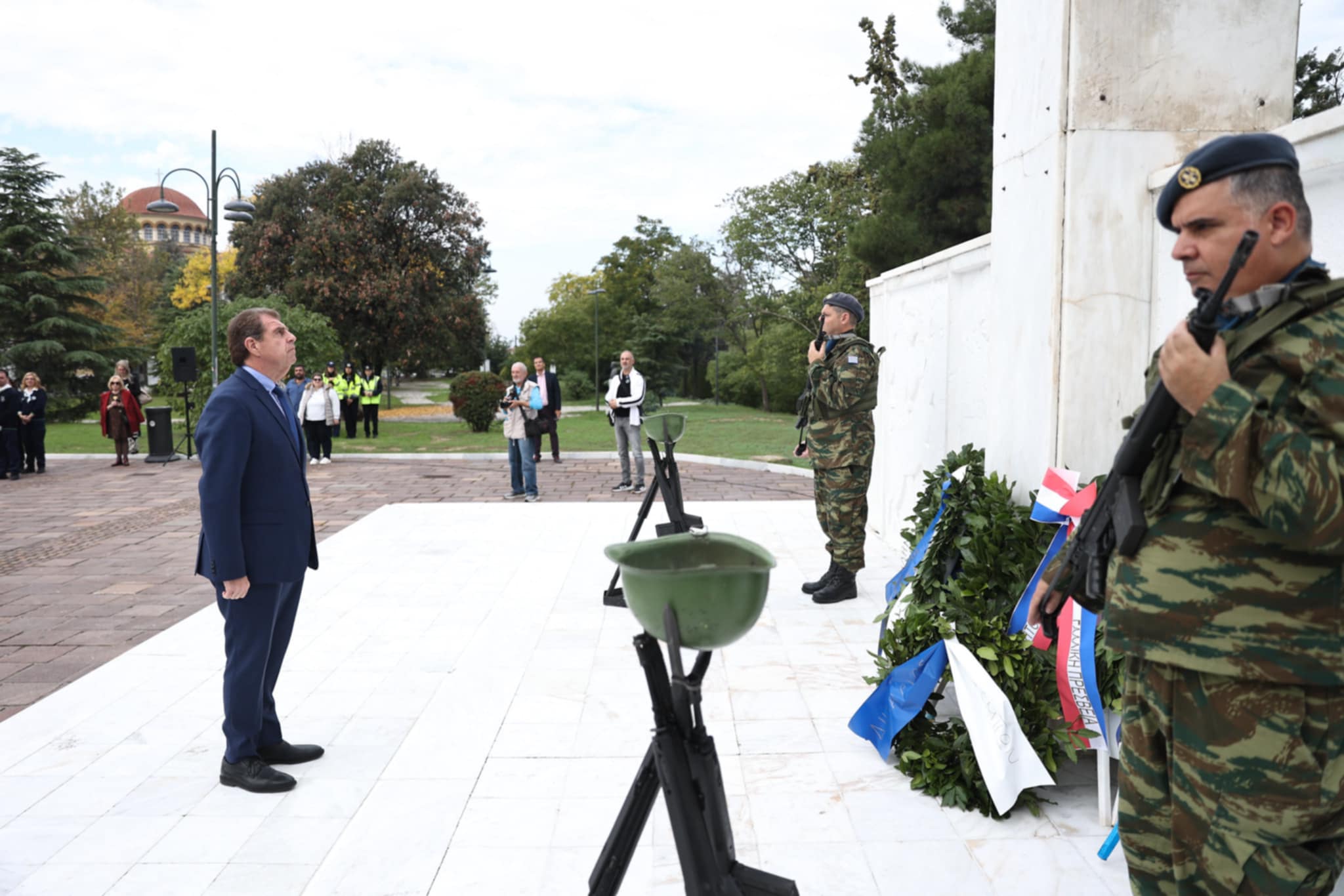 Λίγο μετά τις 11 το πρωί μαθητές εκπρόσωποι αρχών και φορέων, καθώς και πολίτες, συγκεντρώθηκαν μπροστά από το Δημαρχείο της Λάρισας και με τη Φιλαρμονική του Δήμου να προηγείται, μετακινήθηκανπρος το Ηρώο της πόλης. Εκεί, ακολούθησε η τέλεση Επιμνημόσυνης δέησης, η ομιλία της Προέδρου του Δημοτικού Συμβουλίου, Γαρυφαλλιάς Καρυστιανού-Γκολφινοπούλου και ολοκληρώθηκαν με την κατάθεση στεφάνων.