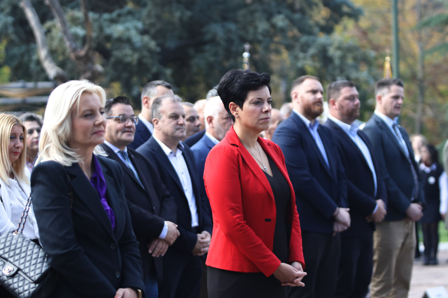 Από την πλευρά της αντιπεριφερειάρχης Π. Ε. Λάρισας, Μαρία Γαλλιού πρόσθεσε ότι, «ενώ η δημοκρατία, η αξιοπρέπεια θα έπρεπε να είναι δεδομένη, οι γεωπολιτικές συνθήκες δείχνουν πως θα πρέπει να δίνουμε συνεχώς αγώνα»