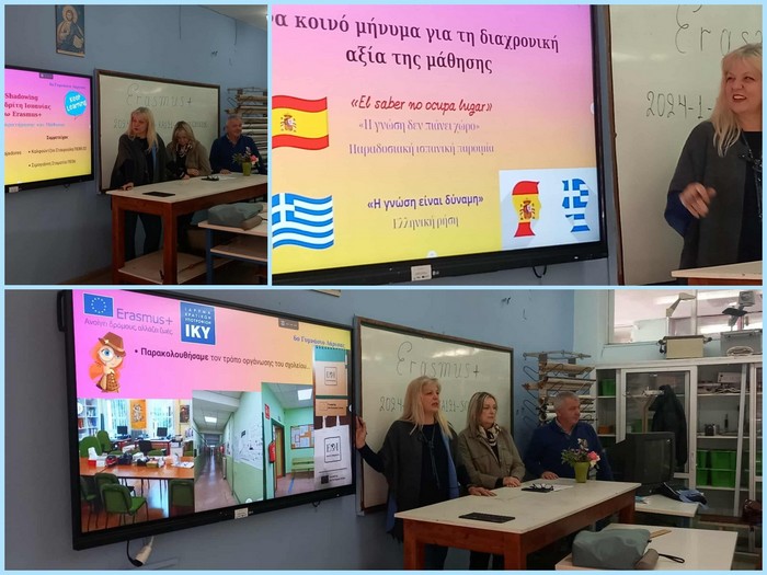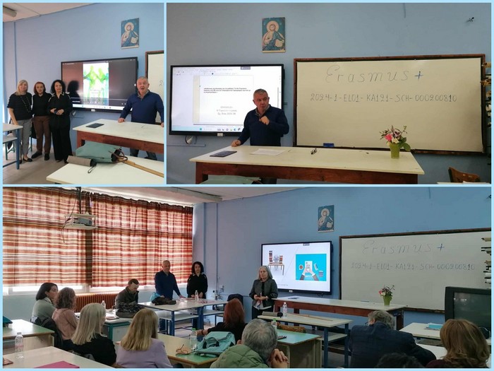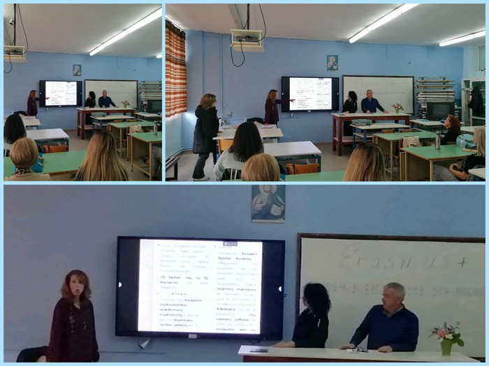 Ευχαριστούμε τους εκπαιδευτικούς που παρακολούθησαν την παρουσίαση των κινητικοτήτων ERASMUS+ του σχολείου μας καθώς και την κ. Νάτση για την παρουσία της».