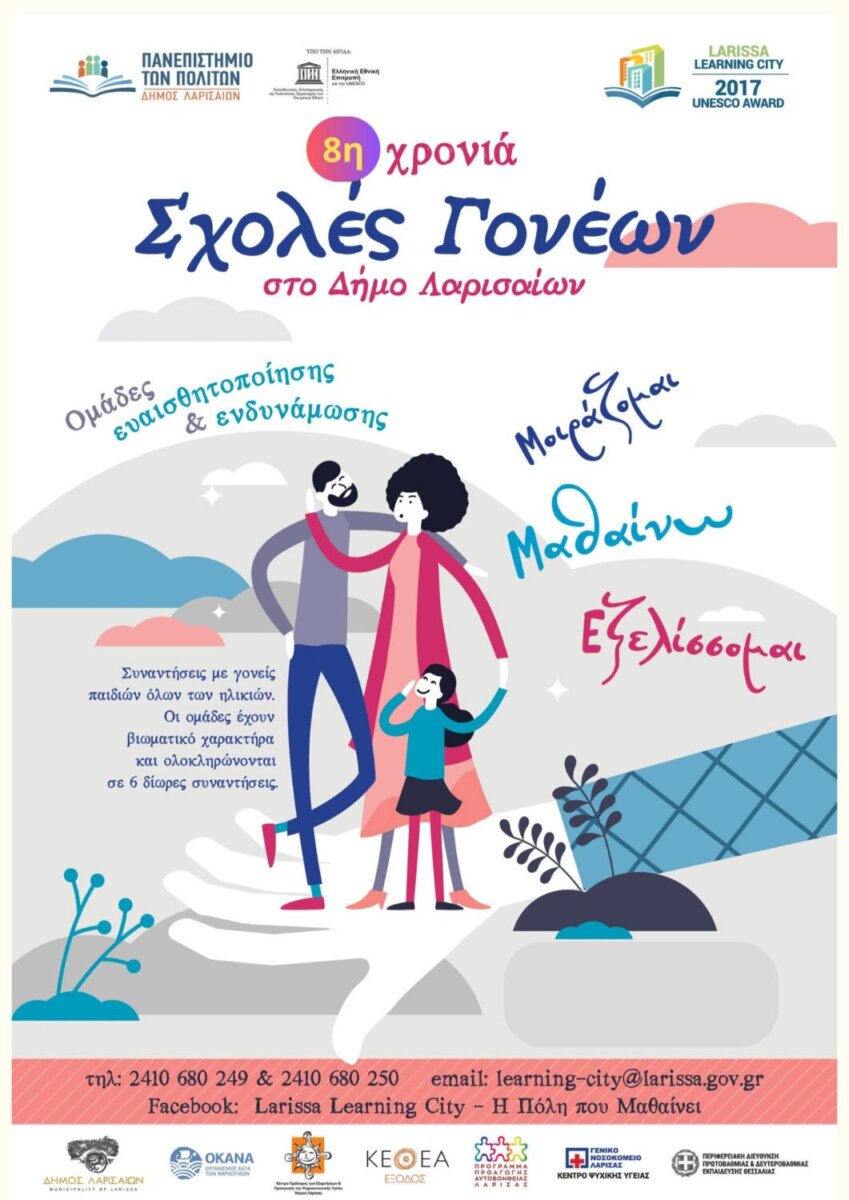 Μετά την ολοκλήρωση του τελευταίου κύκλου του προγράμματος ΣΧΟΛΕΣ ΓΟΝΕΩΝ στο Δήμο Λαρισαίων, ανακοινώνεται η έναρξη του νέου κύκλου συναντήσεων.