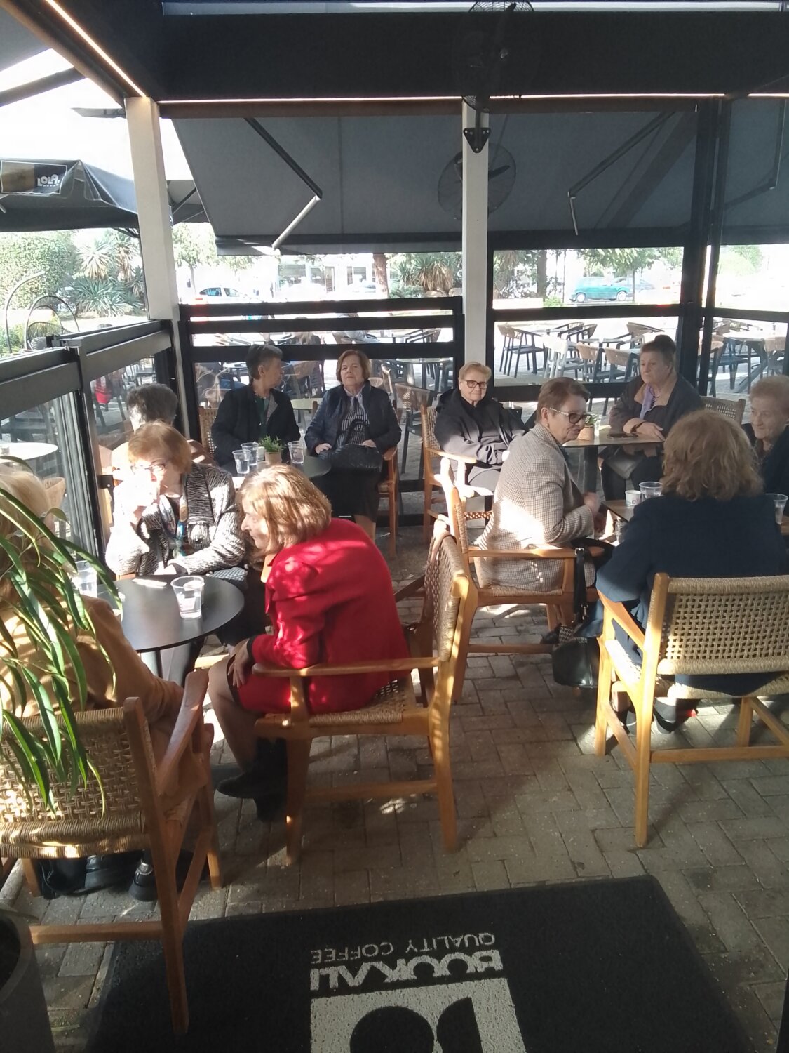 Στή συνέχεια ,η πρόεδρος Ελένη Νιφλή, δεξιώθηκε τους καλεσμένους, στην καφετέρια ΒΟΟΚΛΗ .Οι καλεσμένοι απήλαυσαν τον καφέ καί εδέσματα, μέσα σέ φιλικό και ευχάριστο περιβάλλον. πράλ ληλα, συζήτησαν γιά το σημαντικό εργο του αγίου στα Ιεροσόλυμα, καθώς και για τις προοπτικές της Ε.Ε.Ν.Α.Λ .Η γιορτινή ημέρα έκλεισε με φωτογράφηση ,ευχές και χαμόγελα.