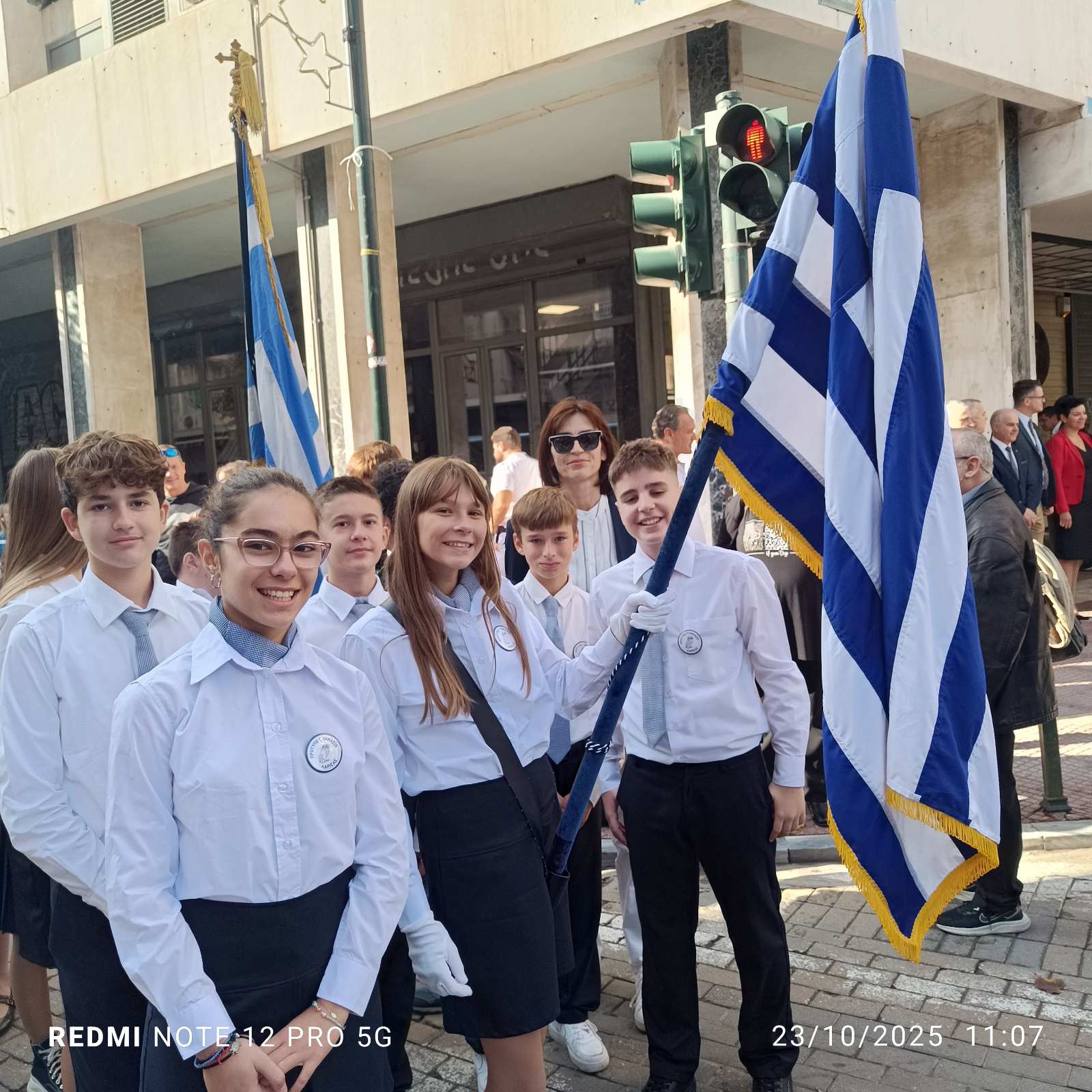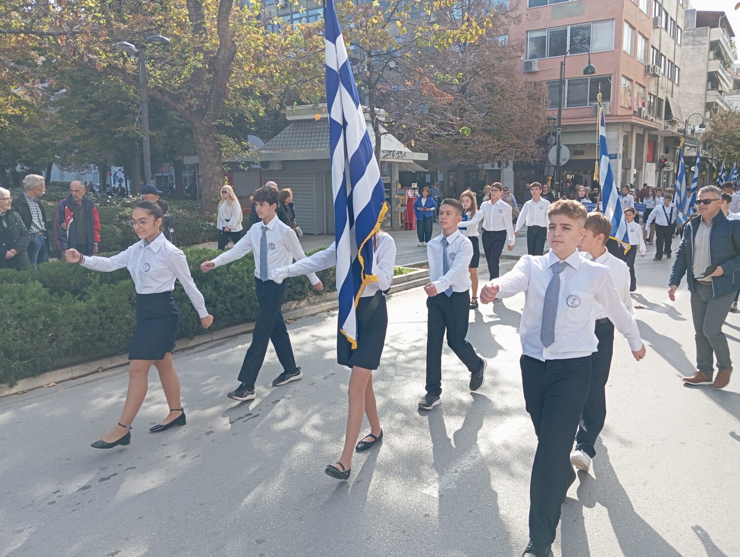 «Το σχολείο μας, υπό την συνοδεία της εκπαιδευτικού Φυσικής Αγωγής κας Ξενοπούλου Παρασκευής καθώς και άλλα Γυμνάσια και Λύκεια της Λάρισας, απέτισαν φόρο τιμής στους αγώνες των προγόνων μας, που στις 23 Οκτωβρίου του 1944 απελευθέρωσαν την πόλη μας από τη ναζιστική κατοχή.