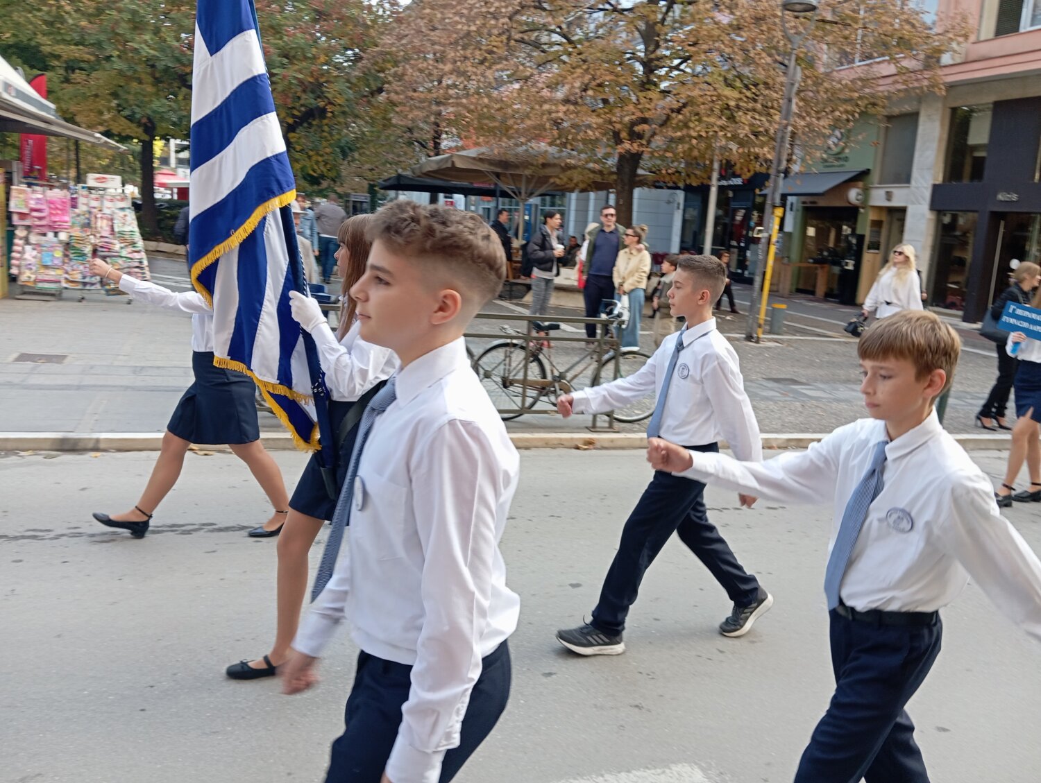 Το Πρότυπο Γυμνάσιο Λάρισας συμμετείχε σήμερα Πέμπτη με περηφάνια στις εορταστικές εκδηλώσεις του Δήμου Λαρισαίων για τον εορτασμό της Απελευθέρωσης της Λάρισας από τα γερμανικά στρατεύματα κατοχής, με το άγημα μαθητών της Σημαίας:
