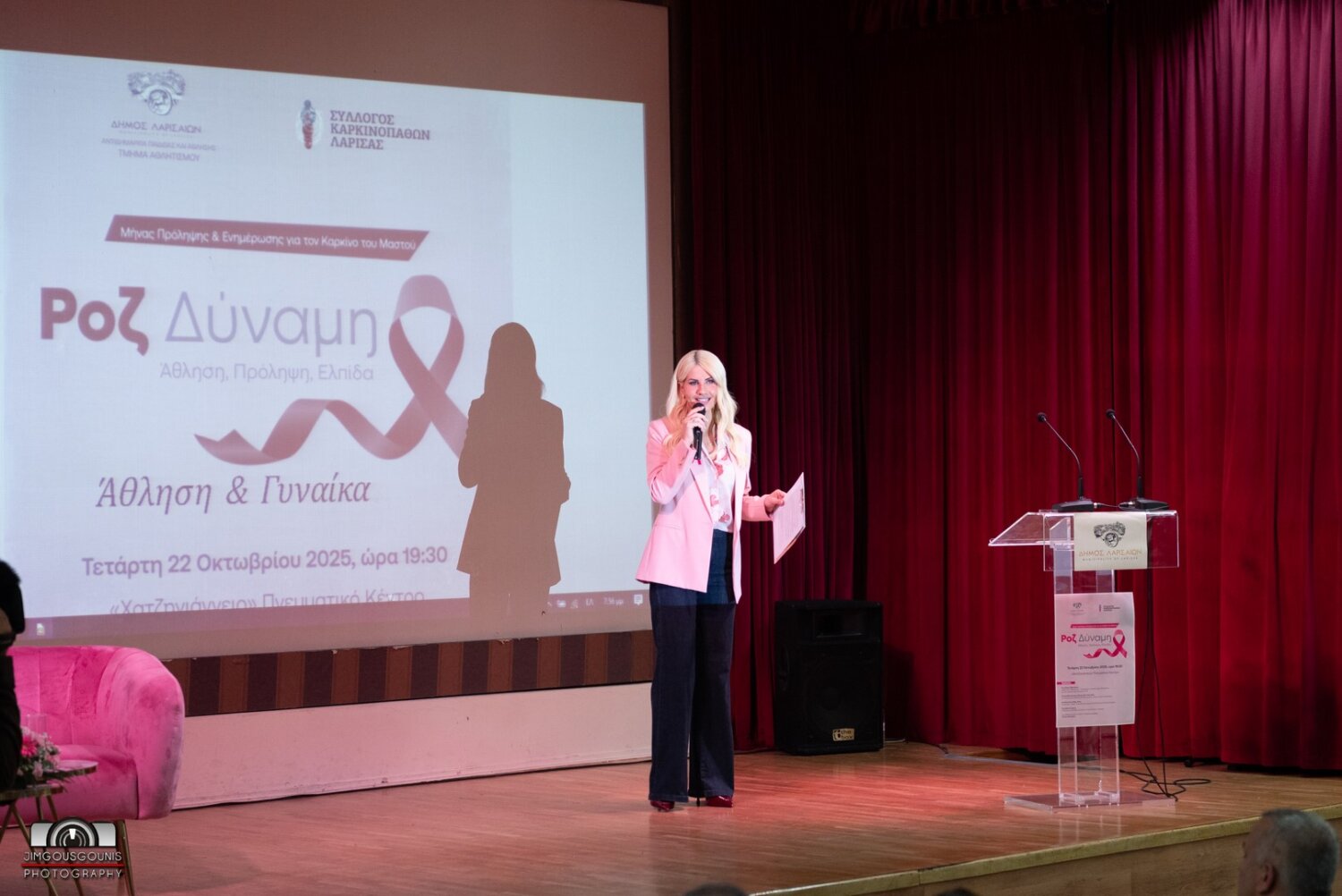 Με ιδιαίτερη επιτυχία πραγματοποιήθηκε την Τετάρτη 22 Οκτωβρίου 2025, στο «Χατζηγιάννειο» Πνευματικό Κέντρο Λάρισας, η εκδήλωση ενημέρωσης και ευαισθητοποίησης για την πρόληψη του καρκίνου του μαστού, με τίτλο «Ροζ Δύναμη – Άθληση, Πρόληψη, Ελπίδα». Την πρωτοβουλία διοργάνωσε το Τμήμα Αθλητισμού του Δήμου Λαρισαίων, σε συνεργασία με τους καθηγητές Φυσικής Αγωγής του προγράμματος «Άθληση και Γυναίκα» και τον Σύλλογο Καρκινοπαθών Λάρισας.