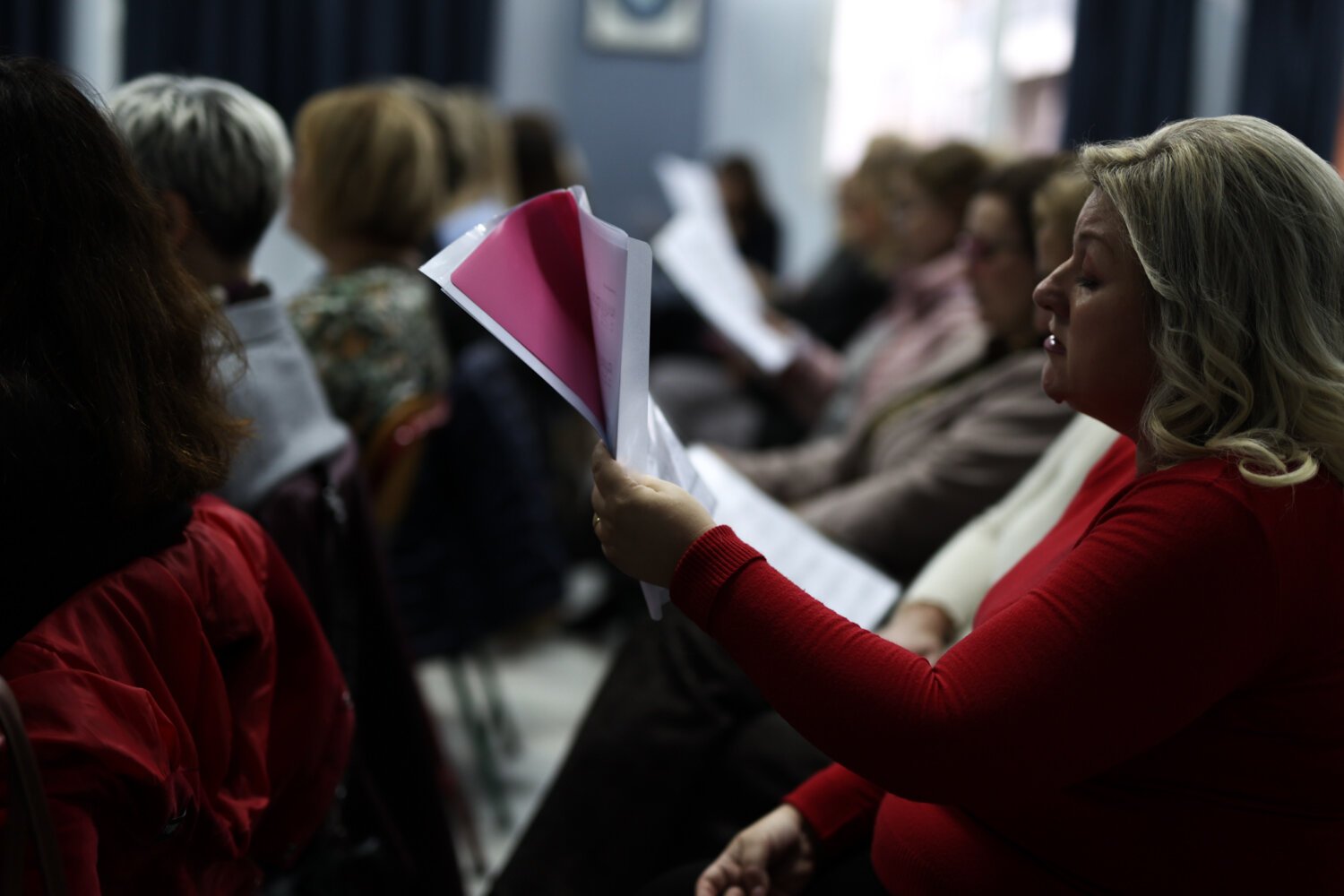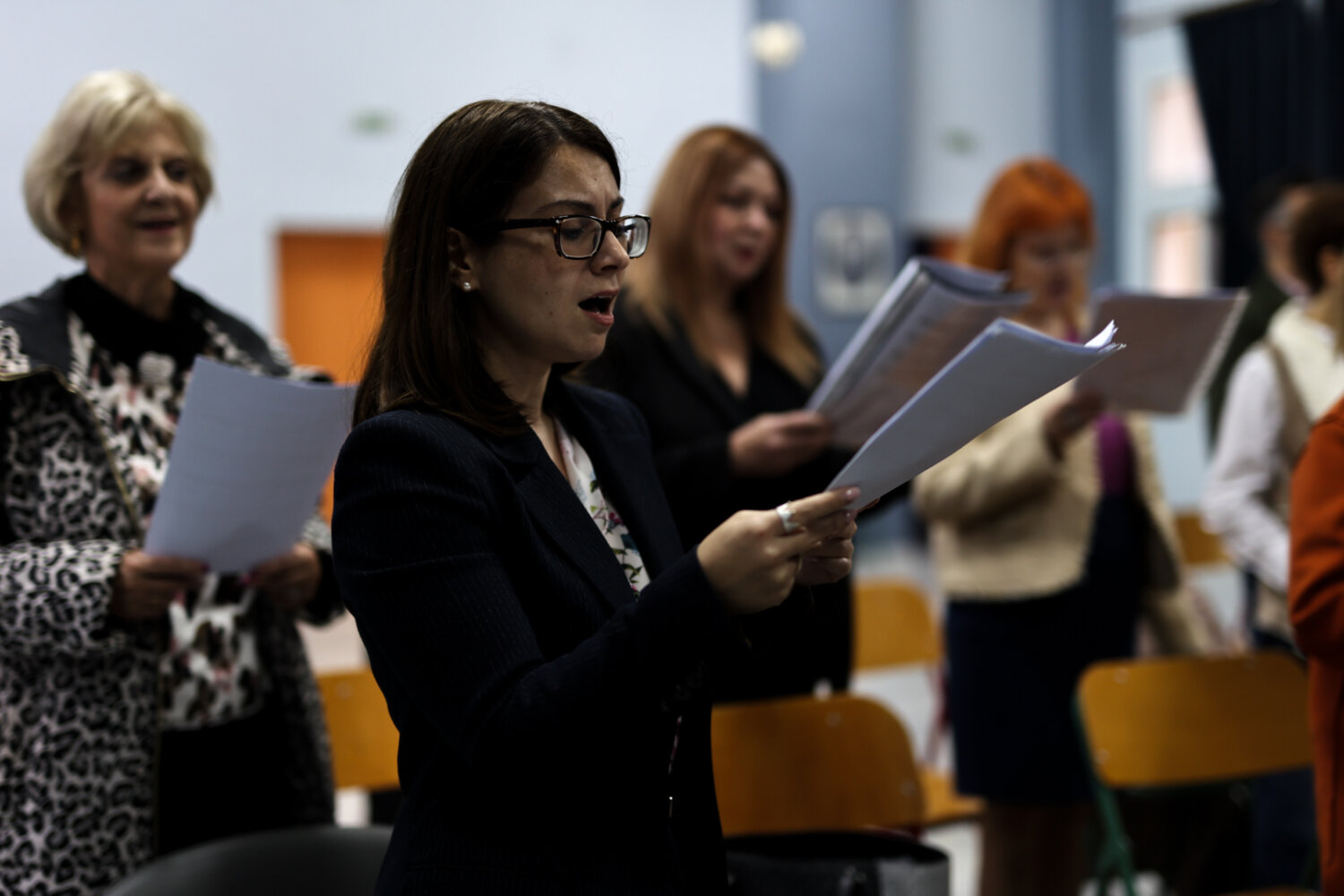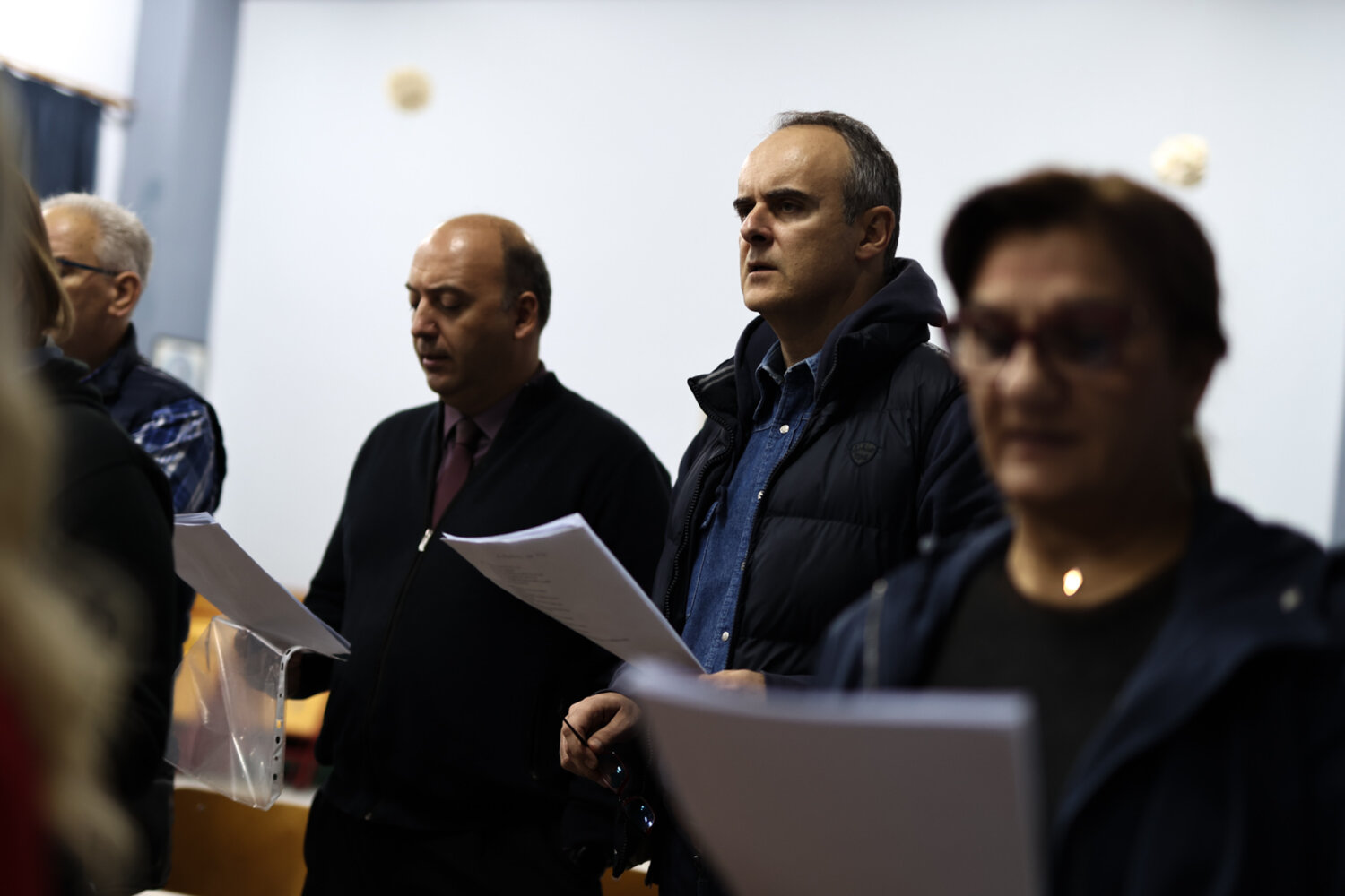 Λίγο πριν τις 18.30 η πρόβα πλησιάζει στο τέλος της. Εκτός από τα κλασσικά ελληνικά τραγούδια, η χορωδία “ζεσταίνεται” και με γνωστές χριστουγεννιάτικες επιτυχίες για να ολοκληρωθεί η σημερινή πρόβα για ακόμα μια φορά με το “Οι θαλασσιές σου οι χάντρες”.