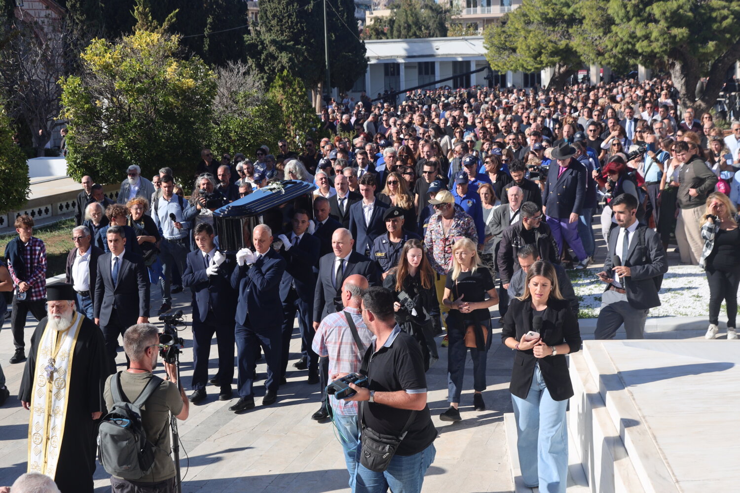 Η νεκρώσιμη πομπή έφθασε λίγο μετά τις 15:15 στο Α’ Νεκροταφείο, συνοδευόμενη με τα τραγούδια του αγαπημένου Νιόνιου.
