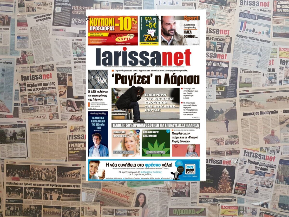 Το πρώτο φύλλο της εφημερίδας μας με τίτλο «»Ραγίζει» η Λάρισα».