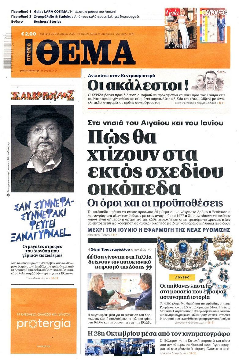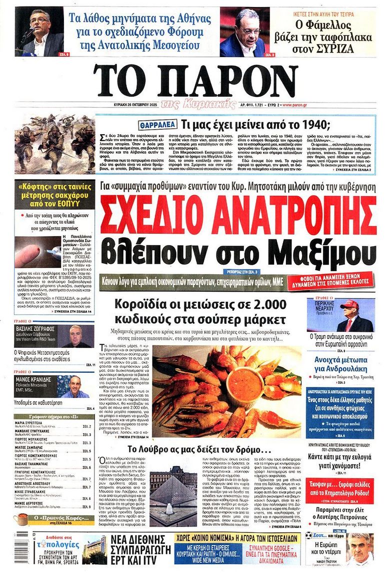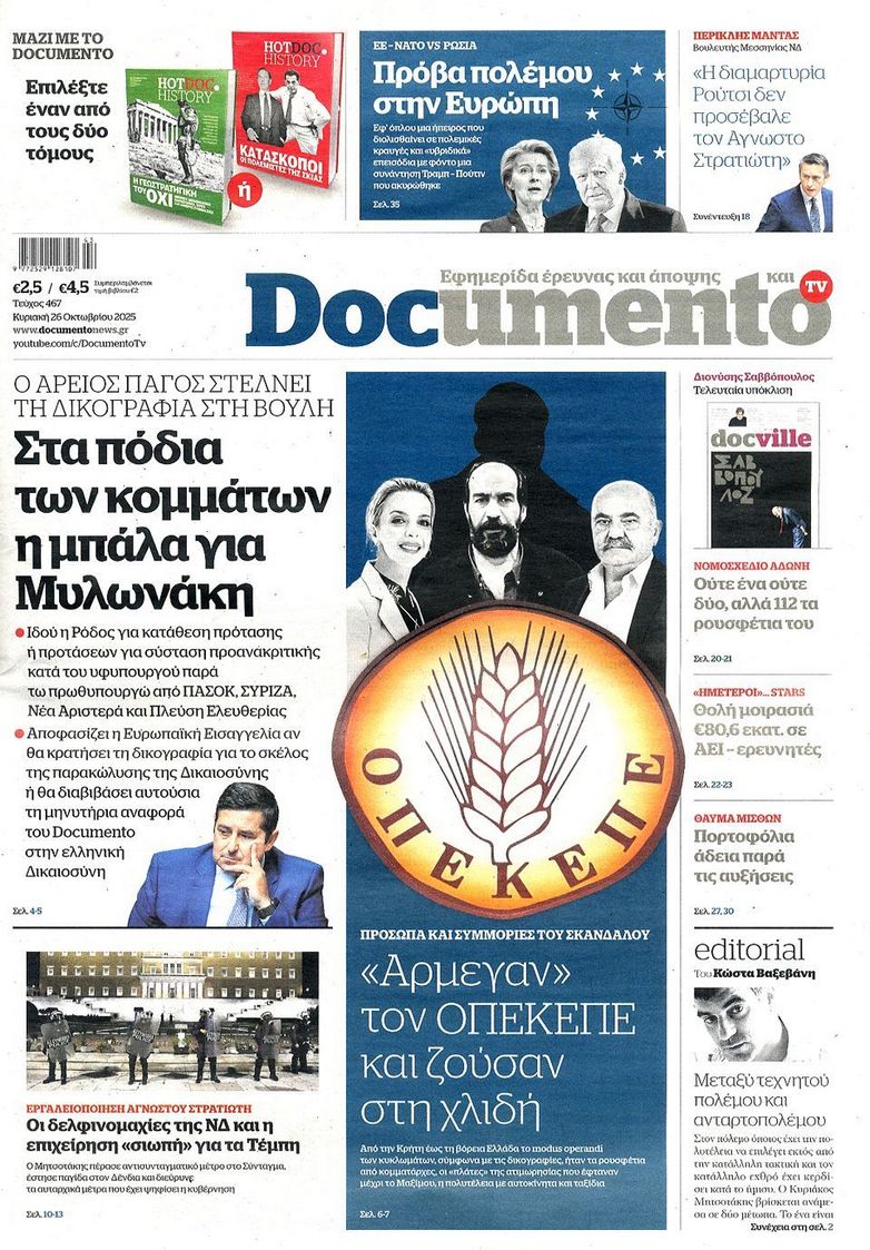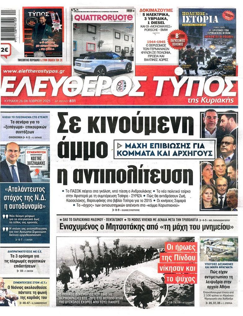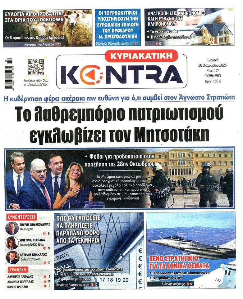 Τα αφιερώματα στο σπουδαίο τραγουδοποιό Διονύση Σαββόπουλο ο οποίος έφυγε από την ζωή την περασμένη Τρίτη, το πολιτικό τοπίο που καλείται να αντιμετωπίσει η κυβέρνηση με τις τριβές για τον «Άγνωστο Στρατιώτη» τα τρία σκιώδη κόμματα και τον ΟΠΕΚΕΠΕ και η φημολογούμενη εμπλοκή του Ντόναλντ Τραμπ στο Κυπριακό ξεχωρίζουν στα πρωτοσέλιδα των κυριακάτικων εφημερίδων.
