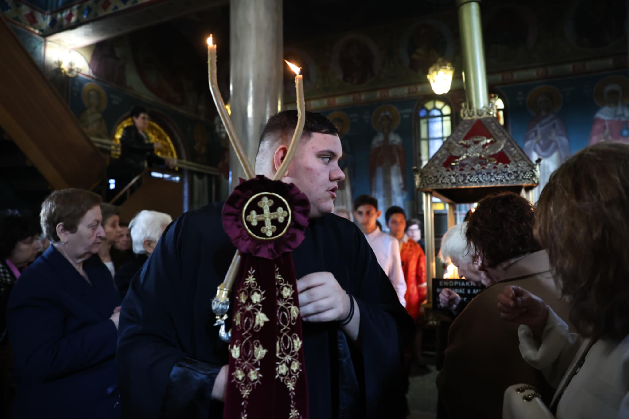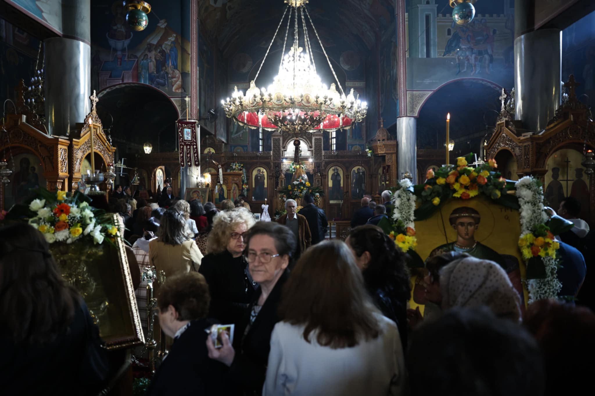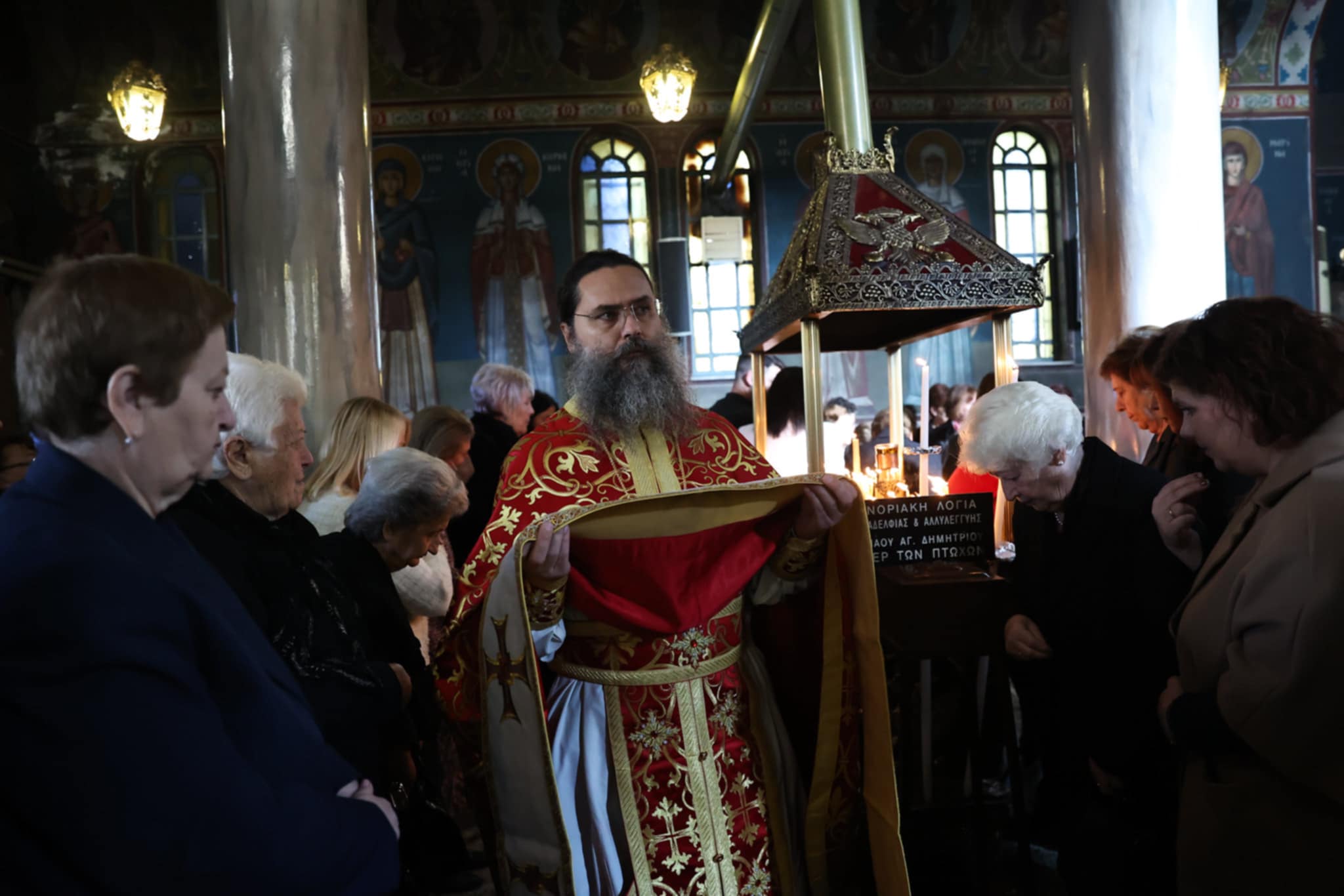 Πλήθος πιστών βρέθηκαν στον Πανηγυρίζοντα Ιερό Ναό Αγίου Δημητρίου Λαρίσης στη συνοικία της Νέας Σμύρνης, όπου χοροστάτησε στον Όρθρο και τέλεσε την Θεία Λειτουργία ο Σεβασμιώτατος Μητροπολίτης Λαρίσης και Τυρνάβου κ. Ιερώνυμος.