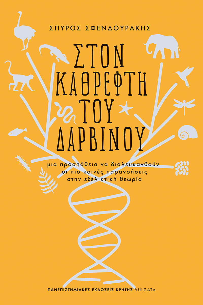 ΣΠΥΡΟΣ ΣΦΕΝΔΟΥΡΑΚΗΣ, «ΣΤΟΝ ΚΑΘΡΕΦΤΗ ΤΟΥ ΔΑΡΒΙΝΟΥ», εκδ. ΠΕΚ 2021. «Το δίκιο του ισχυρότερου! Αυτό μετράει και τίποτε άλλο! Το είπε και ο Δαρβίνος!» Πόσες μα πόσες φορές έχετε ακούσει αυτή την απληροφόρητη παραχάραξη της εξελικτικής θεωρίας; Πόσες μα πόσες φορές στο όνομα της φυσικής και βιολογικής εξέλιξης δεν ακούσατε επιχειρήματα εναντίον της επιστήμης και της διαφορετικότητας, κατά κύριο λόγο από αρνητές κάθε επιστήμης και θρησκόληπτους που ακόμη θεωρούν ότι κάποιος δικός τους θεός έφτιαξε τον κόσμο;