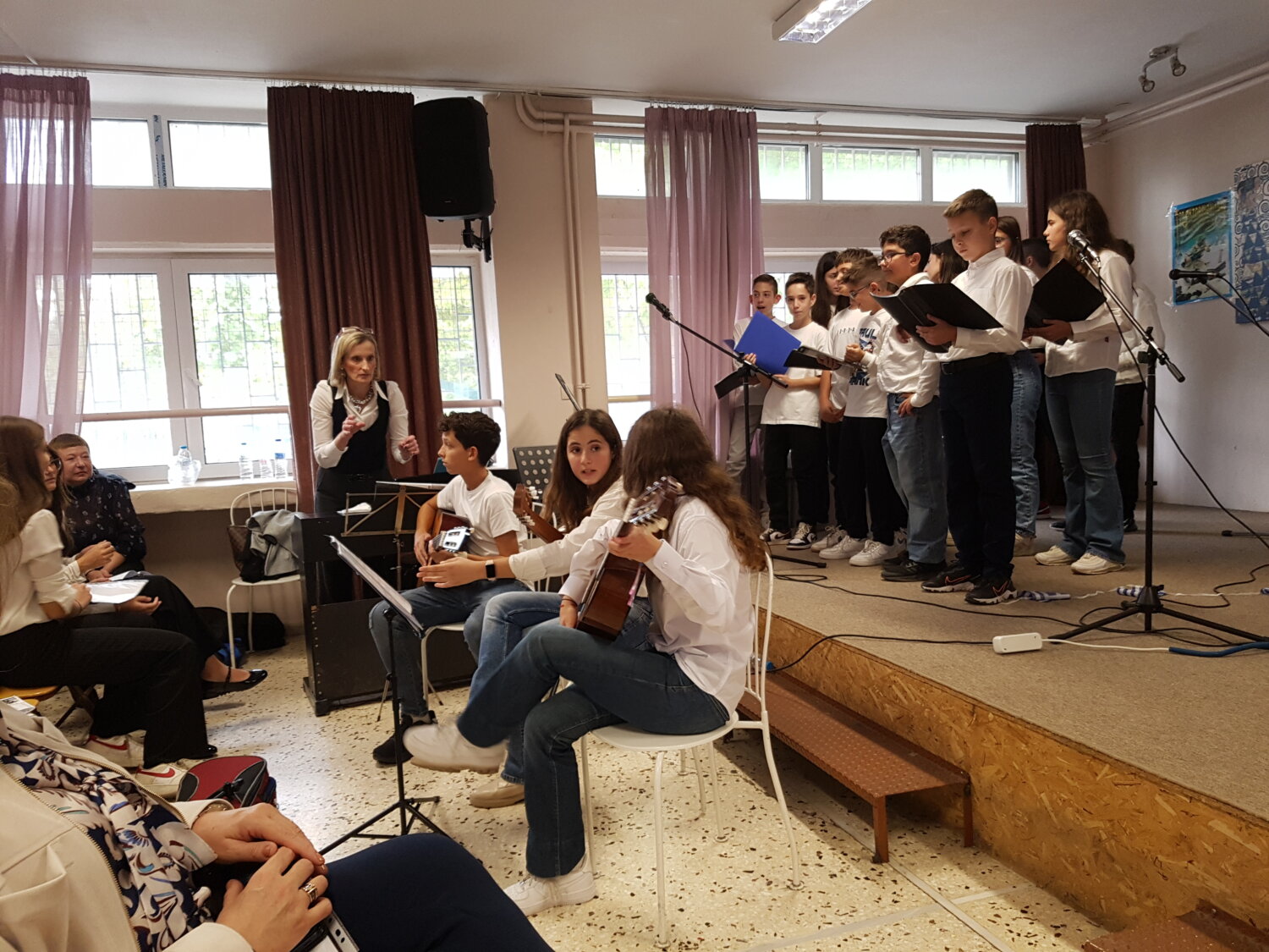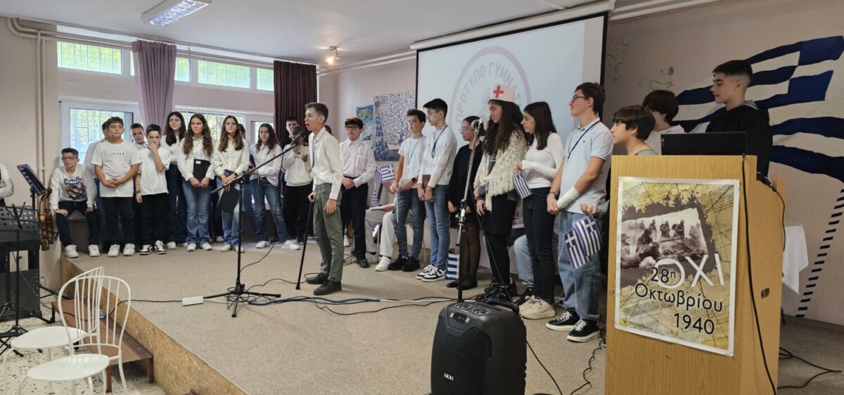 Οι μαθητές και οι μαθήτριες του σχολείου παρουσίασαν ένα εξαιρετικό μουσικό και καλλιτεχνικό πρόγραμμα, το οποίο περιλάμβανε πατριωτικά τραγούδια, απαγγελίες ποιημάτων, θεατρικά δρώμενα και αφηγήσεις Η εκδήλωση αποτέλεσε μια ουσιαστική υπενθύμιση των διαχρονικών αξιών της ελευθερίας, της ειρήνης και της δημοκρατίας.