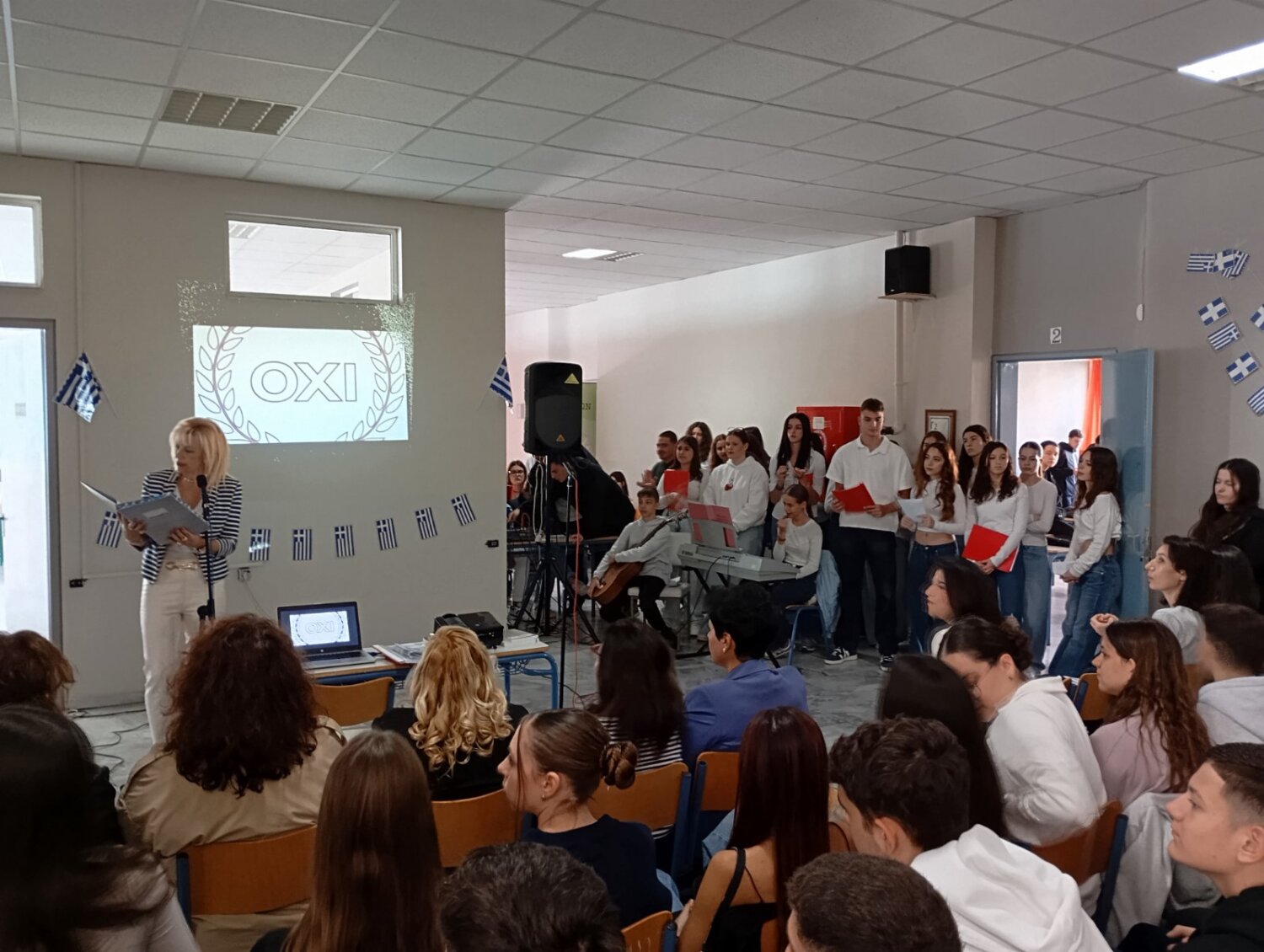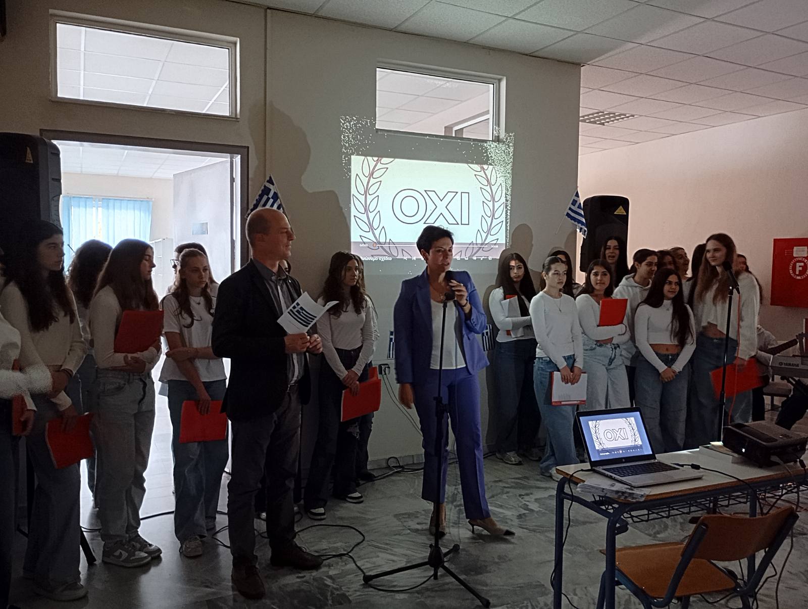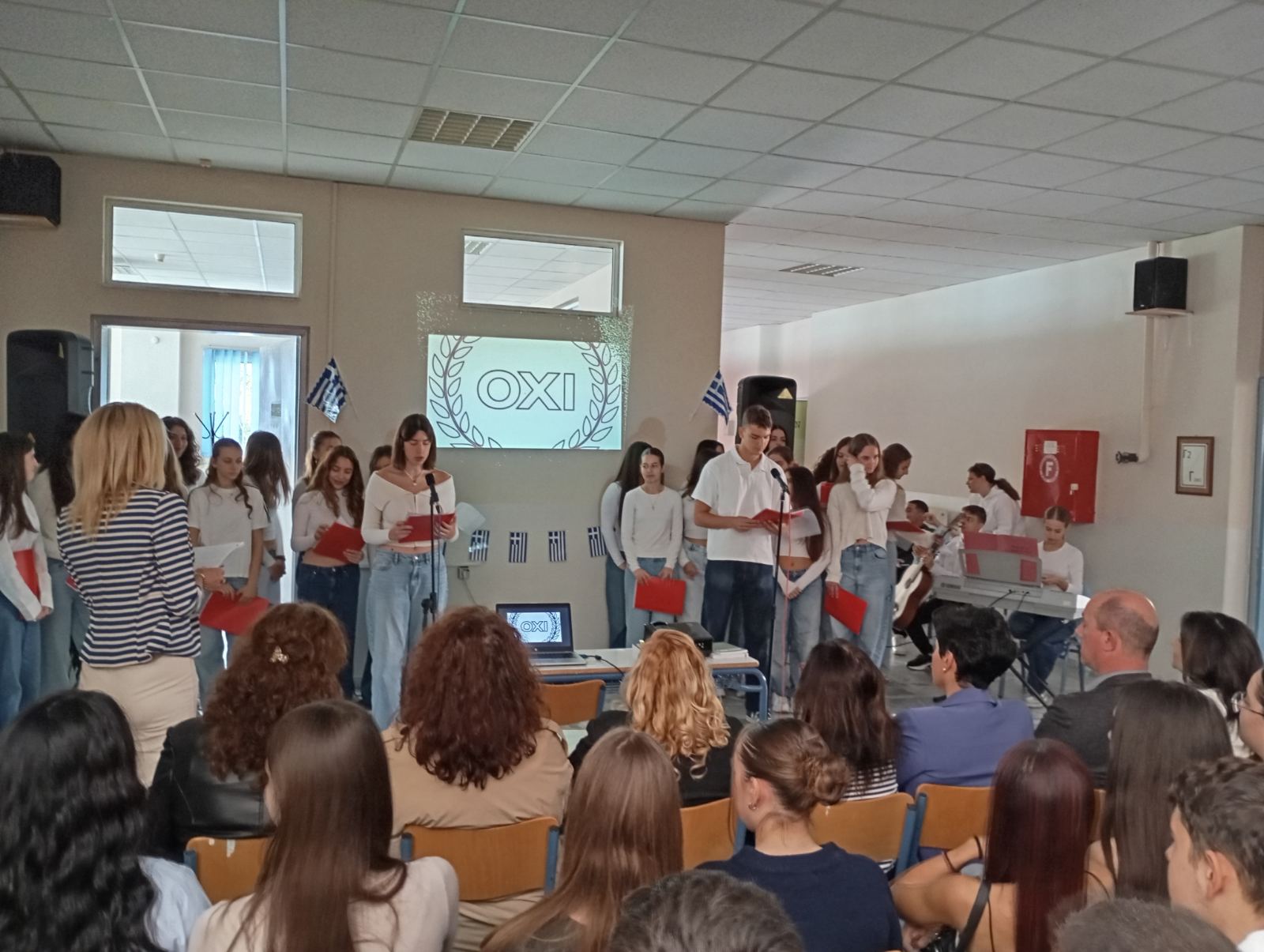 Με επιτυχία πραγματοποιήθηκε σήμερα στο 12ο ΓΕΛ Λάρισας η σχολική εκδήλωση για την 28η Οκτωβρίου.
