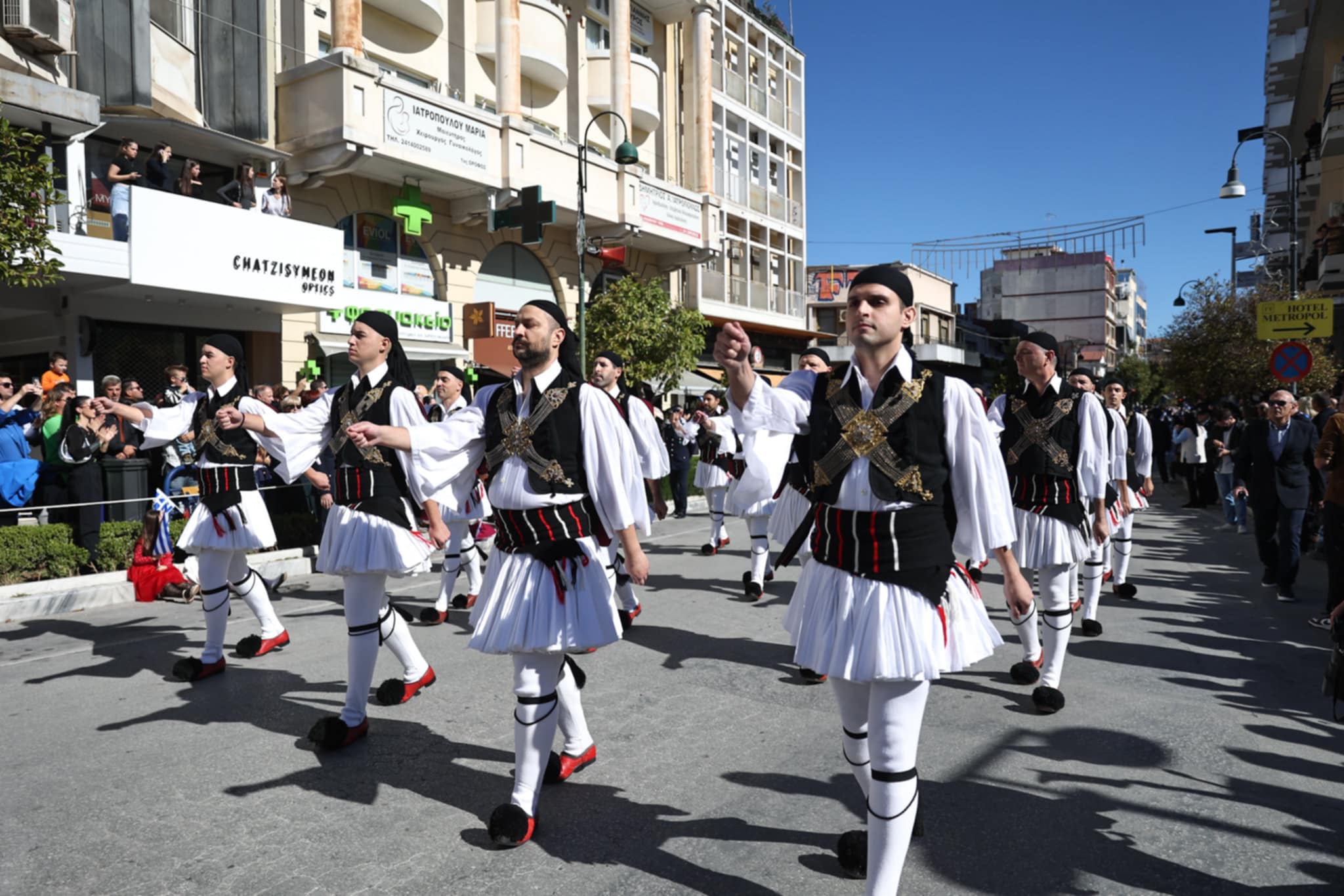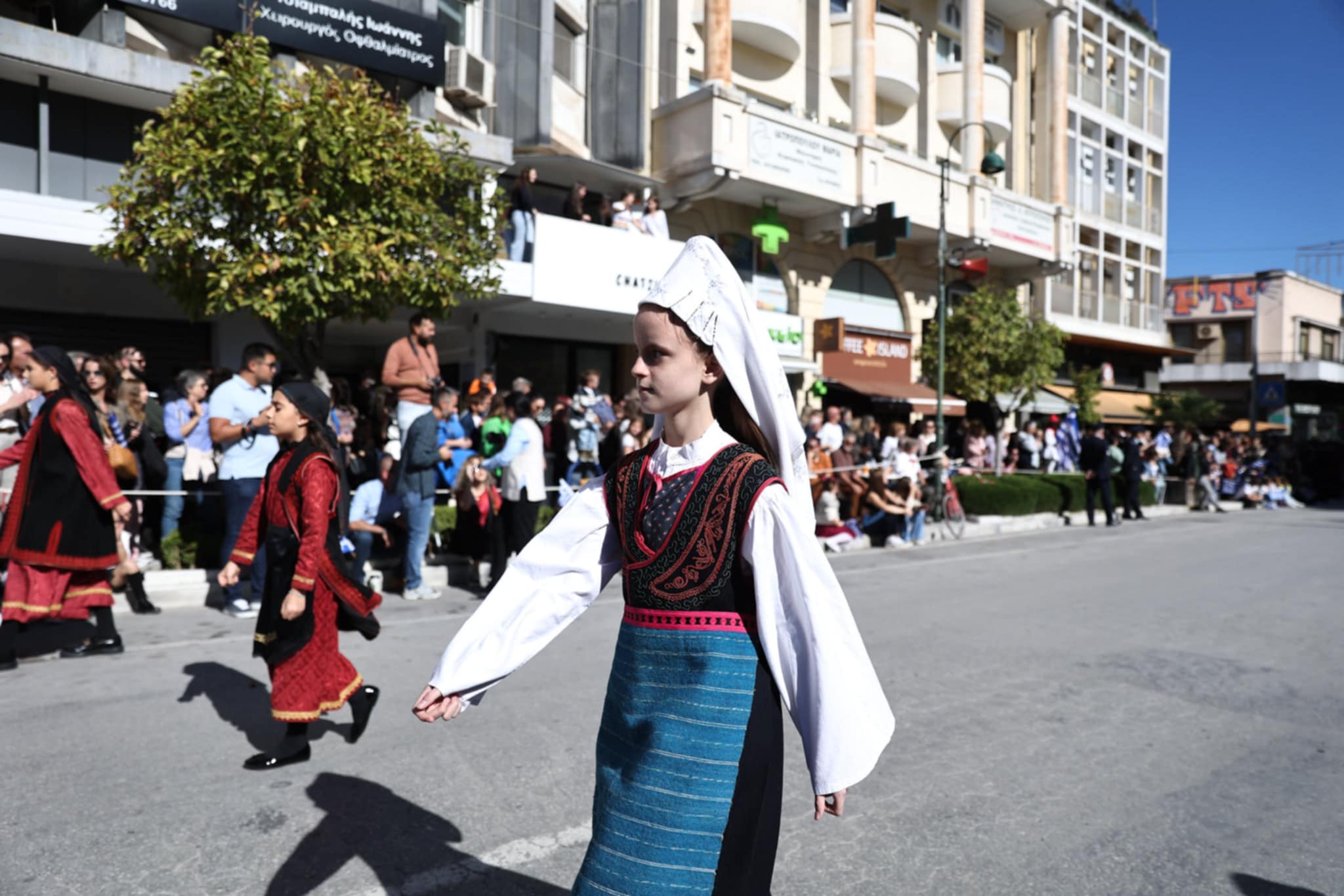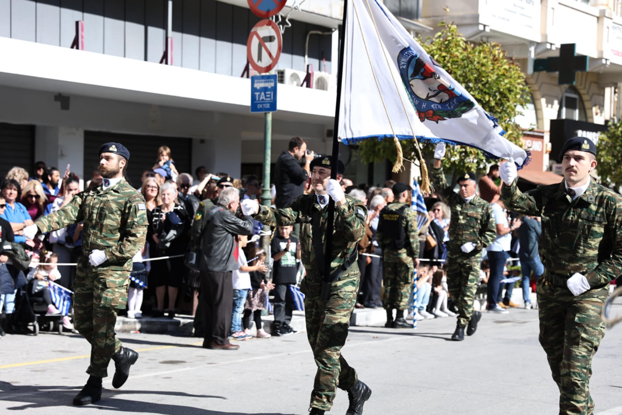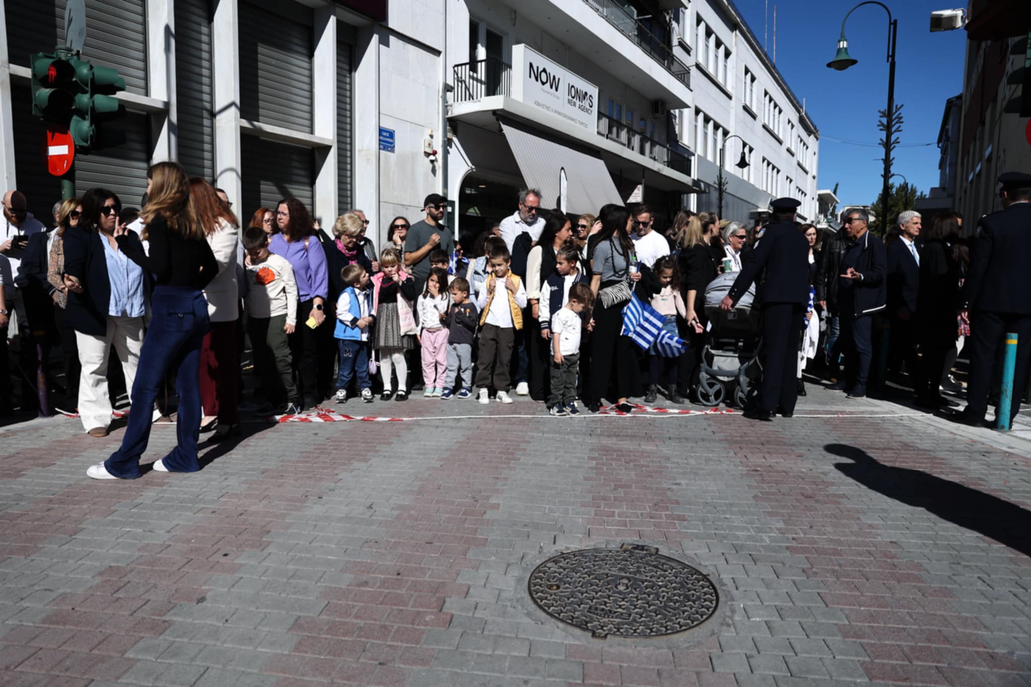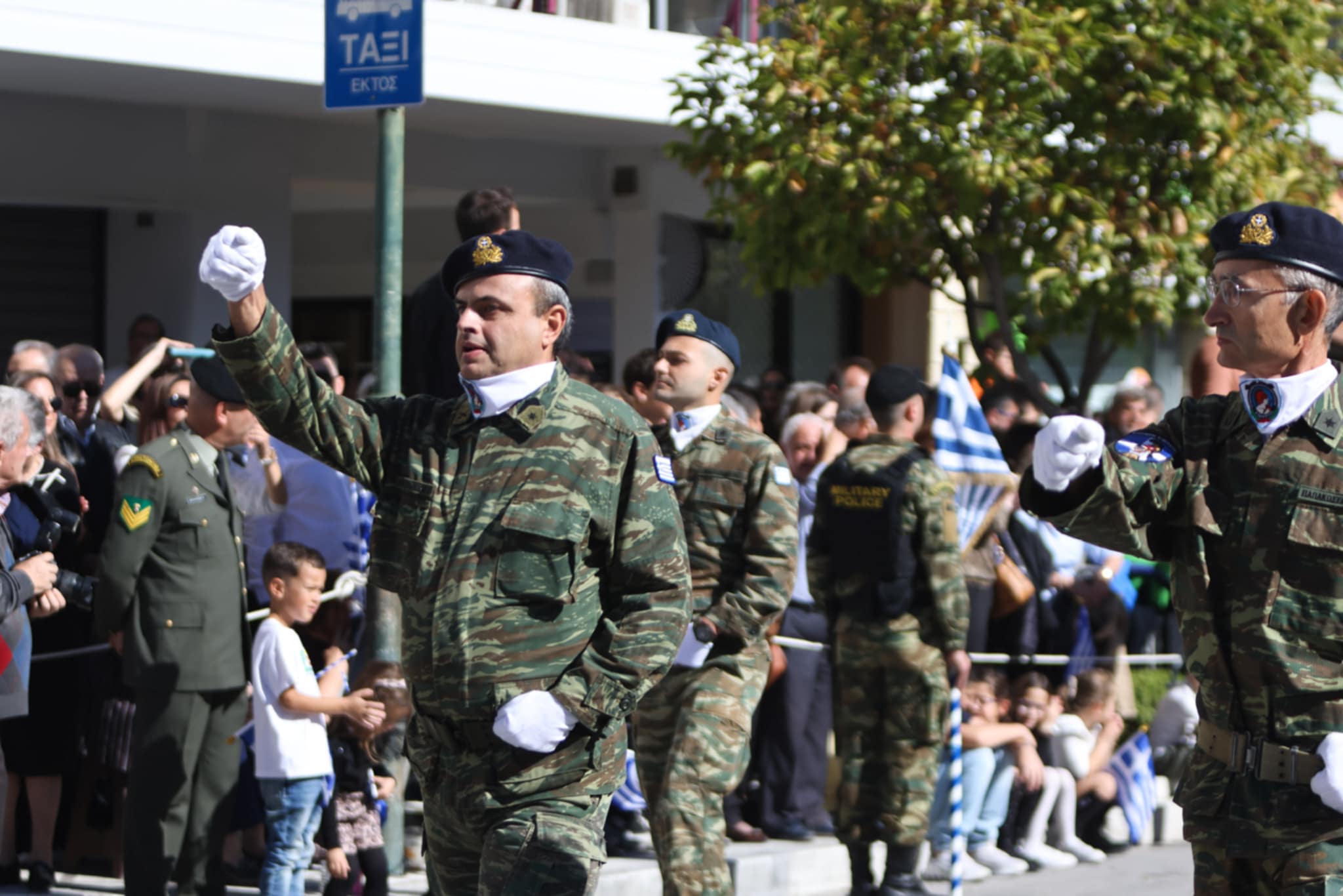 Πλήθος κόσμου έχει κατακλύσει την κεντρική πλατεία της Λάρισας και παρακολουθεί την παρέλαση.