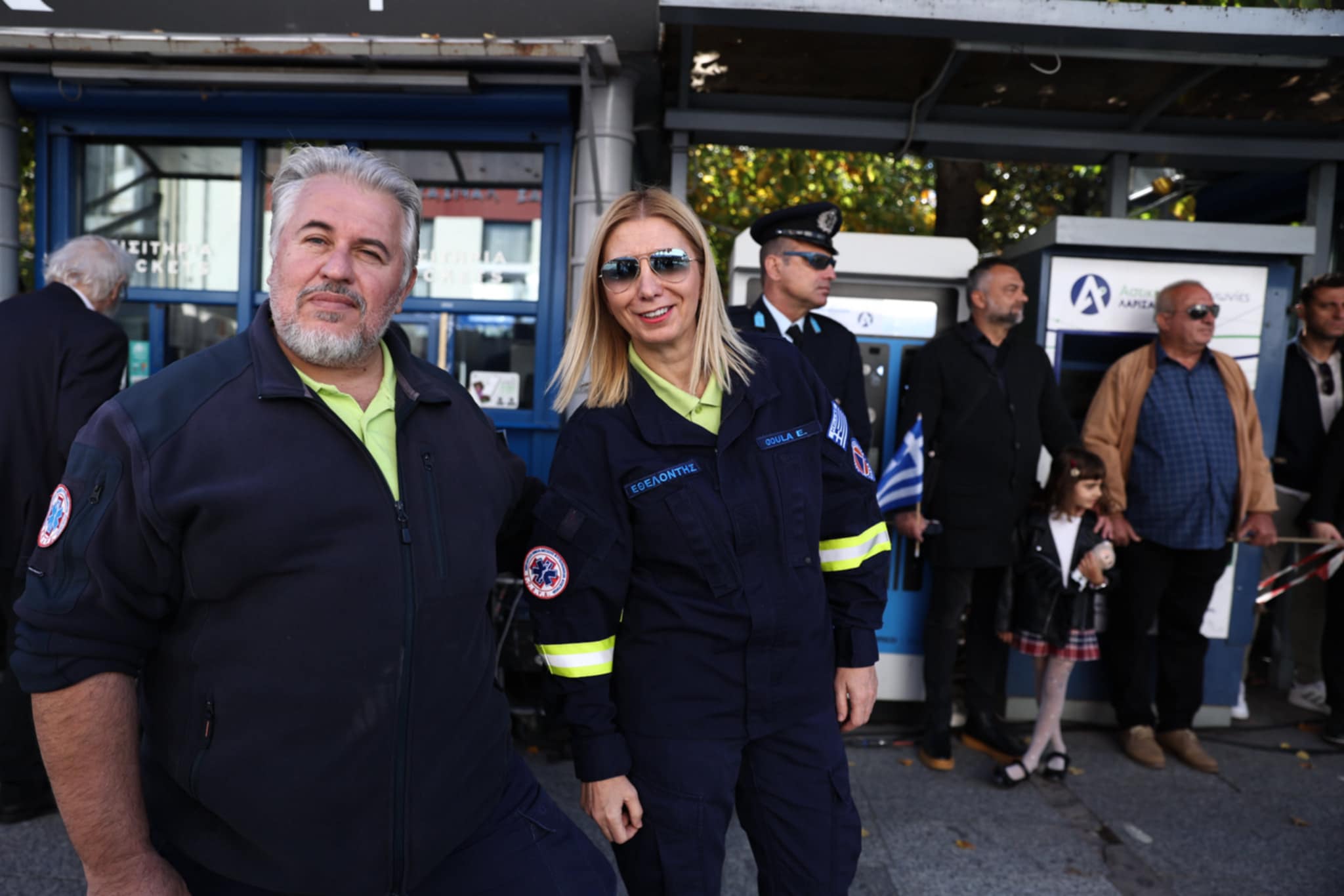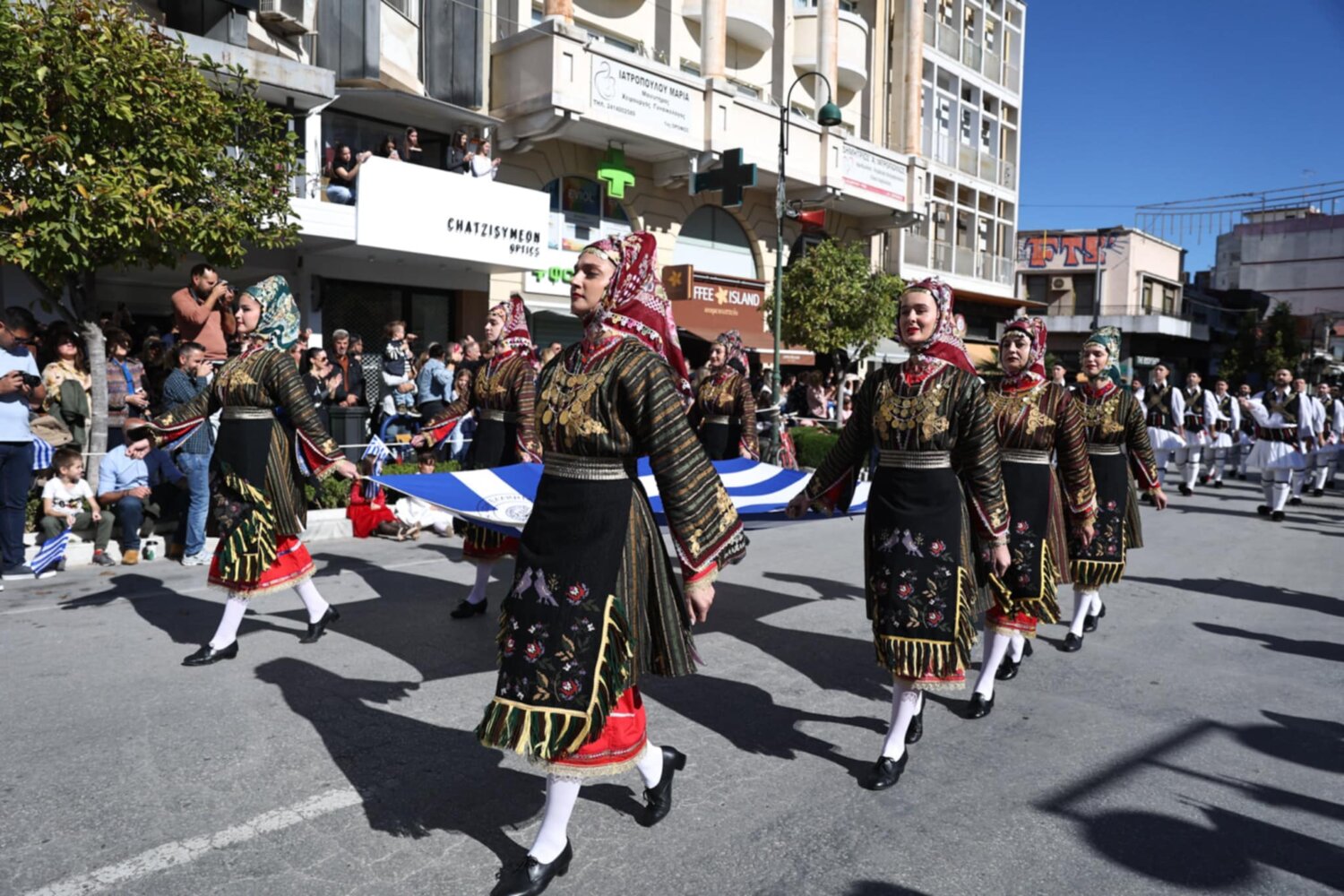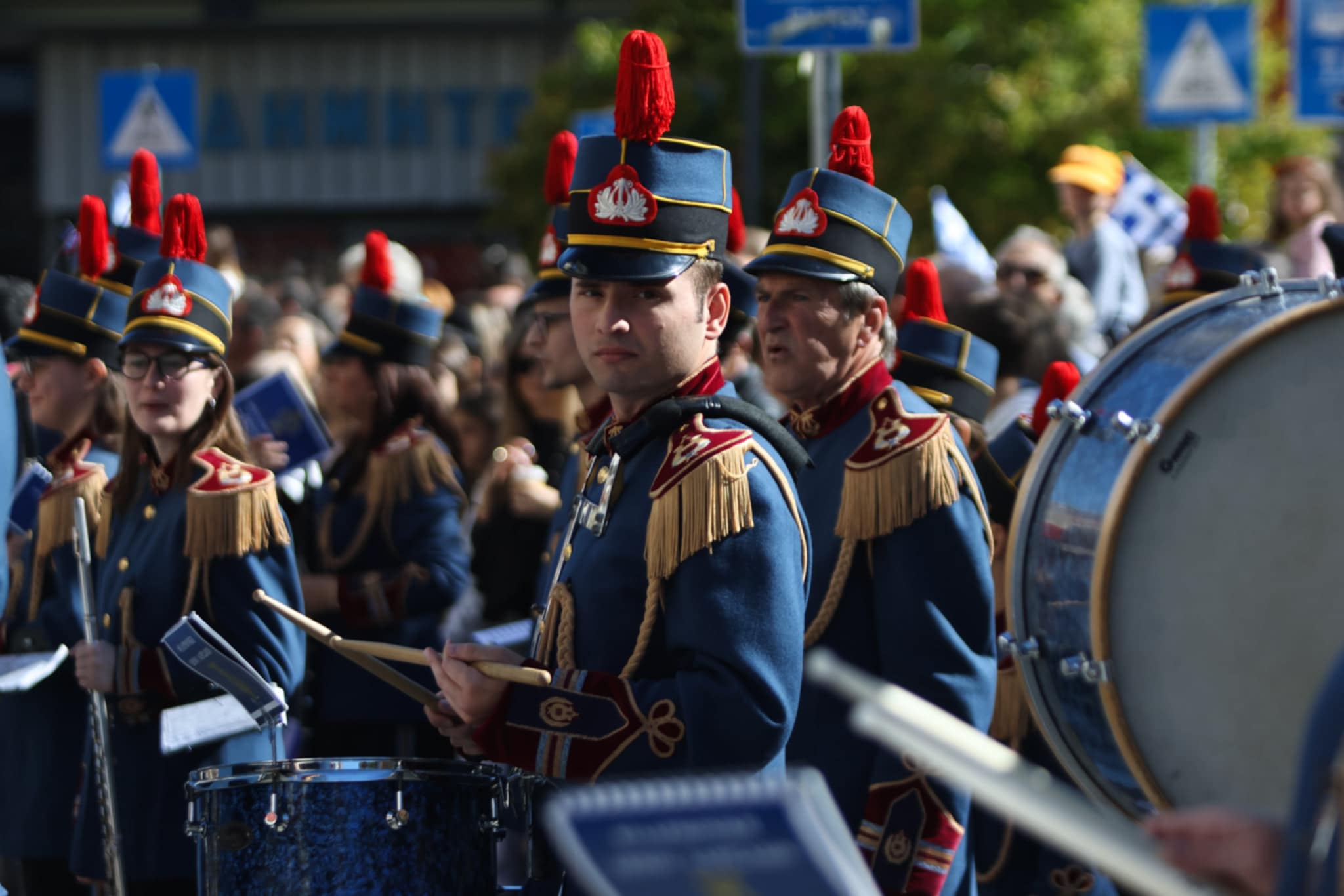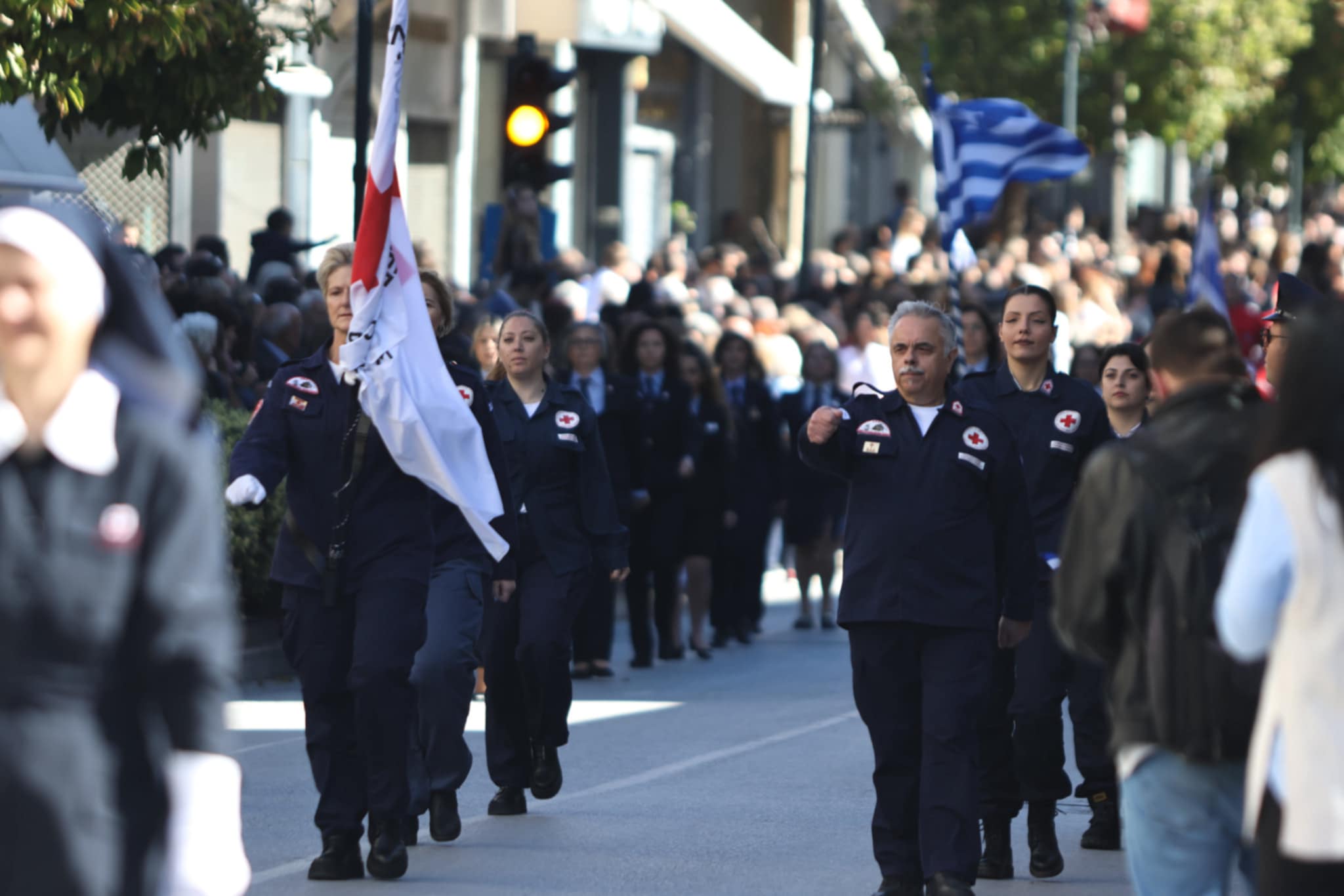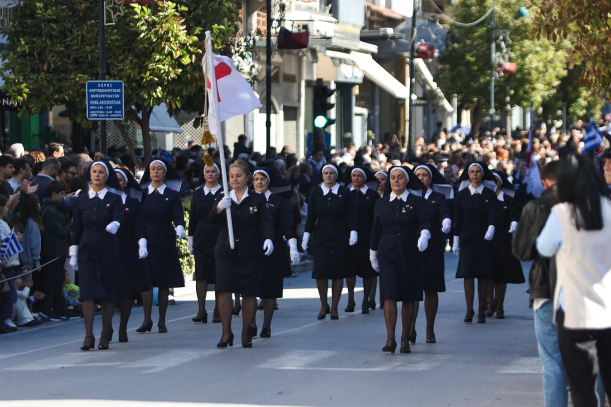 Πλήθος κόσμου έχει κατακλύσει την κεντρική πλατεία της Λάρισας και παρακολουθεί την παρέλαση.