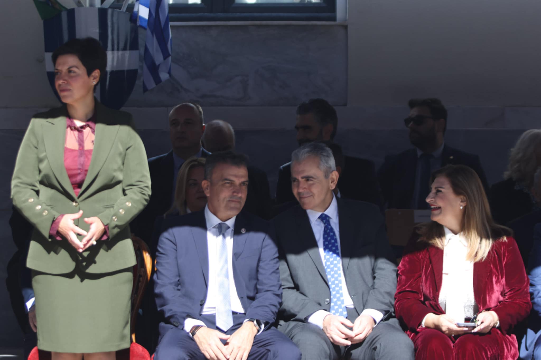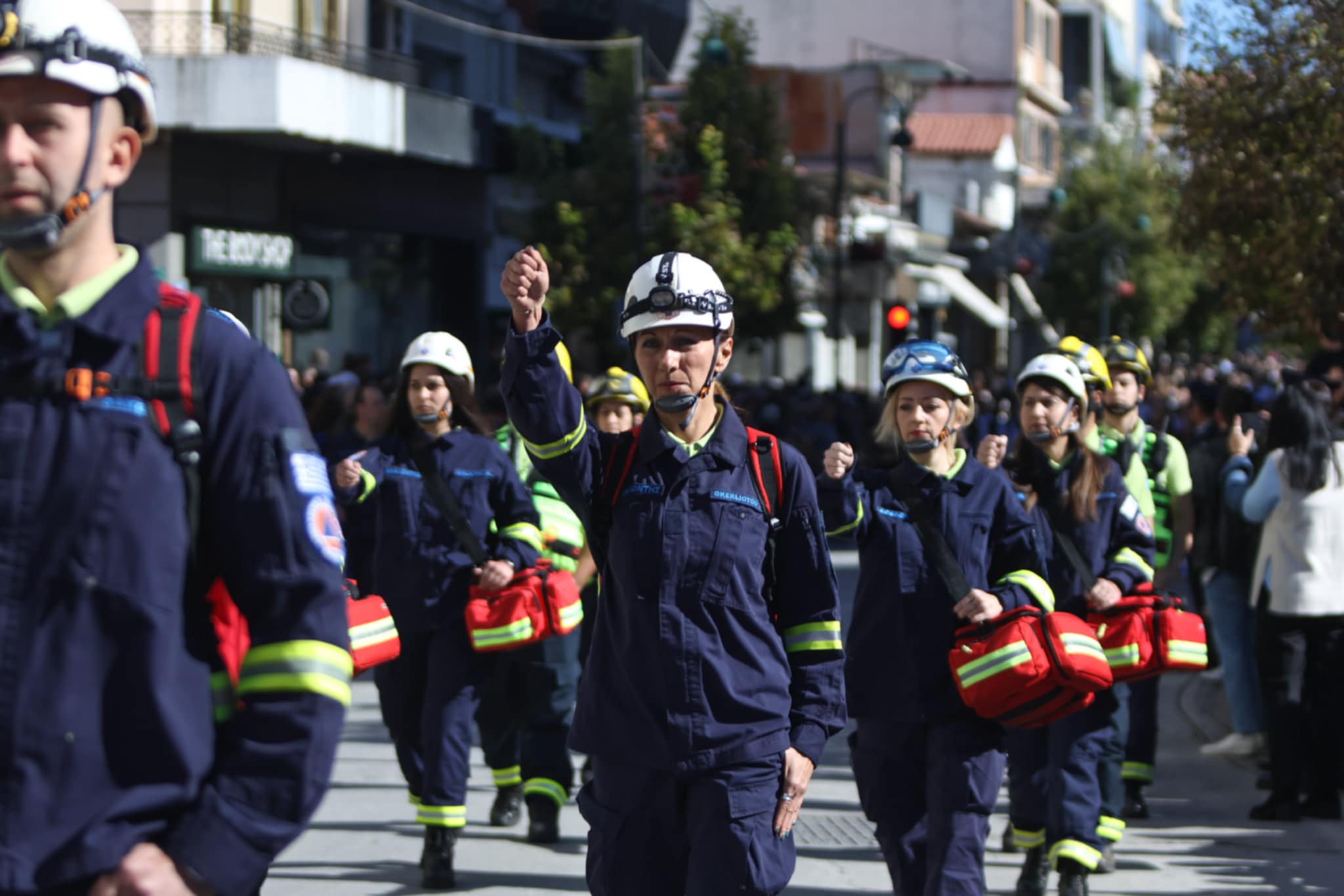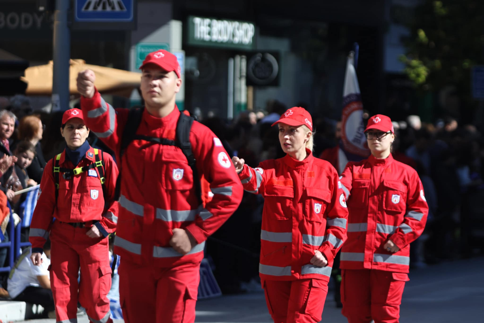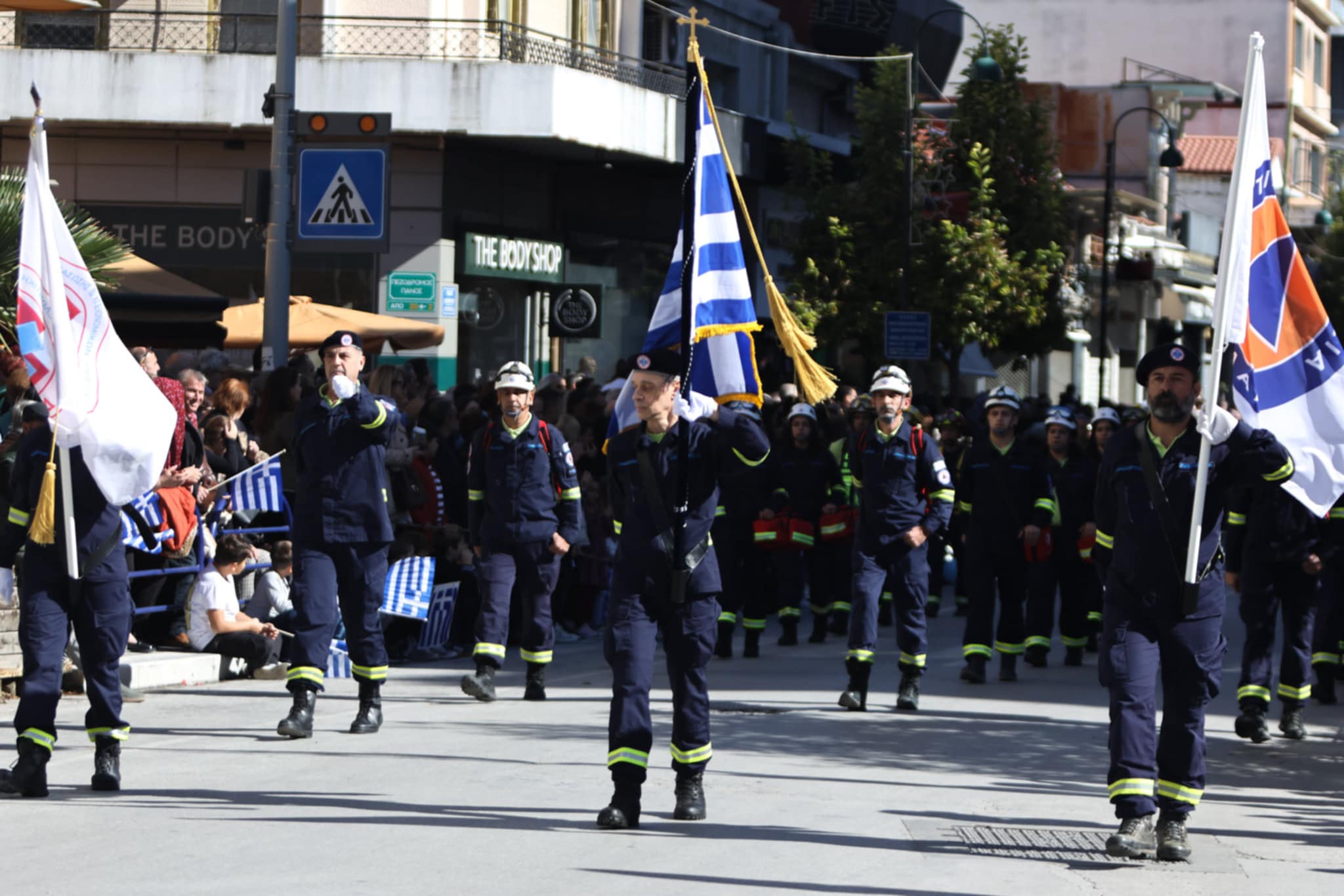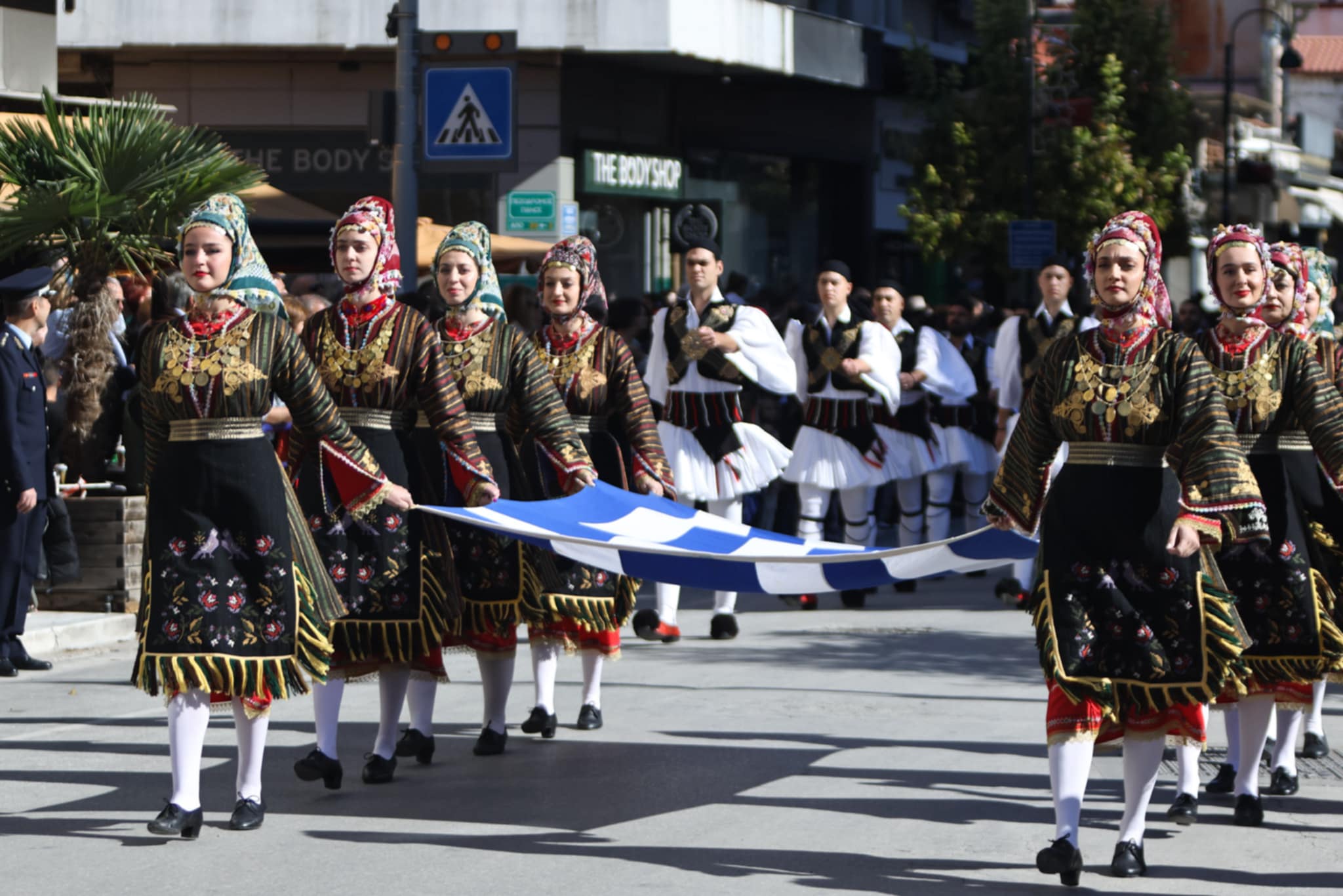 Πλήθος κόσμου έχει κατακλύσει την κεντρική πλατεία της Λάρισας και παρακολουθεί την παρέλαση.