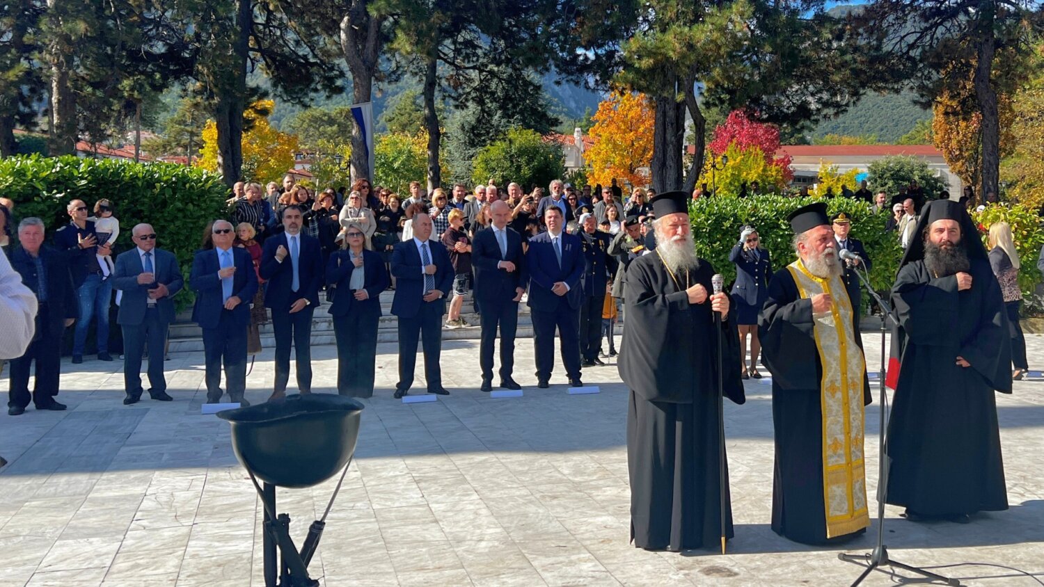 Στο μνημείο των Ηρώων, τελέστηκε επιμνημόσυνη δέηση στη μνήμη των ένδοξων πεσόντων νεκρών. Ακολούθησε κατάθεση στεφάνων από τον εκπρόσωπο της Κυβέρνησης, τον εκπρόσωπο της Βουλής, τον δήμαρχο Δίου-Ολύμπου, τον διοικητή της 24ης Τεθωρακισμένης Ταξιαρχίας Λιτοχώρου, την διοικητή του Α.Τ. Δίου-Ολύμπου, τον διοικητή της Πυροσβεστικής Υπηρεσίας Λιτοχώρου, τον πρόεδρο της δημοτικής κοινότητας Λιτοχώρου, εκπρόσωπο της Εθνικής Αντίστασης καθώς και από μαθητές ως εκπρόσωποι της πρωτοβάθμιας και δευτεροβάθμιας εκπαίδευσης. Αντίστοιχα σε κάθε κοινότητα κατατέθηκαν στεφάνια από εκπροσώπους του Δήμου, των Σωμάτων Ασφαλείας, τους προέδρους των δημοτικών κοινοτήτων και εκπροσώπους Α’θμιας-Β’θμιας εκπαίδευσης. Στο Λιτόχωρο τον πανηγυρικό λόγο εκφώνησε η εκπαιδευτικός Πολυξένη Καραστογιαννίδου.