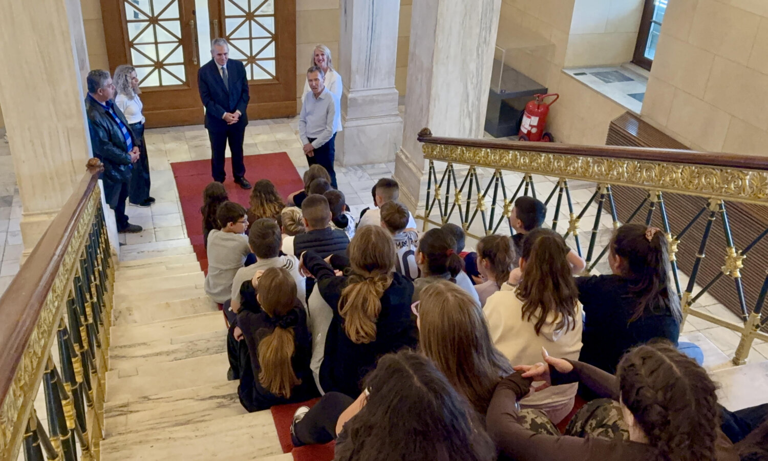 Τα παραπάνω τόνισε ο Γενικός Γραμματέας της Κοινοβουλευτικής Ομάδας της Νέας Δημοκρατίας, βουλευτής Λαρίσης, κ. Μάξιμος Χαρακόπουλος μιλώντας στις μαθήτριες και τους μαθητές του 14ου Δημοτικού Σχολείου Λάρισας που πραγματοποίησαν εκπαιδευτική επίσκεψη στο κτίριο της Βουλής.