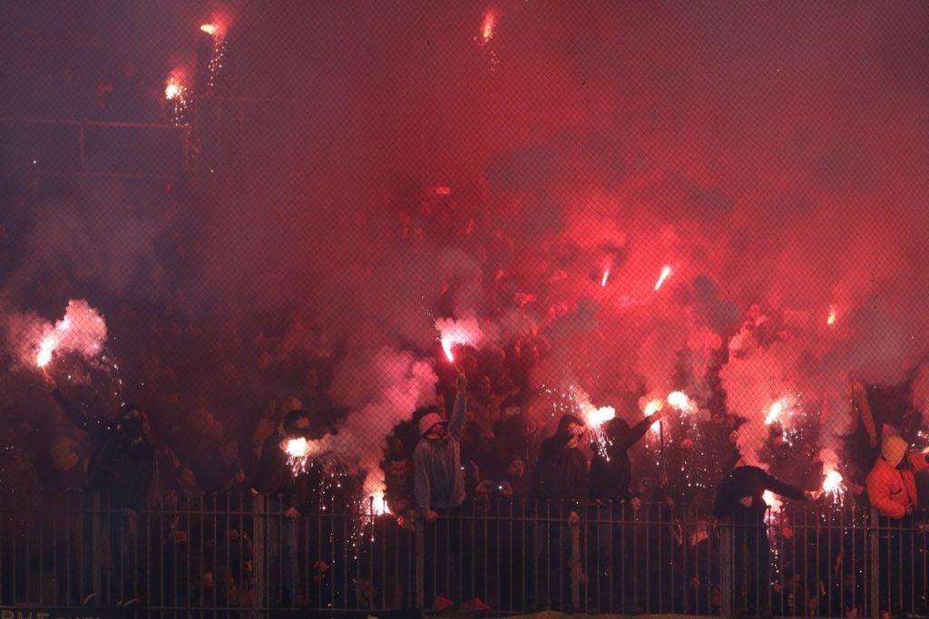 Ειδικότερα, ο 49χρονος εντοπίστηκε κατά τη διάρκεια του ποδοσφαιρικού αγώνα, μέσω του κλειστού κυκλώματος ασφαλείας του γηπέδου, να παραδίδει στον ανήλικο γιο του, ηλικίας κάτω των 12 ετών, δύο φωτοβολίδες χειρός, τις οποίες ενεργοποίησε ο ανήλικος.