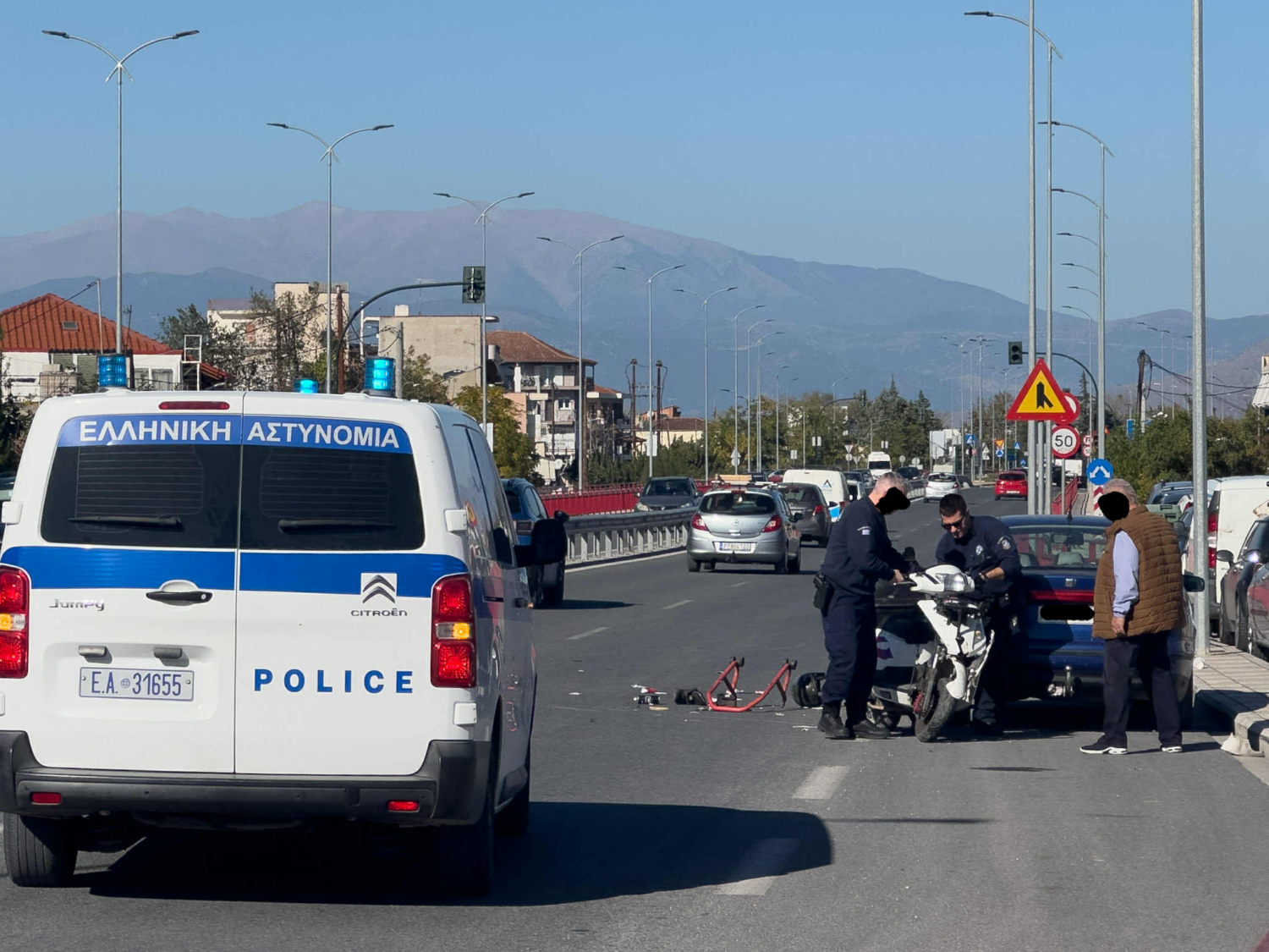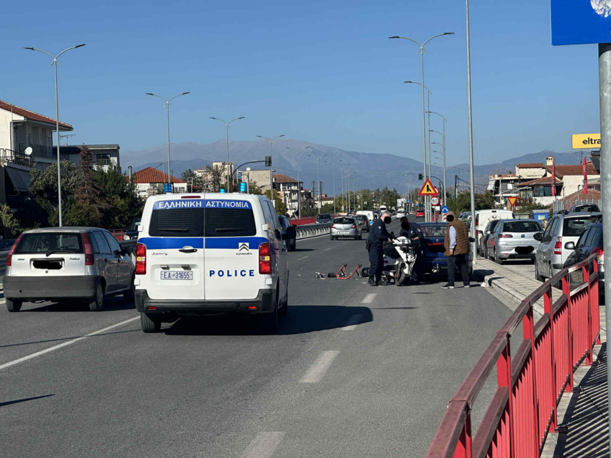 Τροχαίο ατύχημα έγινε το μεσημέρι της Τετάρτης επί της λεωφόρου Καραμανλή, κοντά στον κυκλικό κόμβο όπου είναι η διασταύρωση με την οδό Ερετρίας, στην πόλη της Λάρισας.