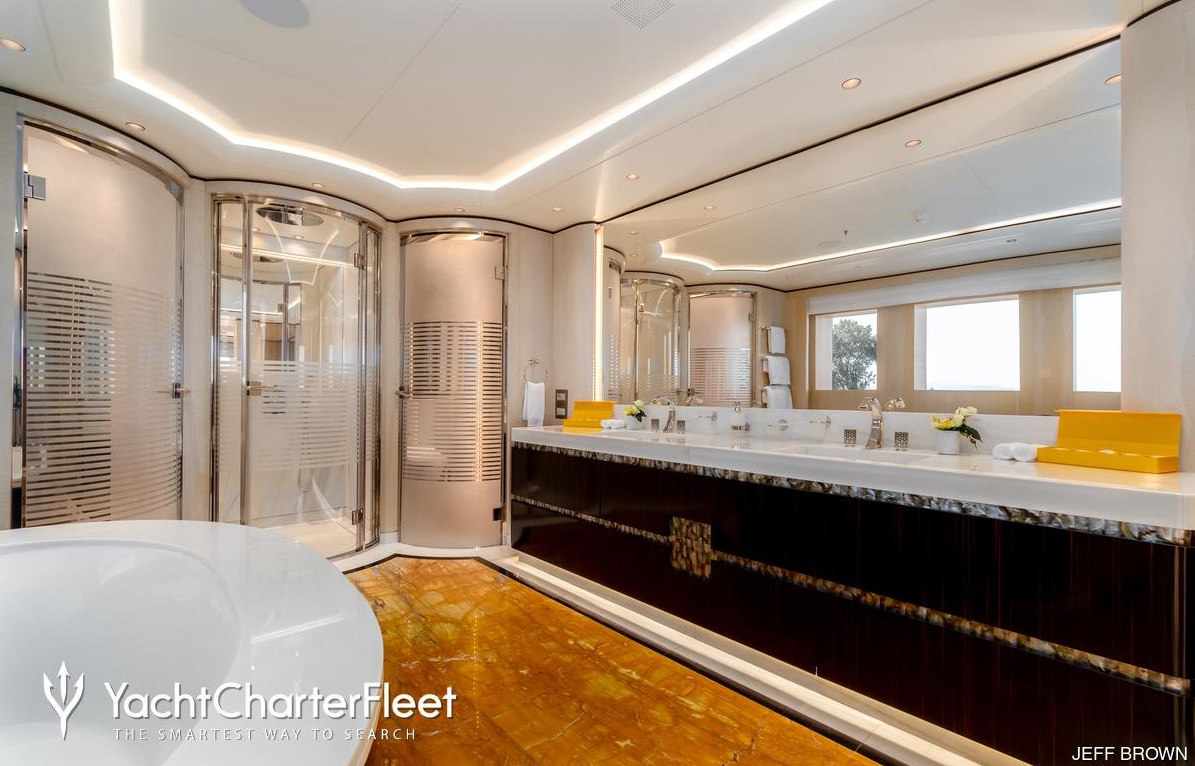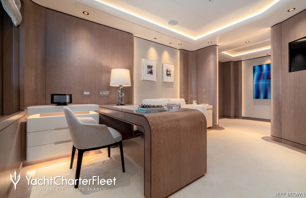 Οι εσωτερικοί του χώροι θυμίζουν πεντάστερο θέρετρο: σαλόνια υψηλής αισθητικής, σουίτες με πανοραμική θέα, σπα, κινηματογράφο και υπερσύγχρονες ανέσεις που ικανοποιούν και τον πιο απαιτητικό επισκέπτη. Όλα έχουν σχεδιαστεί ώστε να προσφέρουν τη μέγιστη εμπειρία τόσο στη θάλασσα όσο και κατά τη στάθμευση στο λιμάνι.