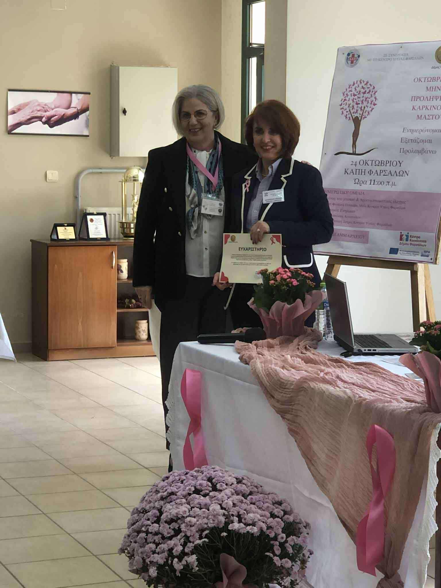 Με μεγάλη επιτυχία πραγματοποιήθηκε η ενημερωτική ομιλία «Καρκίνος του μαστού – Προσυμπτωματικός έλεγχος» και «Εμβολιασμός Ενηλίκων» που διοργάνωσε το ΚΕΠ Υγείας και το Κέντρο Κοινότητας του Δήμου Φαρσάλων σε συνεργασία με το Κέντρο Υγείας Φαρσάλων.