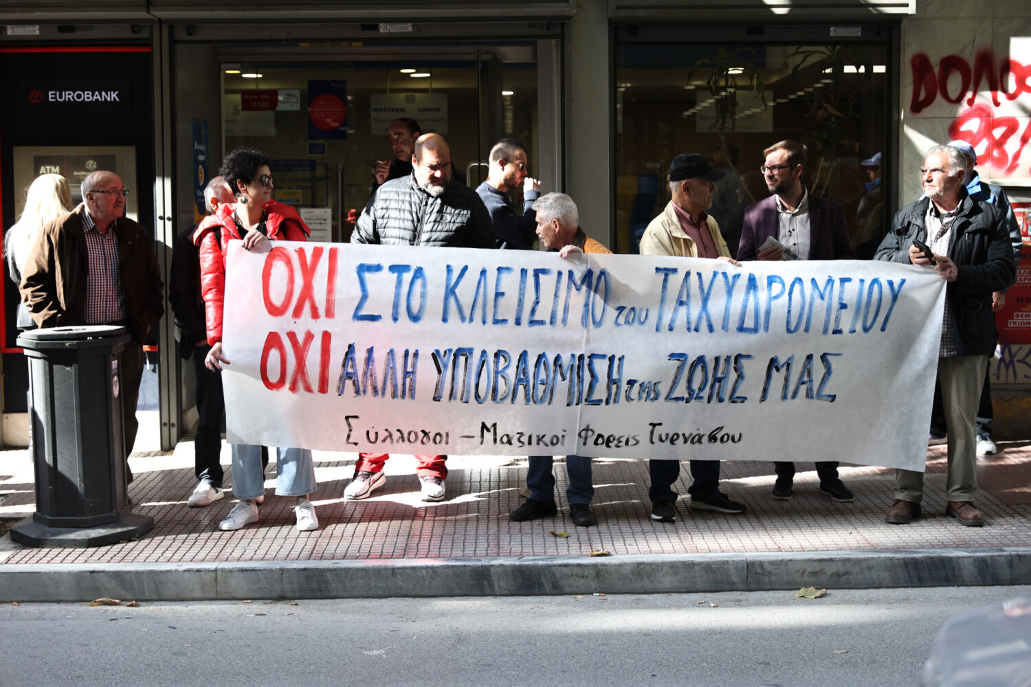 Στην Π.Ε. Λάρισας «λουκέτο» αναμένεται να μπει στα καταστήματα των Τυρνάβου, Αγιάς, Συκουρίου και προστίθενται στα συνολικά 204 που αναμένεται να κλείσουν. Έτσι το πρωί της Παρασκευής έξω από το κεντρικό κατάστημα της Λάρισας πραγματοποιήθηκε διαμαρτυρία, καθώς όπως τονίζουν οι πολίτες των περιοχών αυτών μεγάλες περιοχές θα μείνουν χωρίς ταχυδρομική και τραπεζική κάλυψη, με χτύπημα των εργασιακών δικαιωμάτων των εργαζομένων.