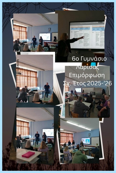 Την Τετάρτη 22 Οκτωβρίου 2025, πραγματοποιήθηκε επιμορφωτική ενημερωτική συνάντηση με την κ. Νάτση Χάιδω – Σύμβουλος Εκπαίδευσης Γαλλικής & Γενικής Παιδαγωγικής Ευθύνης και τον Σύλλογο Διδασκόντων και Διδασκουσών του 6ου Γυμνασίου Λάρισας.