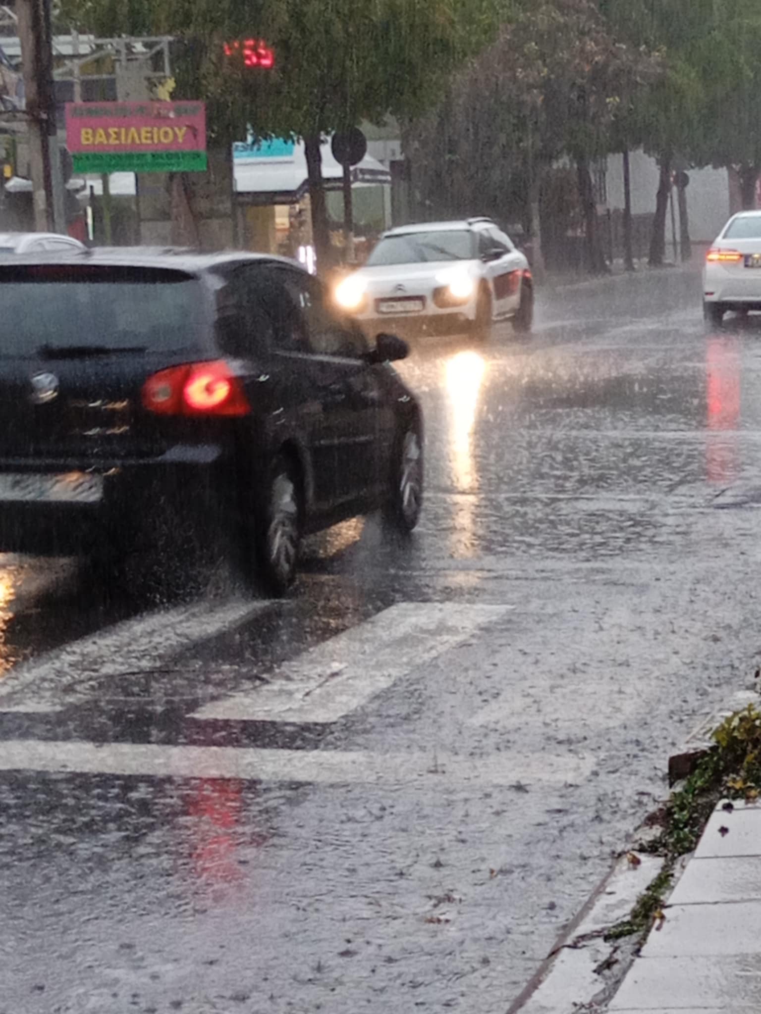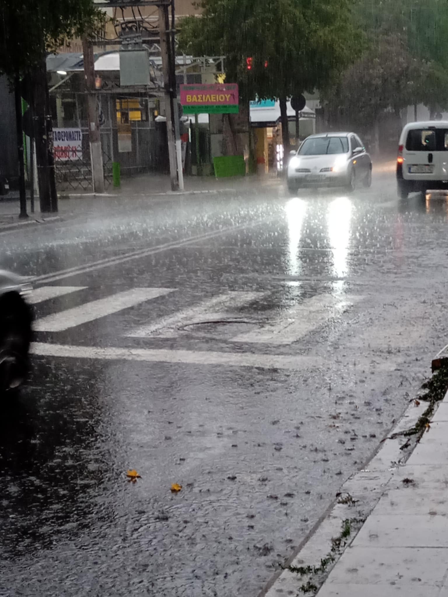 Έτσι στη Λάρισα, λίγο μετά τις 3.00 το μεσημέρι ο ουρανός… σκοτείνιασε και άνοιξε τους… κρουνούς του, με δυνατή βροχή.