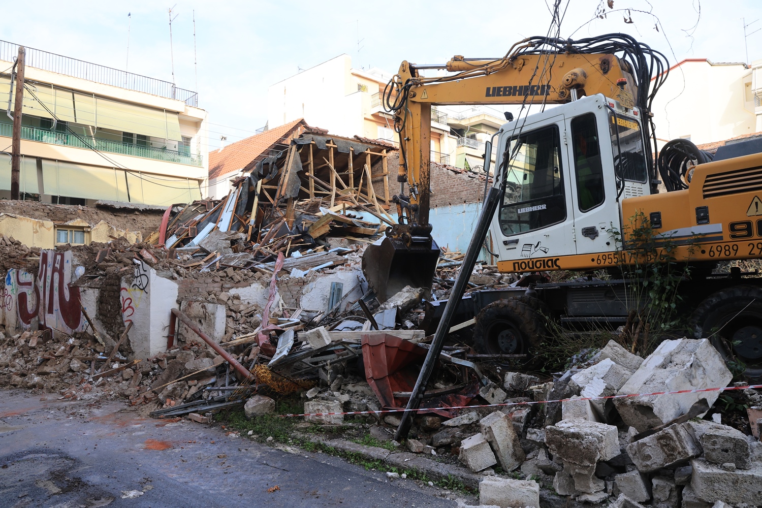 Με εντατικούς ρυθμούς συνεχίζεται το πρόγραμμα κατεδαφίσεων επικίνδυνων κτιρίων στην περιοχή ευθύνης του Δήμου Λαρισαίων, με παρέμβαση σε κτίριο επί της οδού Σκουφά, στη Λάρισα, που κατεδαφίστηκε χθες. Στο σημείο εκτέλεσης των εργασιών βρέθηκαν οι Αντιδήμαρχοι Τεχνικών Υπηρεσιών, κ. Χρήστος Τερζούδης και Πολεοδομίας, κ. Ανδρέας Ανδριτσόπουλος.
