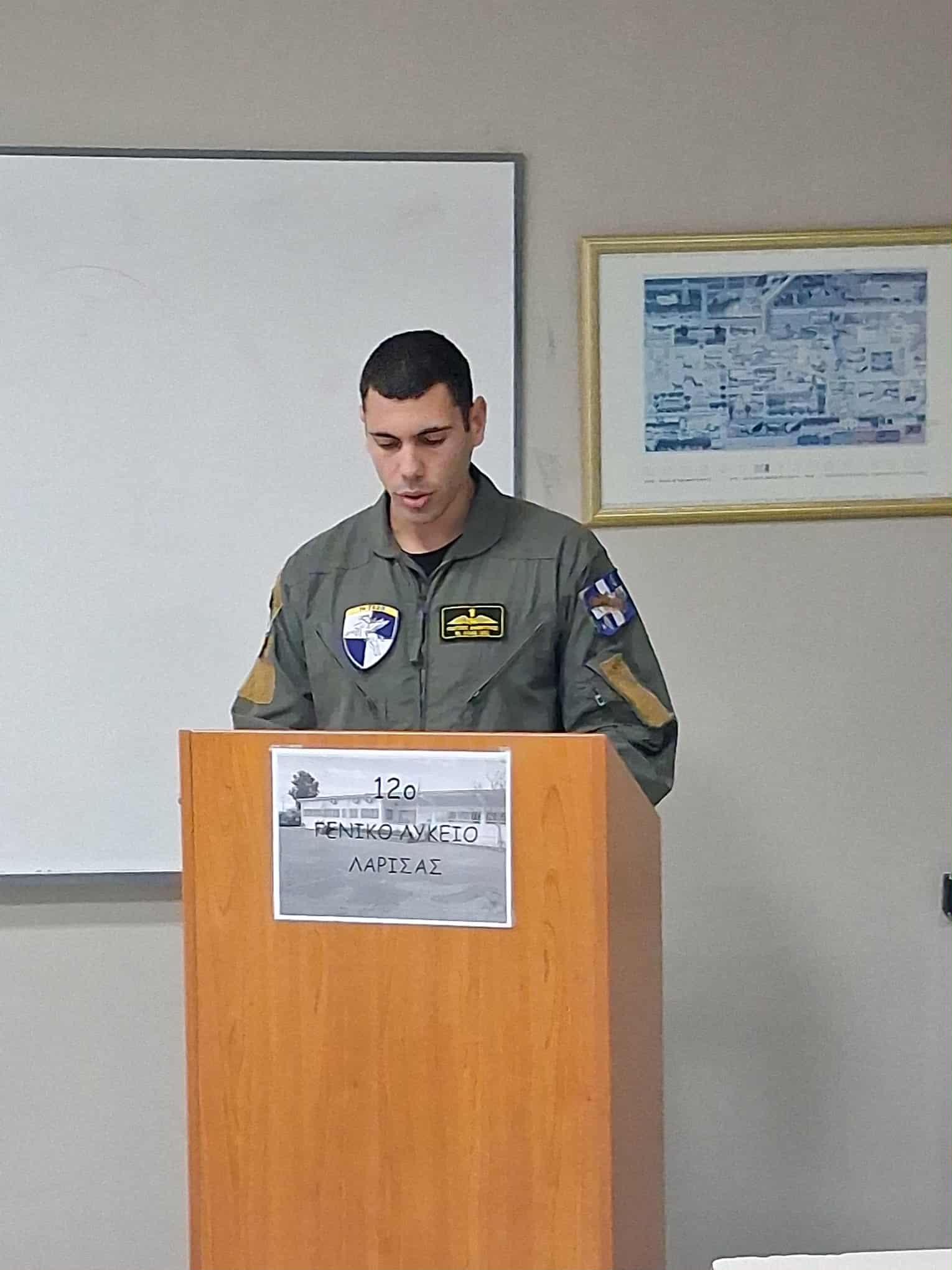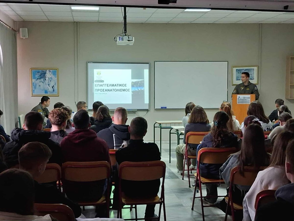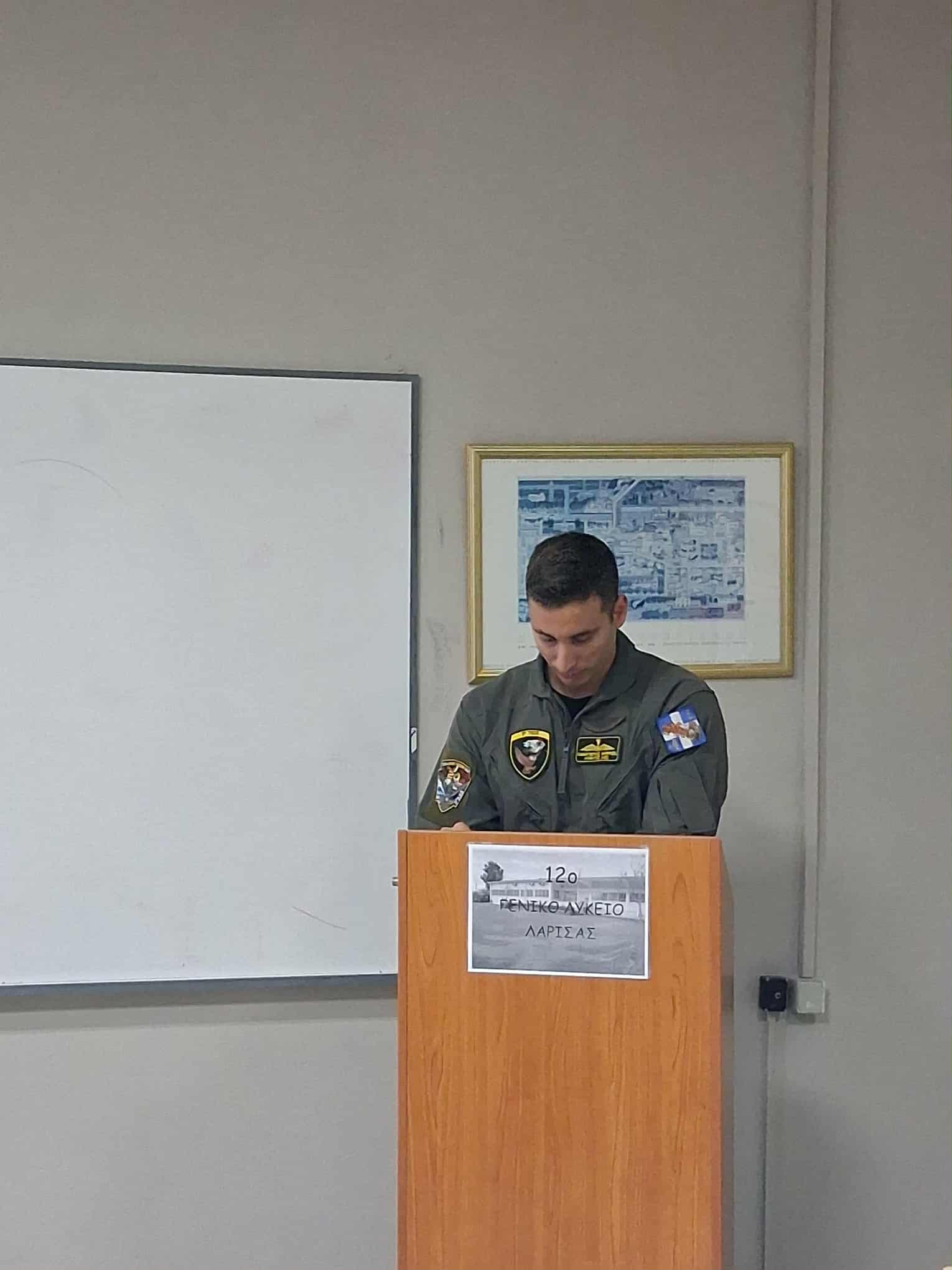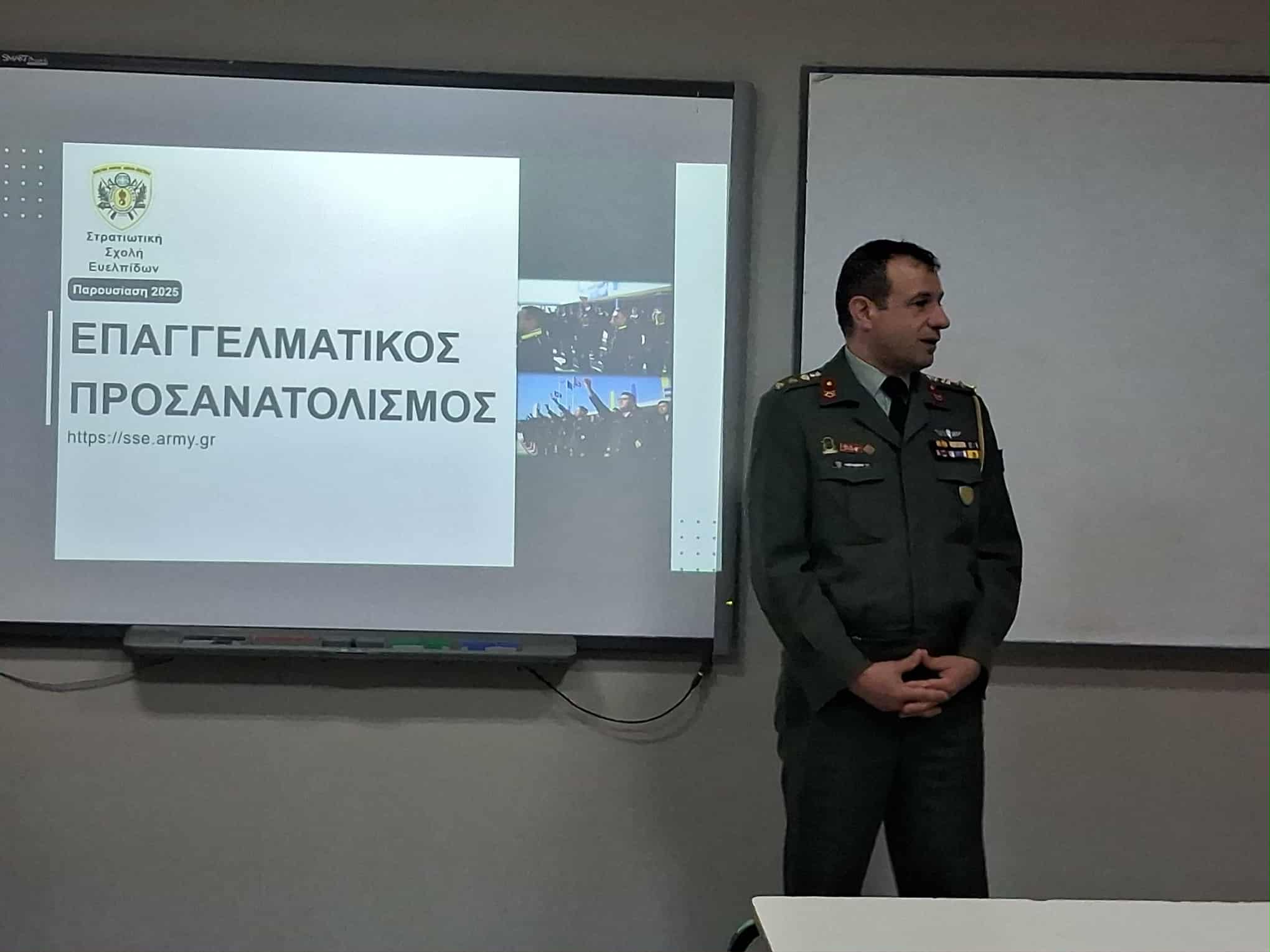 Την Τετάρτη 5 Νοεμβρίου η Β΄ τάξη του12ο ΓΕΛ Λάρισας στο πλαίσιο του επαγγελματικού προσανατολισμού, ενημερώθηκε από εκπροσώπους της 1ης Στρατιάς και της 1ης ΤΑΞΑΣ για τις προοπτικές που δημιουργούνται με την είσοδό τους στις Στρατιωτικές Σχολές Τριτοβάθμιας Εκπαίδευσης (Στρατιωτική Σχολή Ευελπίδων, Σχολή Μονίμων Υπαξιωματικών) και τη σταδιοδρομία τους ως Στελέχη του Στρατού Ξηράς.