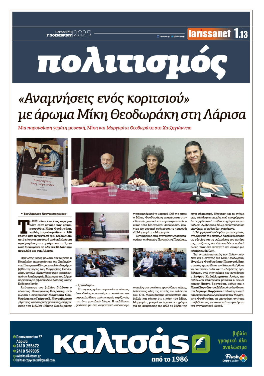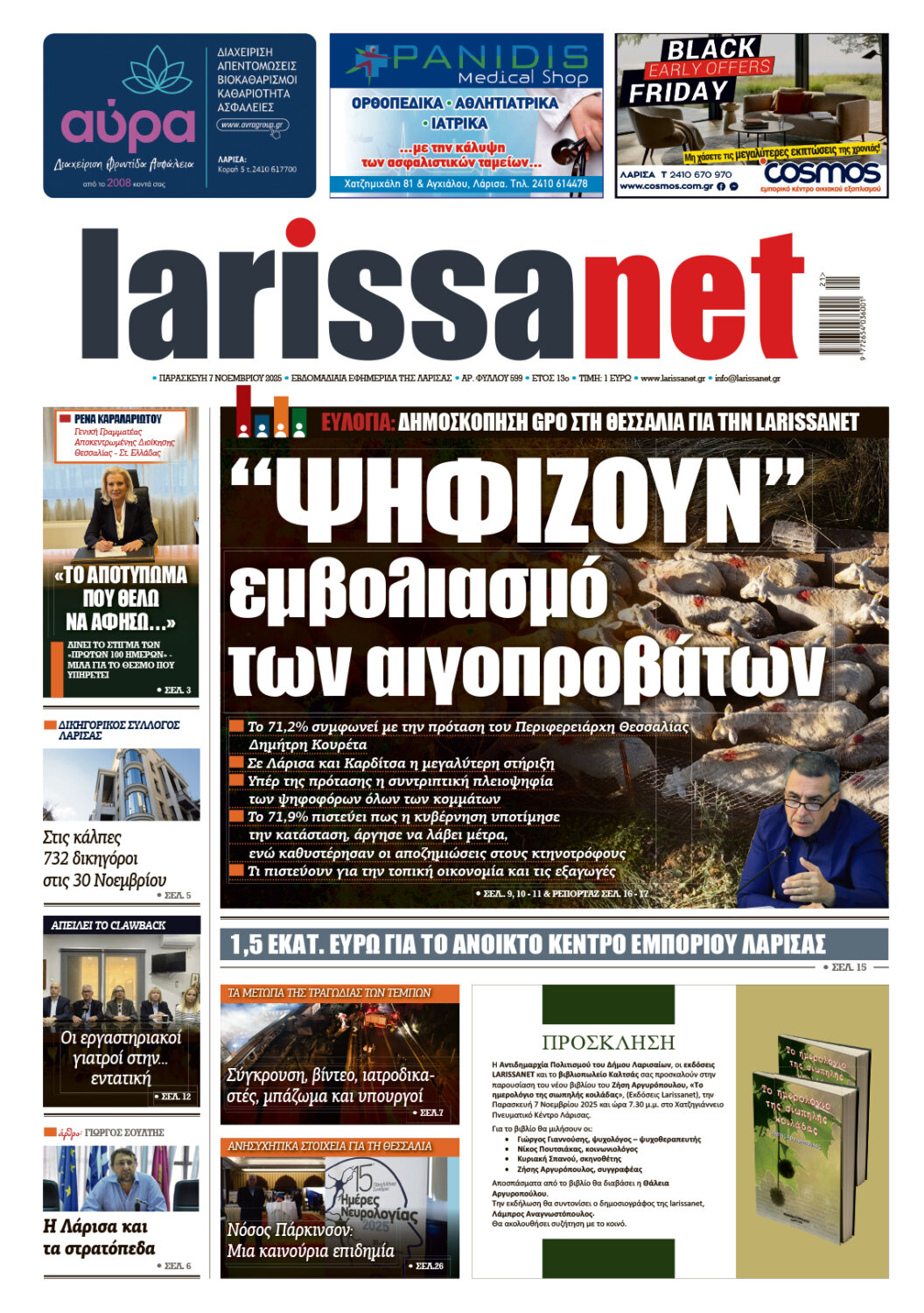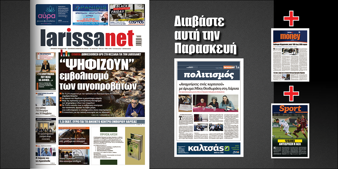 Ρεπορτάζ, άρθρα, συνεντεύξεις και όλο το παρασκήνιο της εβδομάδας στο νέο φύλλο της larissanet.