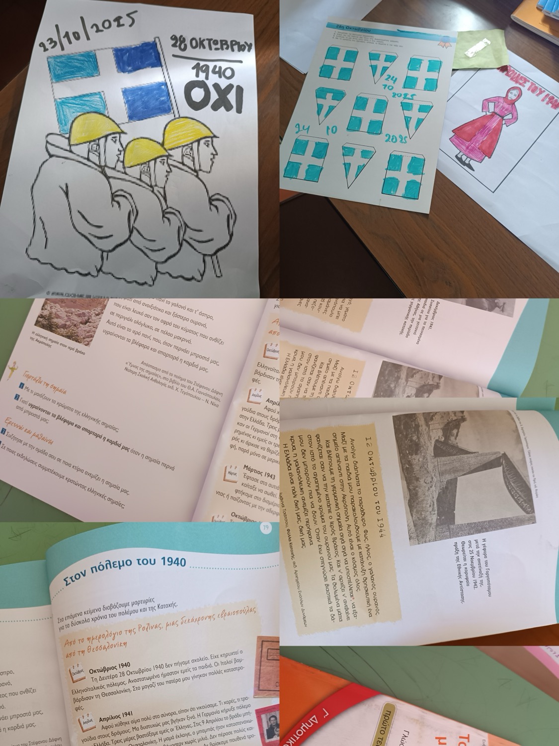 Από τις 20/10 έως τις 24/10 τα παιδιά με τη βοήθεια της δασκάλας διαπολιτισμικής εκπαίδευσης έκαναν πρόβες για να μάθουν τα ποιήματα τους για τη σχολική γιορτή, διάβασαν κείμενα που αναφέρονται στο έπος του 1940, ζωγράφισαν εικόνες.
