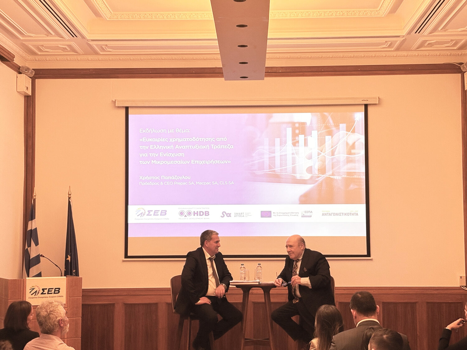 Τις ευκαιρίες χρηματοδότησης για τις ελληνικές μικρομεσαίες Επιχειρήσεις παρουσίασαν ο ΣΕΒ και η Ελληνική Αναπτυξιακή Τράπεζα σε εκδήλωση που συνδιοργάνωσαν, χθες, Τετάρτη 5 Νοεμβρίου 2025. Στην εκδήλωση, η οποία προσέλκυσε το ενδιαφέρον μεγάλου αριθμού ΜμΕ, οι επιχειρήσεις ενημερώθηκαν σχετικά με τα διαθέσιμα χρηματοδοτικά εργαλεία της ΕΑΤ για ανάπτυξη, επενδύσεις και ενίσχυση της ανταγωνιστικότητάς τους.