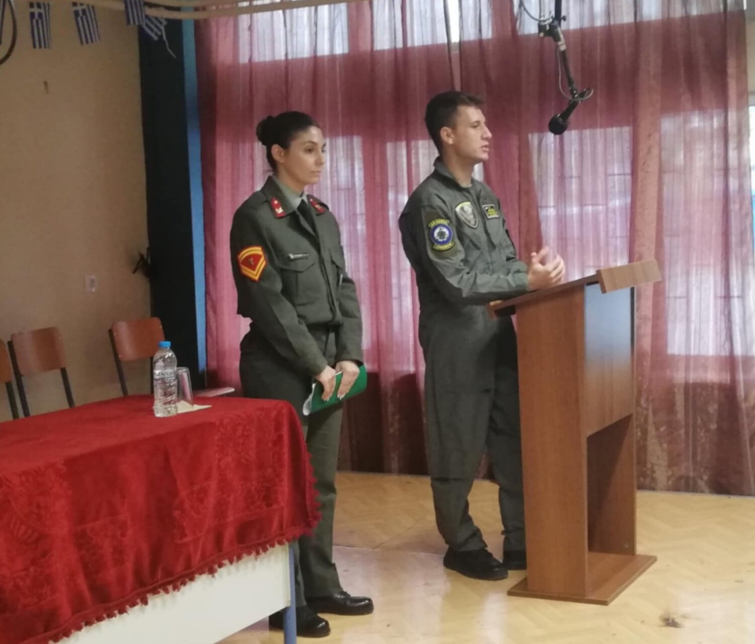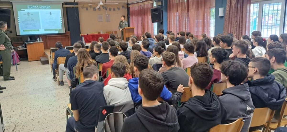 Τα δύο στελέχη της 1ης Στρατιάς – που συνοδεύονταν από ανώτερο Αξιωματικό του Σχηματισμού – παρουσίασαν τις δύο τριτοβάθμιας εκπαίδευσης παραγωγικές Σχολές του Στρατού Ξηράς (Σ.Ξ.) – την Ευελπίδων και τη Σ.Μ.Υ. – την διάρθρωσή τους και τις σύγχρονες, ελκυστικές ειδικότητες που προσφέρουν και τις οποίες μπορούν να επιλέξουν οι ενδιαφερόμενοι/-ες μαθητές/-τριες για μια επιτυχημένη σταδιοδρομία ανάλογα με τις κλίσεις και τα ενδιαφέροντά τους.