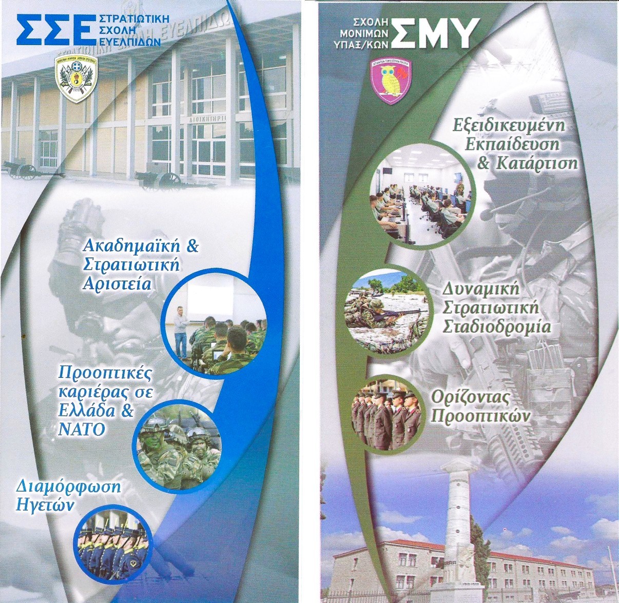 * Αναλυτικές πληροφορίες για τις Σχολές μπορούν να βρούν οι ενδιαφερόμενοι/-ες στις ιστοσελίδες της Στρατιωτικής Σχολής Ευελπίδων (https://sse.army.gr/), της Σ.Μ.Υ. (https://smy.army.gr/) και του Γενικού Επιτελείου Εθνικής Άμυνας / ΓΕΕΘΑ (https://geetha.mil.gr/eisagogi-spoydaston-se-asei-assy).