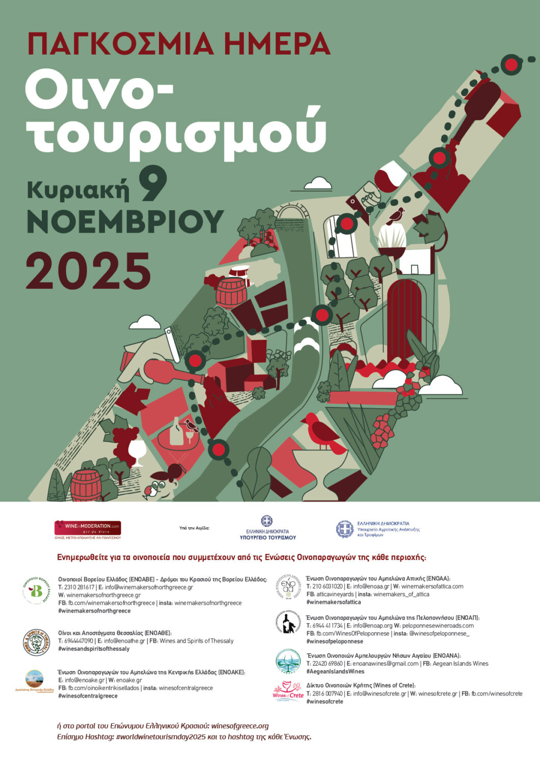 Προγραμματίστε από τώρα την εκδρομή σας για την Κυριακή 9 Νοεμβρίου από τις 11 το πρωί έως τις 5 το απόγευμα, έχετε τη δυνατότητα να επισκεφτείτε τα οινοποιεία των οινοτουριστικών δικτύων, σε όποιο μέρος της Ελλάδας και αν βρίσκεστε και την ευκαιρία να ξεναγηθείτε σε αμπέλια, οινοποιεία και κελάρια, να μιλήσετε με παραγωγούς και οινολόγους, να μάθετε για το κρασί και να το δοκιμάσετε.