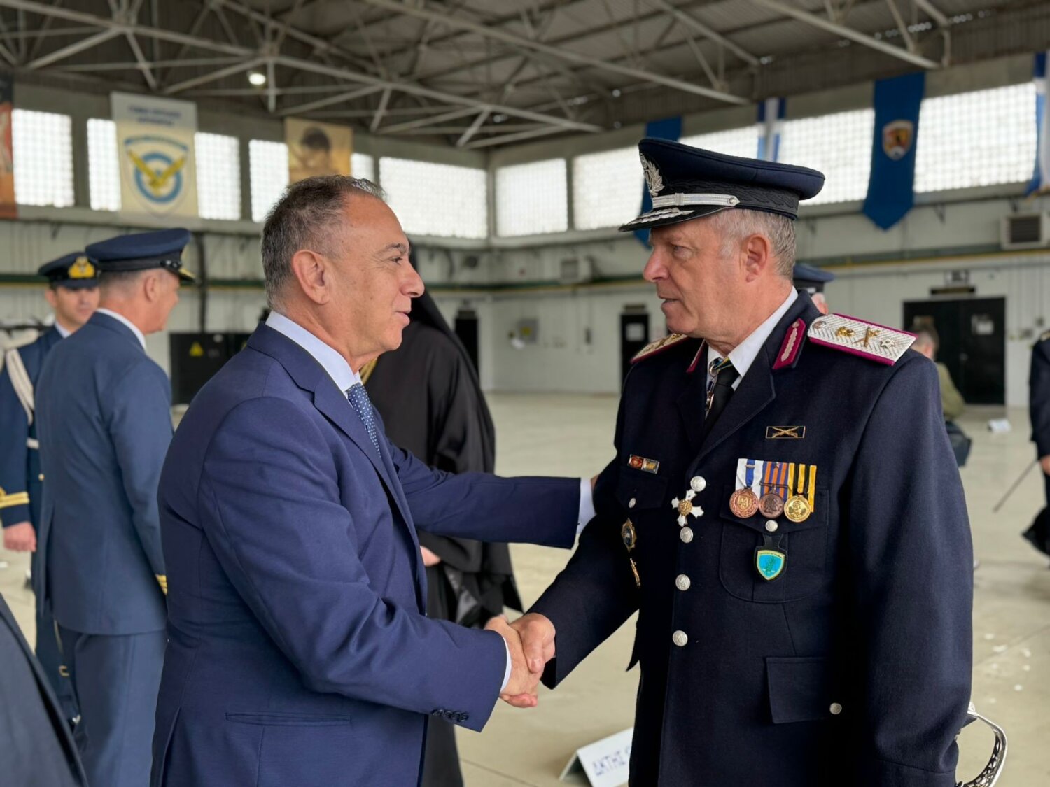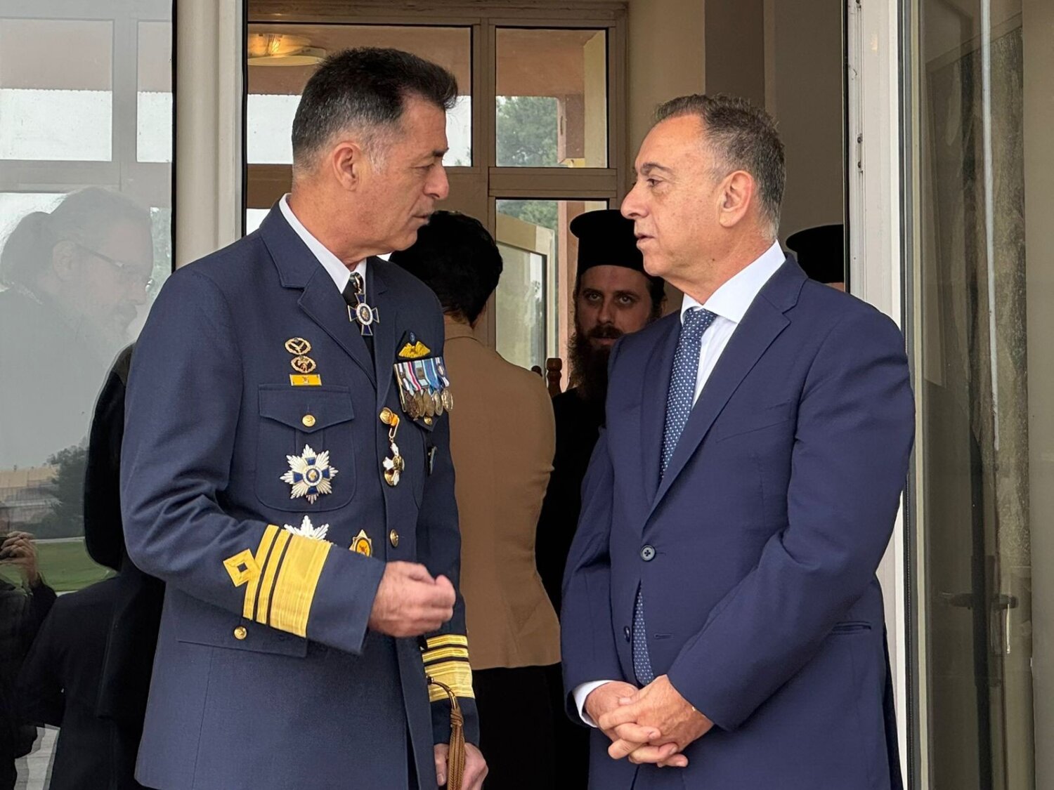 «Με ιδιαίτερη χαρά, βρισκόμαστε σήμερα εδώ, στην 110 Πτέρυγα Μάχης, μαζί με τα “ελληνικά φτερά”, για να τιμήσουμε τους Προστάτες του Σώματος, Αρχαγγέλους Μιχαήλ και Γαβριήλ και να αποτίσουμε φόρο τιμής στους ήρωες πιλότους μας. Συγχρόνως, ευγνωμονούμε όλους τους άνδρες και τις γυναίκες της Πολεμικής Αεροπορίας, που με αυταπάρνηση και υψηλό αίσθημα καθήκοντος διαφυλάσσουν την εδαφική ακεραιότητα και την εθνική μας κυριαρχία».