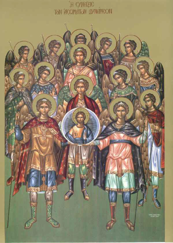 ΔΙΑΤΑΞΗ: Ο αριθμός των αγγελικών όντων είναι απροσμέτρητος. Ο Κύριος ομιλεί στη Γεσθημανή για περισσότερες από δώδεκα λεγεώνες αγγέλων, ενώ ο Ευαγγελιστής Ιωάννης είδε γύρω από το θρόνο του Θεού χορωδία από μυριάδες μυριάδων αγγέλων. Οι αναρίθμητοι άγγελοι είναι οργανωμένοι σε τάγματα [τάξεις]. Κατά αναφορές των Προφητών Ησαϊα και Ιεζεκιήλ, του αποστόλου Παύλου, του αγίου Διονυσίου Αρεοπαγίτη και του Οσίου Νικήτα Στηθάτου, τα αγγελικά τάγματα είναι εννέα ταξινομούμενα σε τρεις ιεραρχίες: Σεραφείμ, Χερουβείμ, Θρόνοι- Κυριότητες, Δυνάμεις, Εξουσίες- Αρχές, Αρχάγγελοι, Άγγελοι. Όμως, η Αγία Γραφή μας φανερώνει και τα προσωπικά ονόματα ορισμένων αγγέλων. Γνωρίζουμε τον Γαβριήλ [=ήρωας του Θεού], από την εμφάνισή του στους προφήτες Δανιήλ και Ζαχαρία και στη Θεοτόκο, τον Μιχαήλ, [=τις ως ο Θεός ημών], που εμφανίζεται στη Παλαιά Διαθήκη, τον Ραφαήλ [= ο Κύριος θεραπεύει], που εμφανίζεται στον Τωβίτ μεταφέροντας ανθρώπινες προσευχές στο θρόνο του Θεού. Τέλος γνωστός από την εβραϊκή παράδοση είναι ο Ουριήλ.